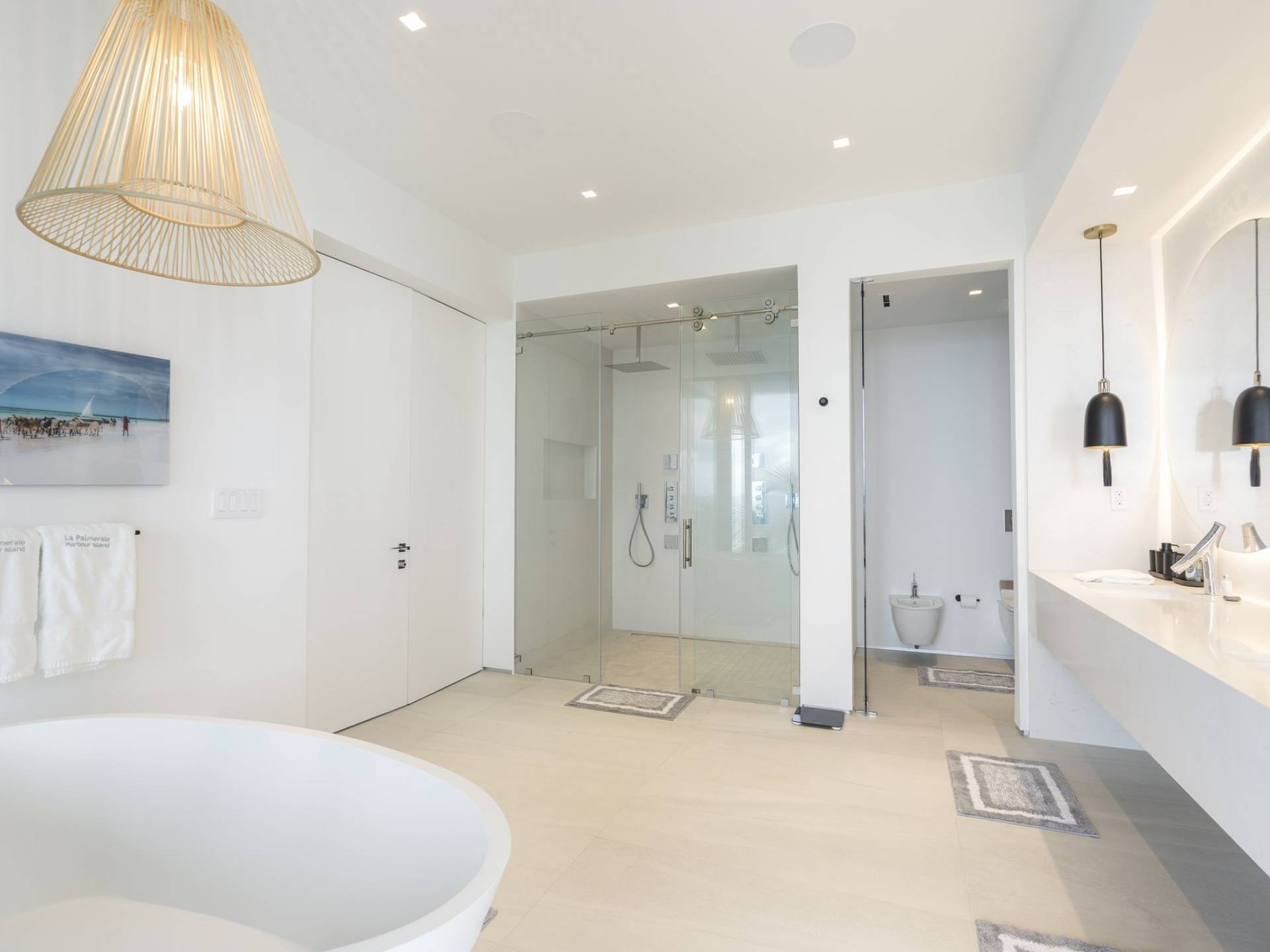 Diese Residenz wurde mit eleganter, moderner Architektur und zeitgenössischem, minimalistischem Dekor gestaltet und strahlt Raffinesse und Eleganz aus. Es erstreckt sich über drei Ebenen und verfügt über neun luxuriöse Suiten, die ausreichend Platz für einen unvergesslichen, gehobenen Rückzugsort bieten.