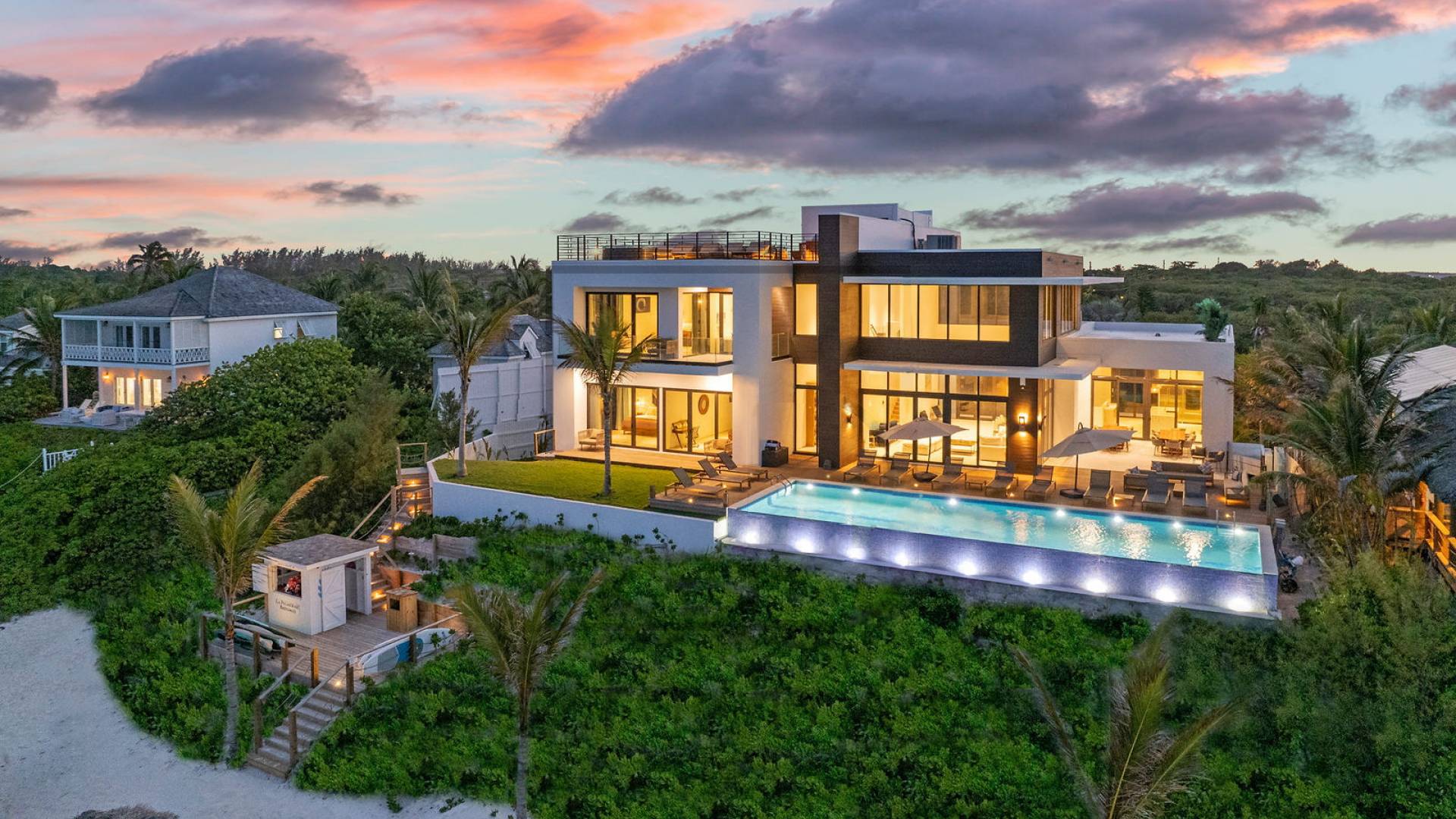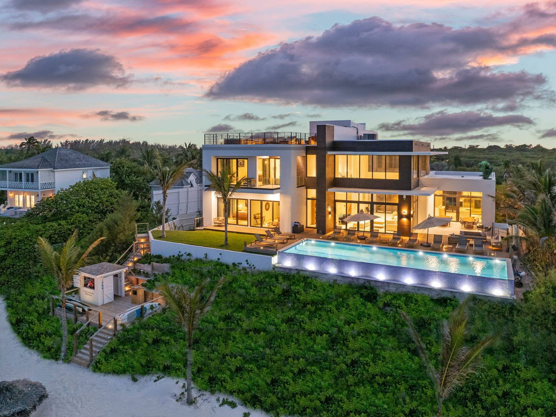 Erleben Sie den Inbegriff von Luxus im La Palmeraie Modern House, einem atemberaubenden architektonischen Meisterwerk hoch oben auf den Dünen von Harbour Island. Dieses erstklassige Feriendomizil bietet einen atemberaubenden Panoramablick auf das unberührte Meer und ist damit ein herausragendes Objekt unter den Ferienhäusern auf Harbour Island auf den Bahamas.