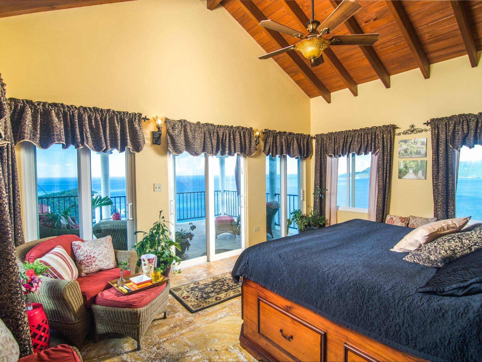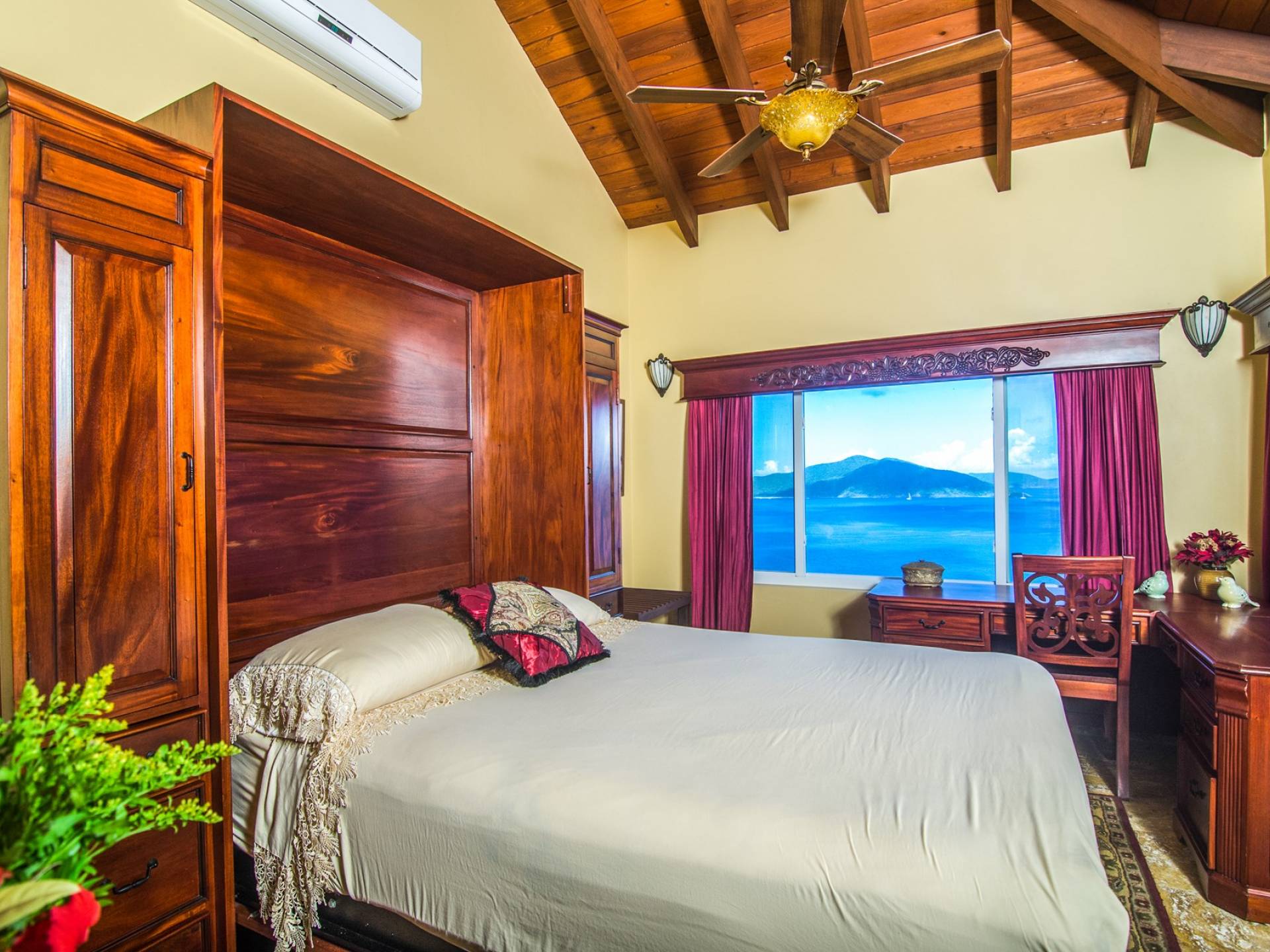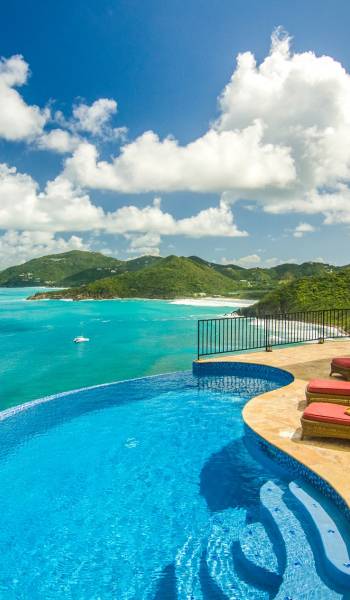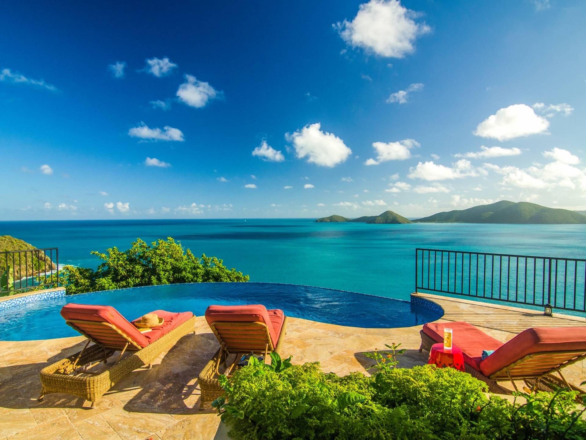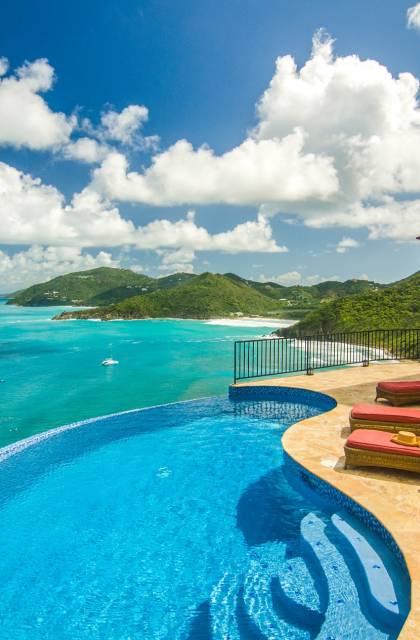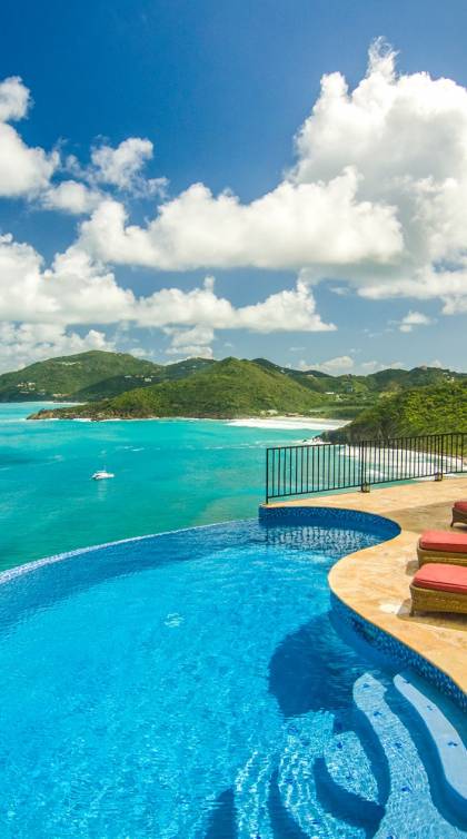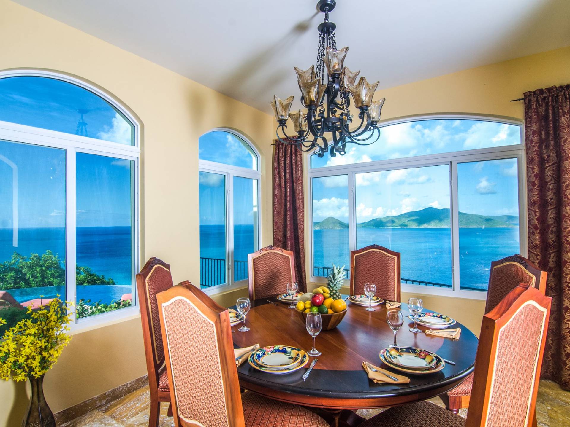 Die fabelhafte Aussicht auf die Insel hinunter umfasst die 850 Hektar große unberührte Insel Guana, Great Camanoe, The Dogs und Virgin Gorda. In einer klaren Nacht können Sie sogar die Lichter von Anegada sehen. Der zuckerweiße Sand von Josiah's Bay liegt rechts und Rogues Point links.