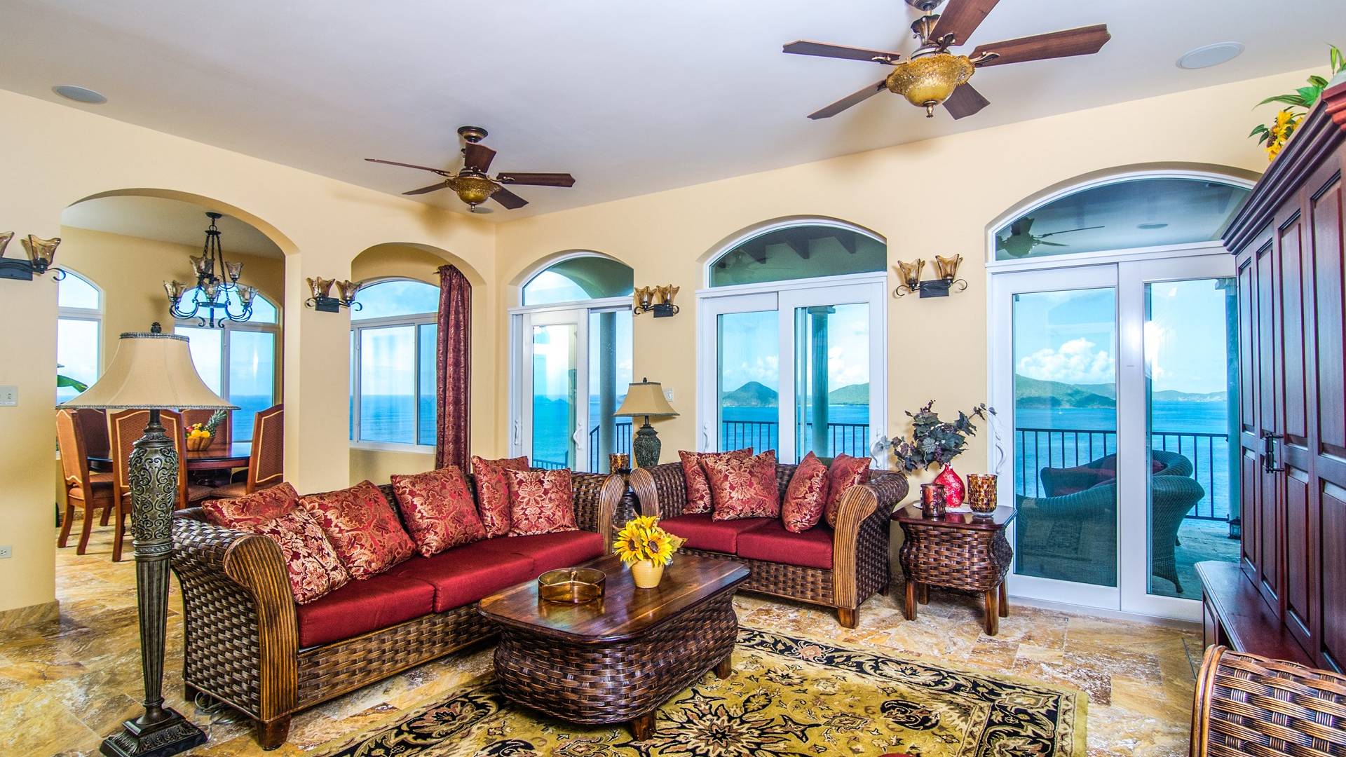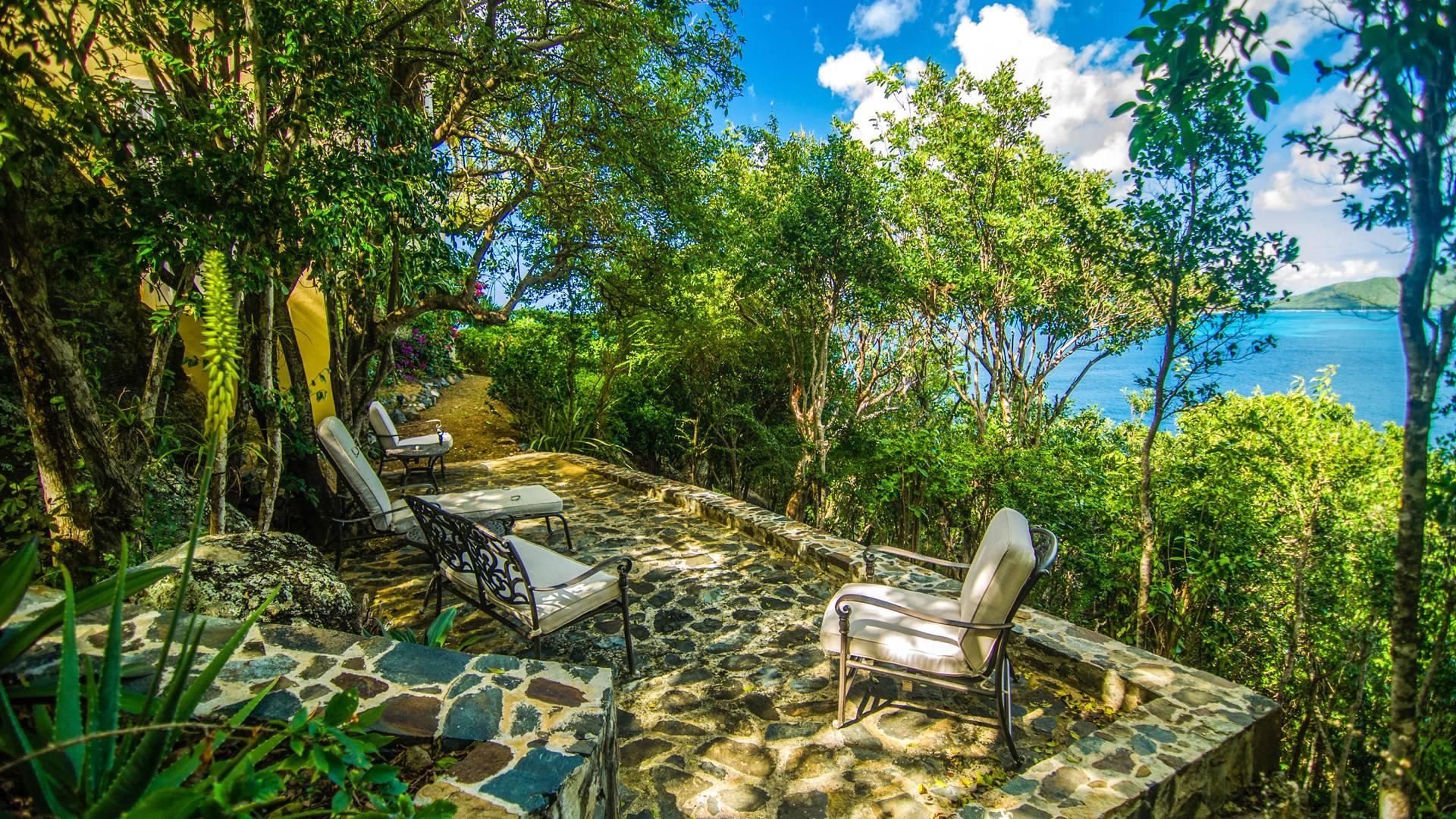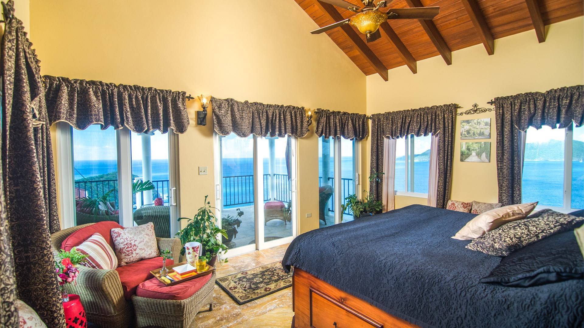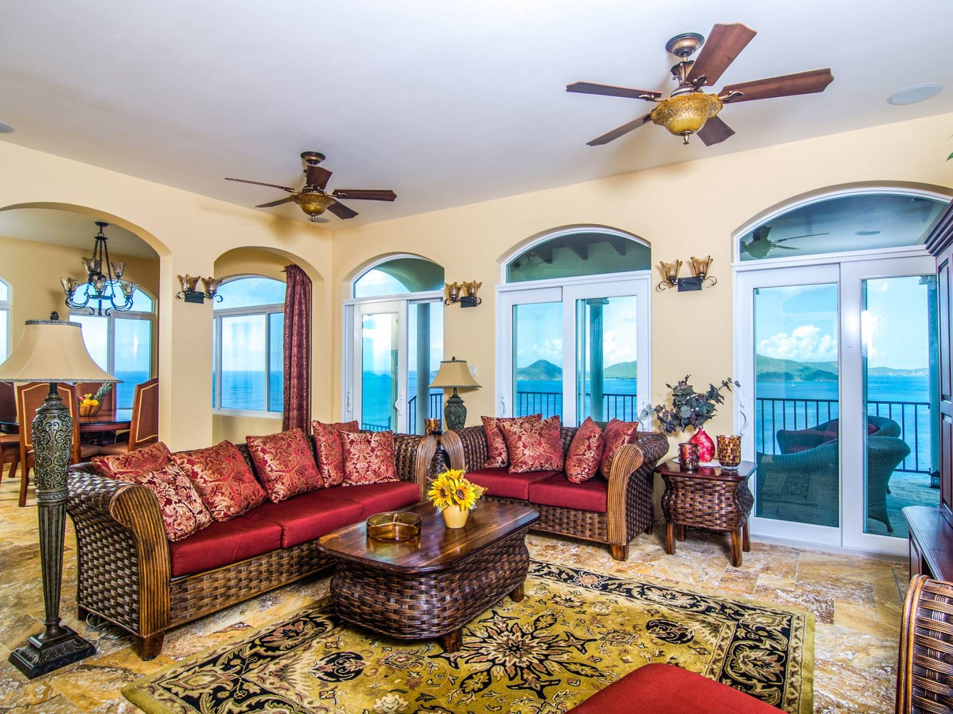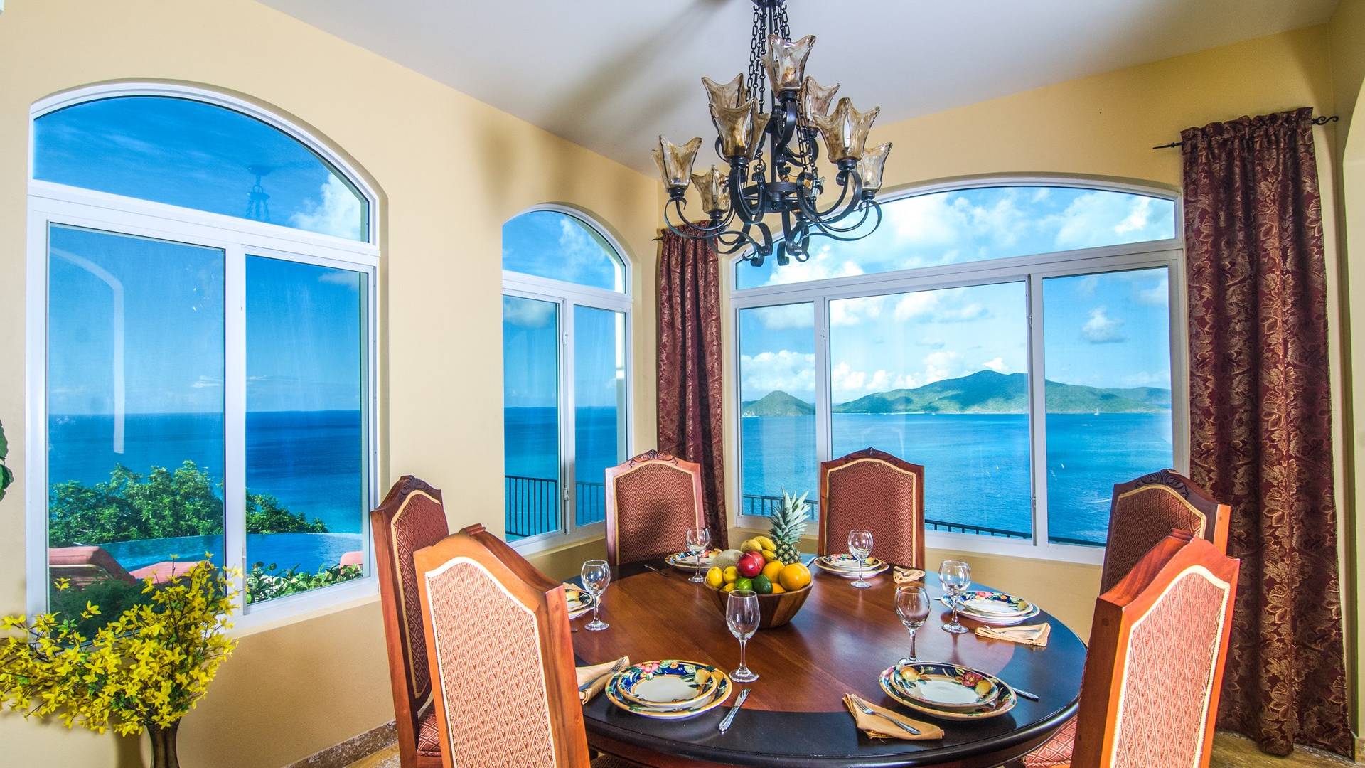 Die fabelhafte Aussicht auf die Insel hinunter umfasst die 850 Hektar große unberührte Insel Guana, Great Camanoe, The Dogs und Virgin Gorda. In einer klaren Nacht können Sie sogar die Lichter von Anegada sehen. Der zuckerweiße Sand von Josiah's Bay liegt rechts und Rogues Point links.