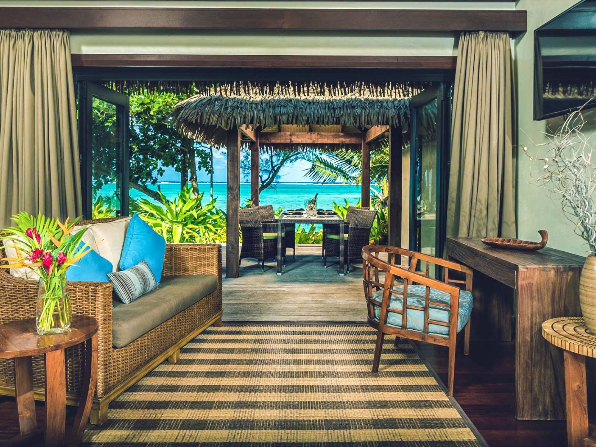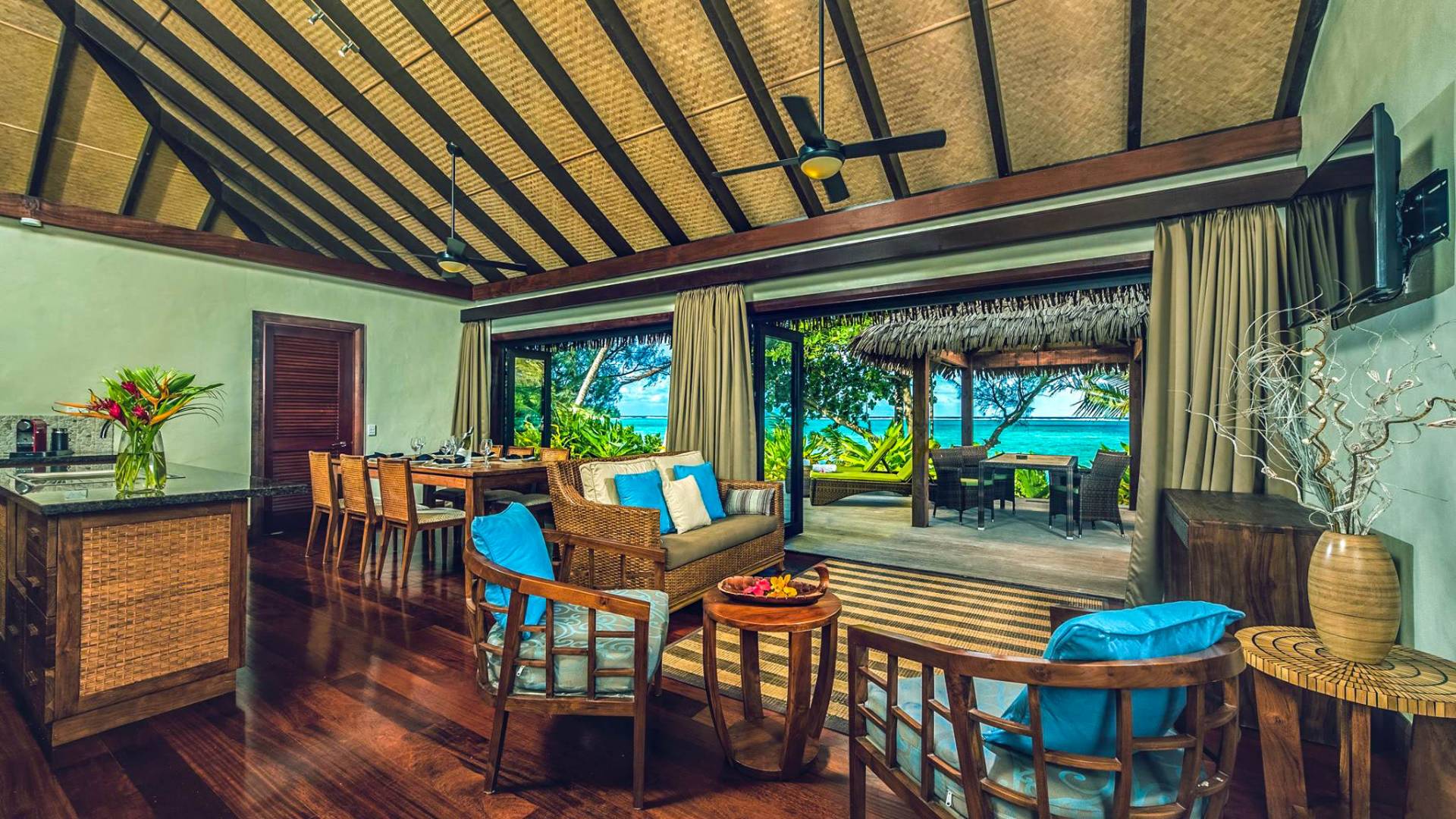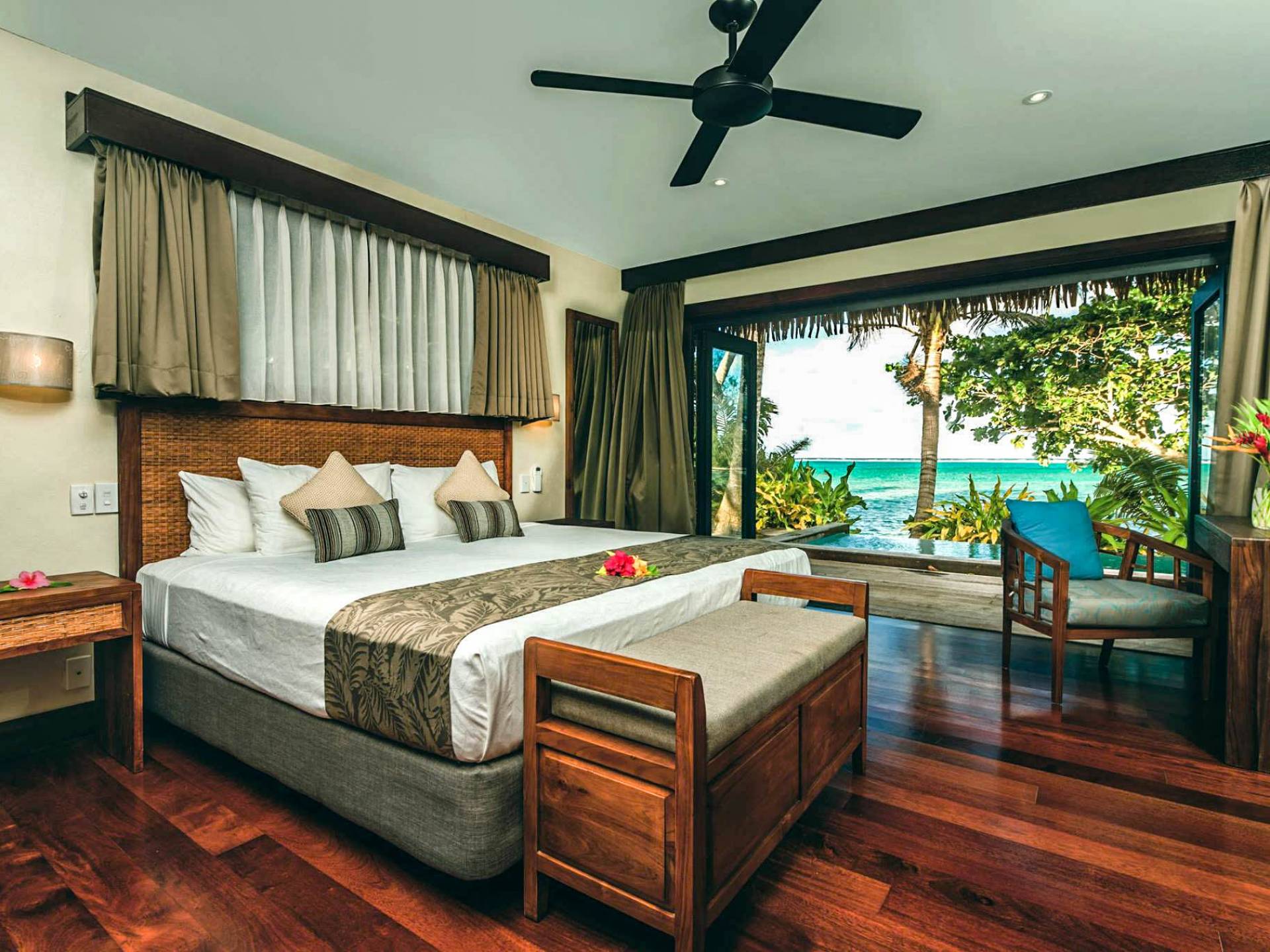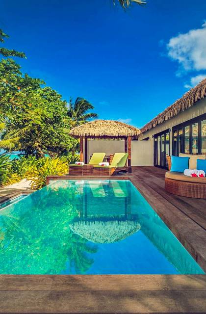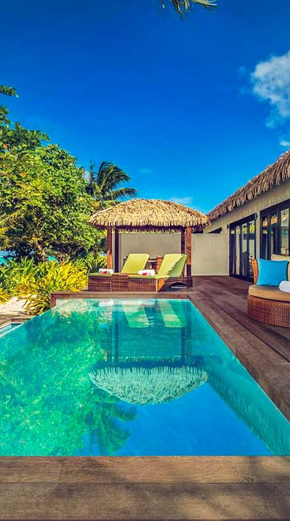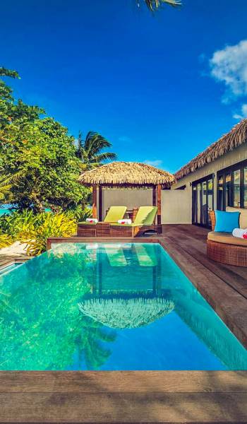 In diesen sorgfältig gestalteten Villen wird Privatsphäre großgeschrieben. Das geräumige Innere der Villen wurde entworfen und dekoriert, um die Lage der tropischen Insel und das Klima widerzuspiegeln und umfasst wichtige polynesische Designmerkmale wie einen nahtlosen Übergang von drinnen nach draußen und hohe Decken, um Ihren ultimativen Komfort unter tropischen Bedingungen zu gewährleisten.
