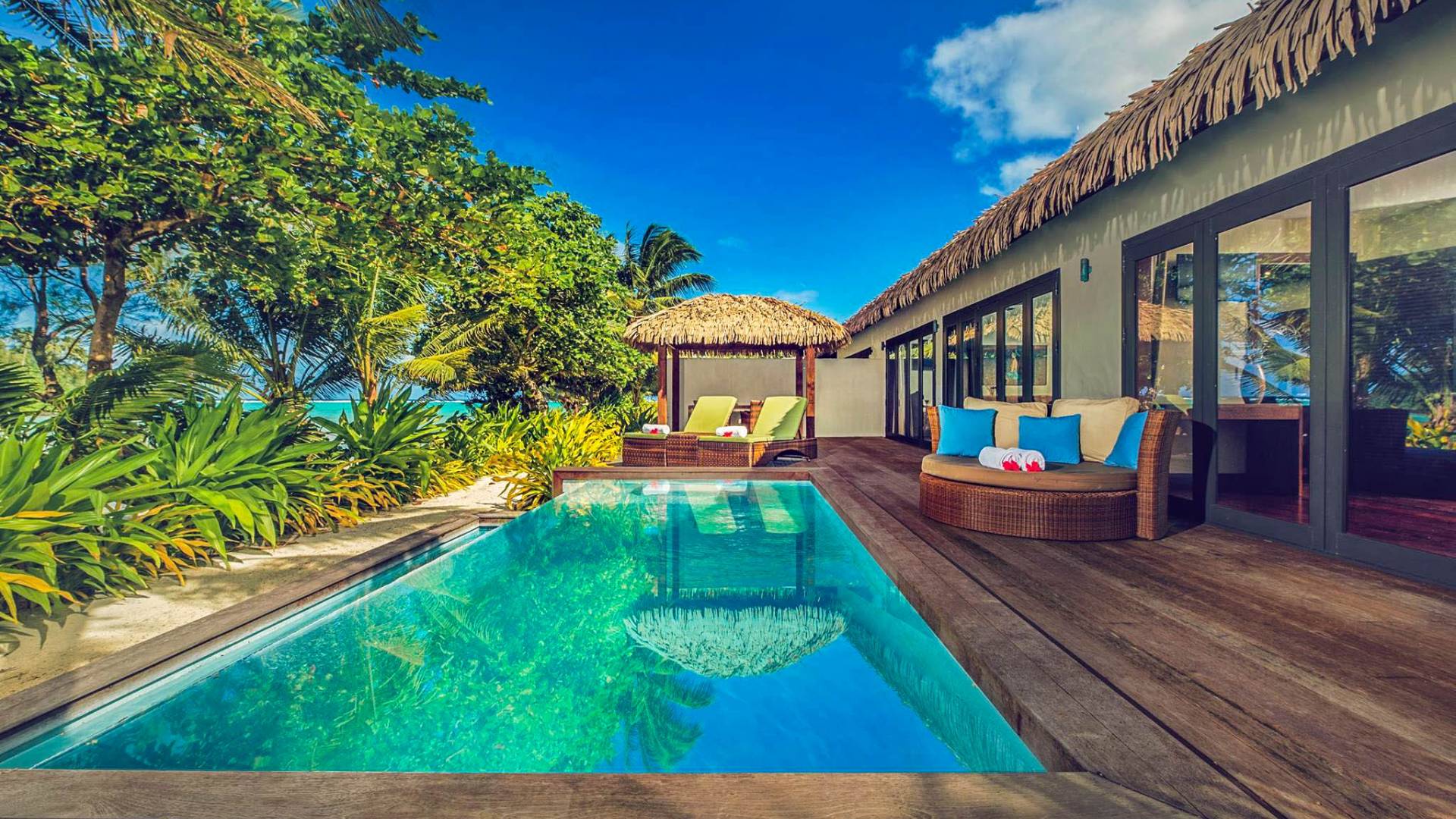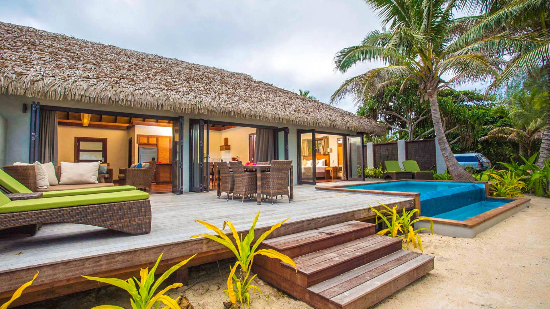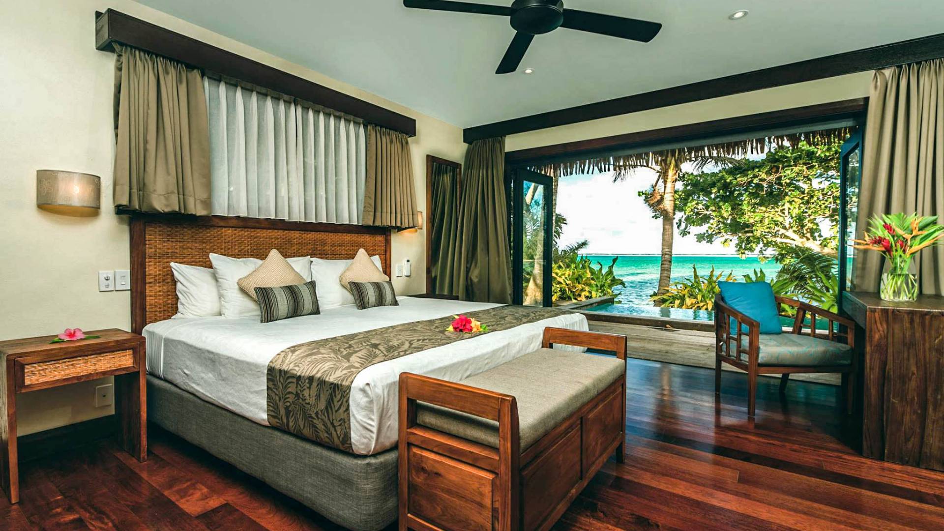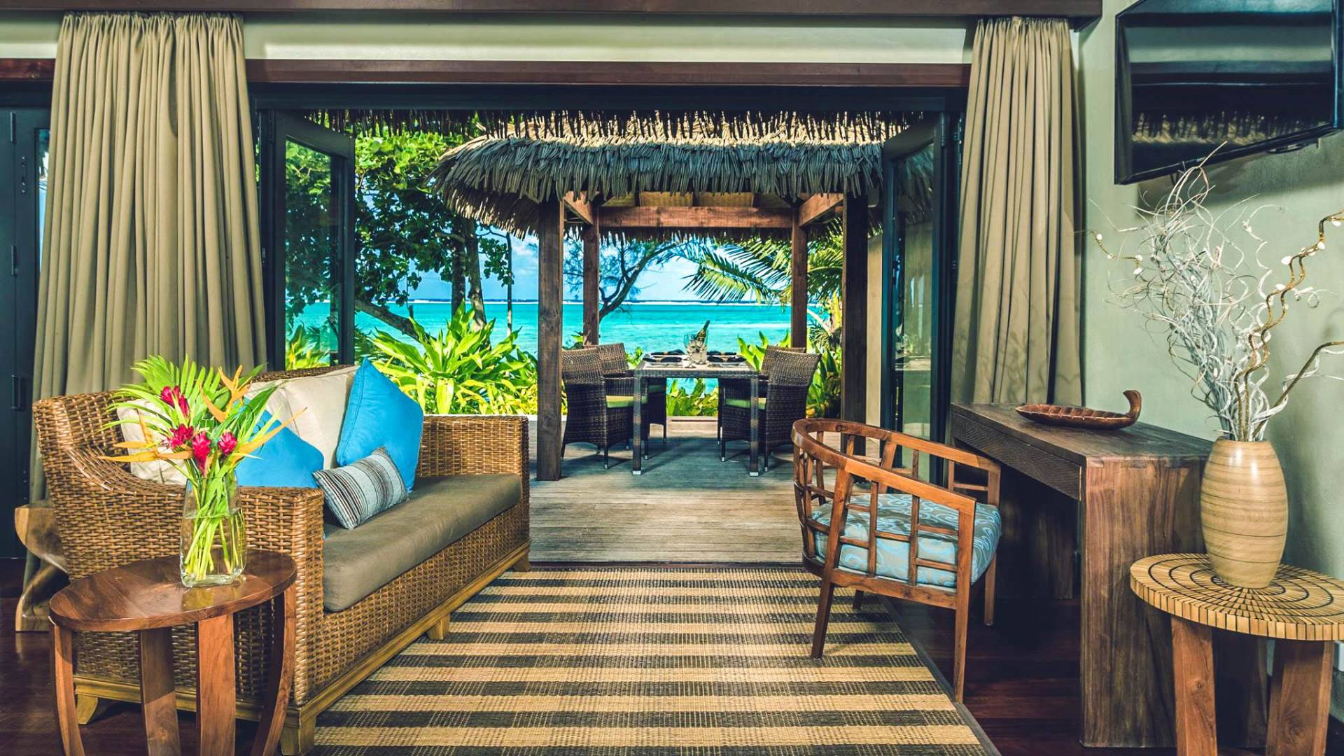 In diesen sorgfältig gestalteten Villen wird Privatsphäre großgeschrieben. Das geräumige Innere der Villen wurde entworfen und dekoriert, um die Lage der tropischen Insel und das Klima widerzuspiegeln und umfasst wichtige polynesische Designmerkmale wie einen nahtlosen Übergang von drinnen nach draußen und hohe Decken, um Ihren ultimativen Komfort unter tropischen Bedingungen zu gewährleisten.