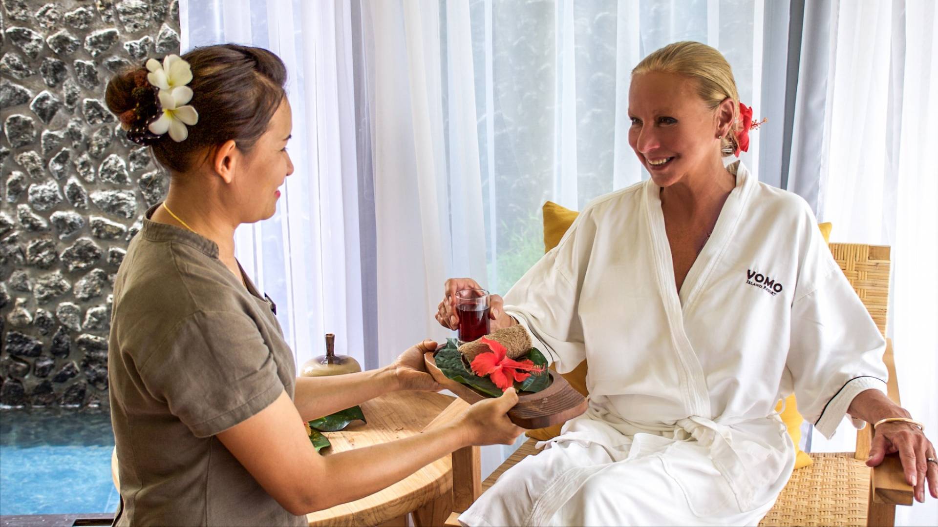 Die exquisite Insel Vomo ist 22 Hektar groß und einen 15-minütigen Hubschrauberflug vom internationalen Flughafen Nadi auf Fidschi entfernt. Weiche, weiße Sandstrände umgeben die Insel, die von gepflegten Feldern und üppiger, natürlicher Vegetation umgeben ist.