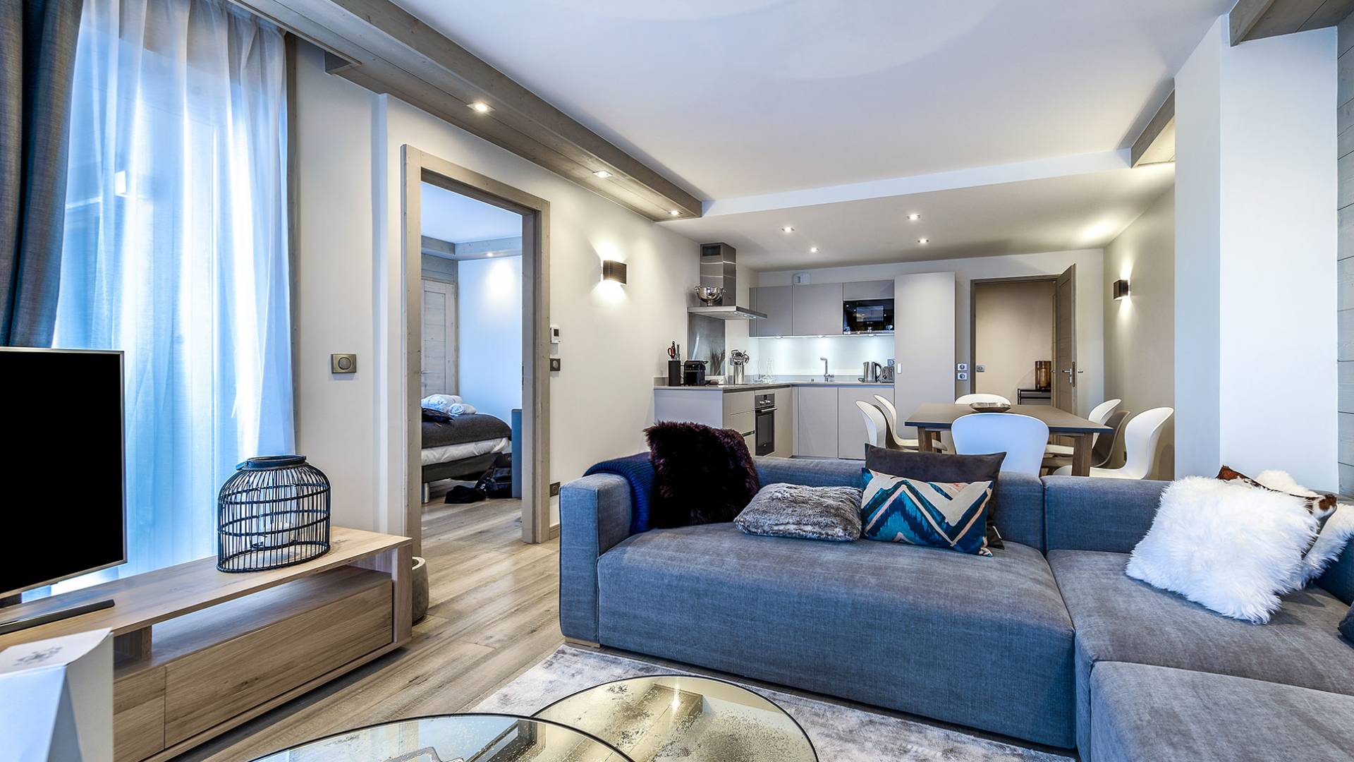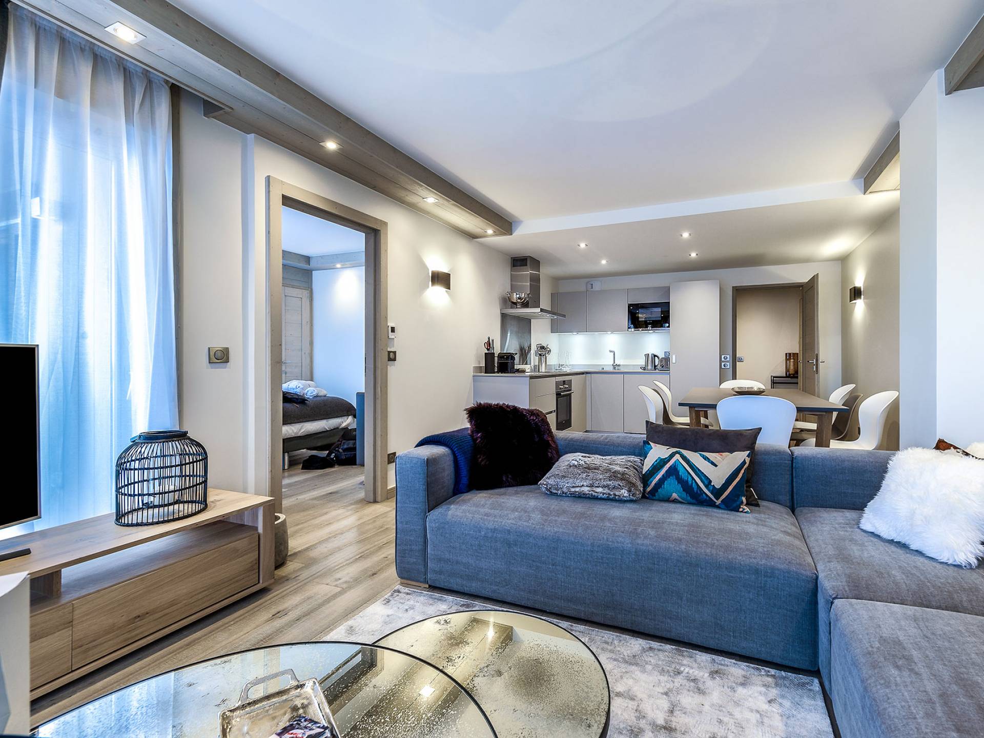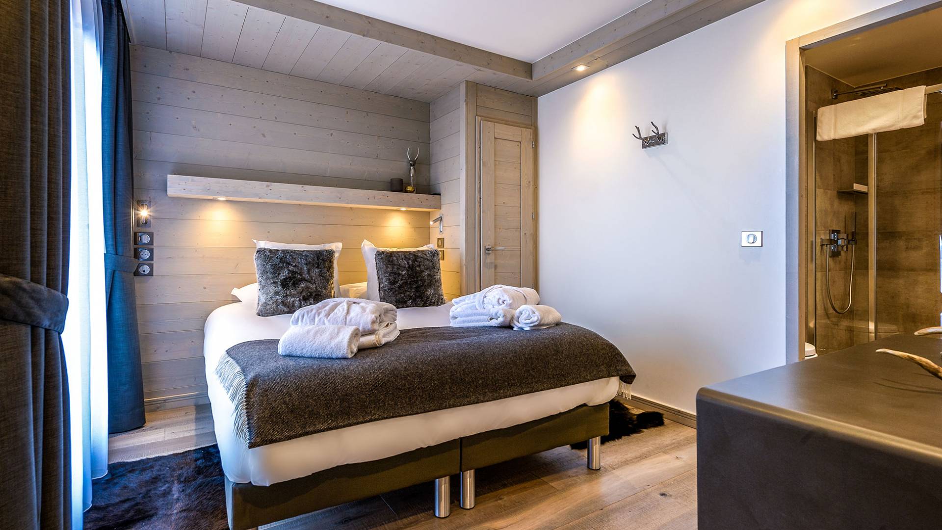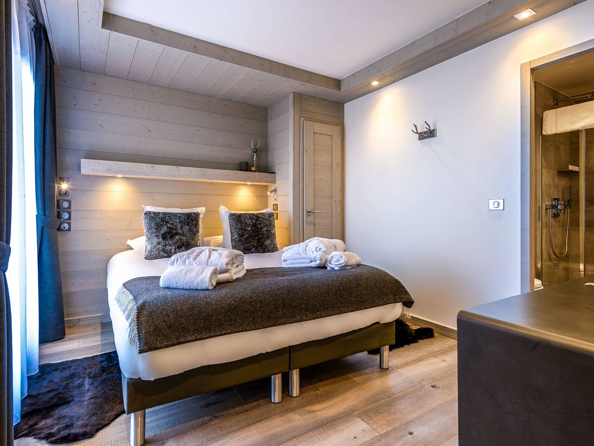 Von der Architektur bis zum Innendesign schaffen die Apartments im Bergstil einen Kokon, in dem die Atmosphäre warm und elegant ist. Genießen Sie mit Freunden oder der Familie eine luxuriöse Unterkunft in idealer Lage in Courchevel Moriond, in der Nähe von Geschäften und allen Annehmlichkeiten. Gehen Sie von der Residenz aus im Gebiet der 3 Vallées Ski fahren oder genießen Sie Aquamotion, den größten europäischen Wasserpark mit Wasserrutschen, Lagunen, einem Spa und einem Fitnessstudio...