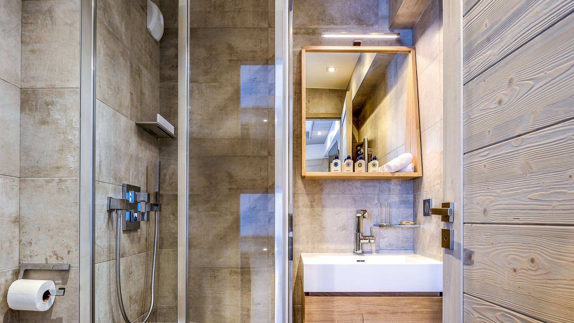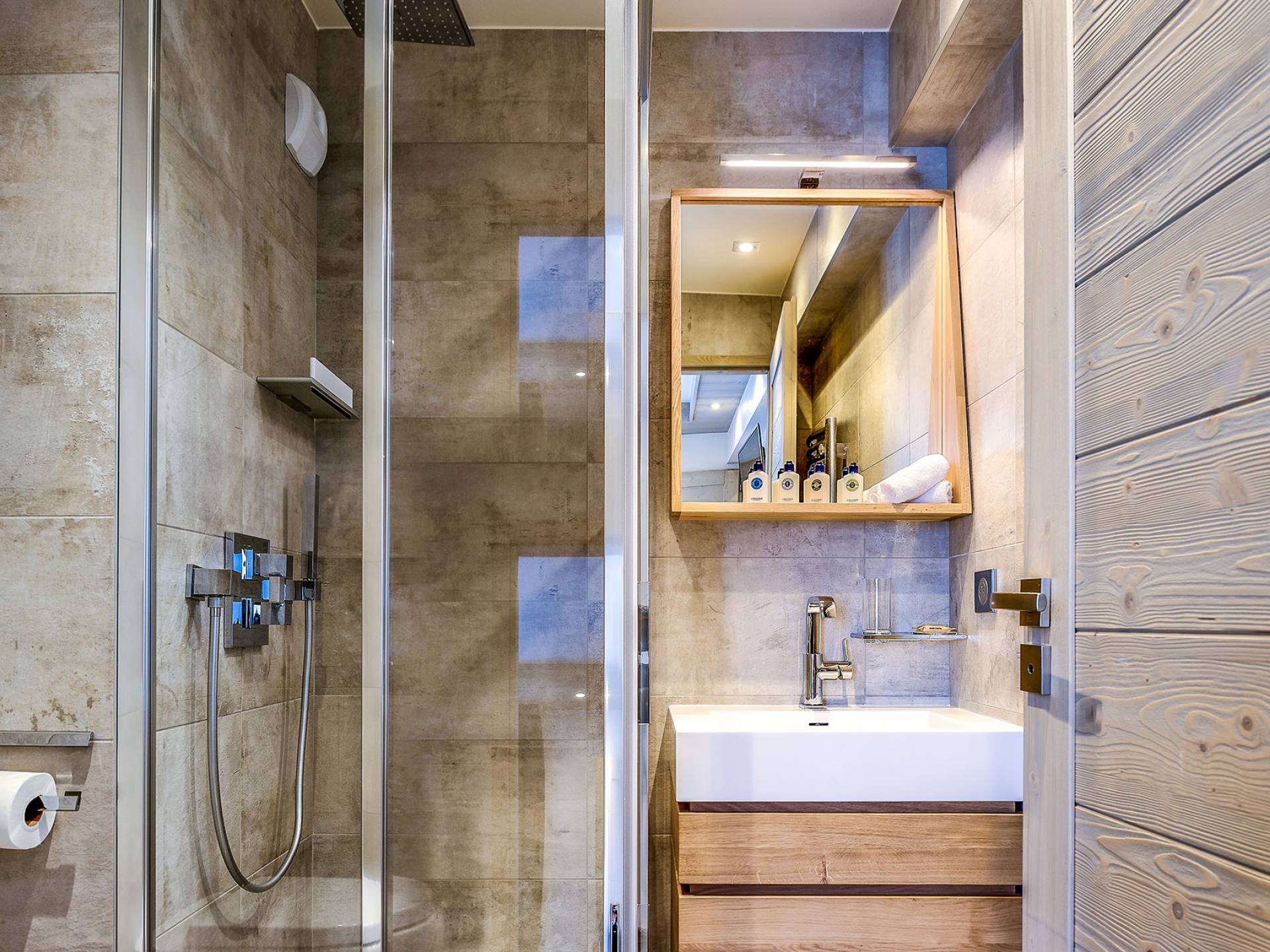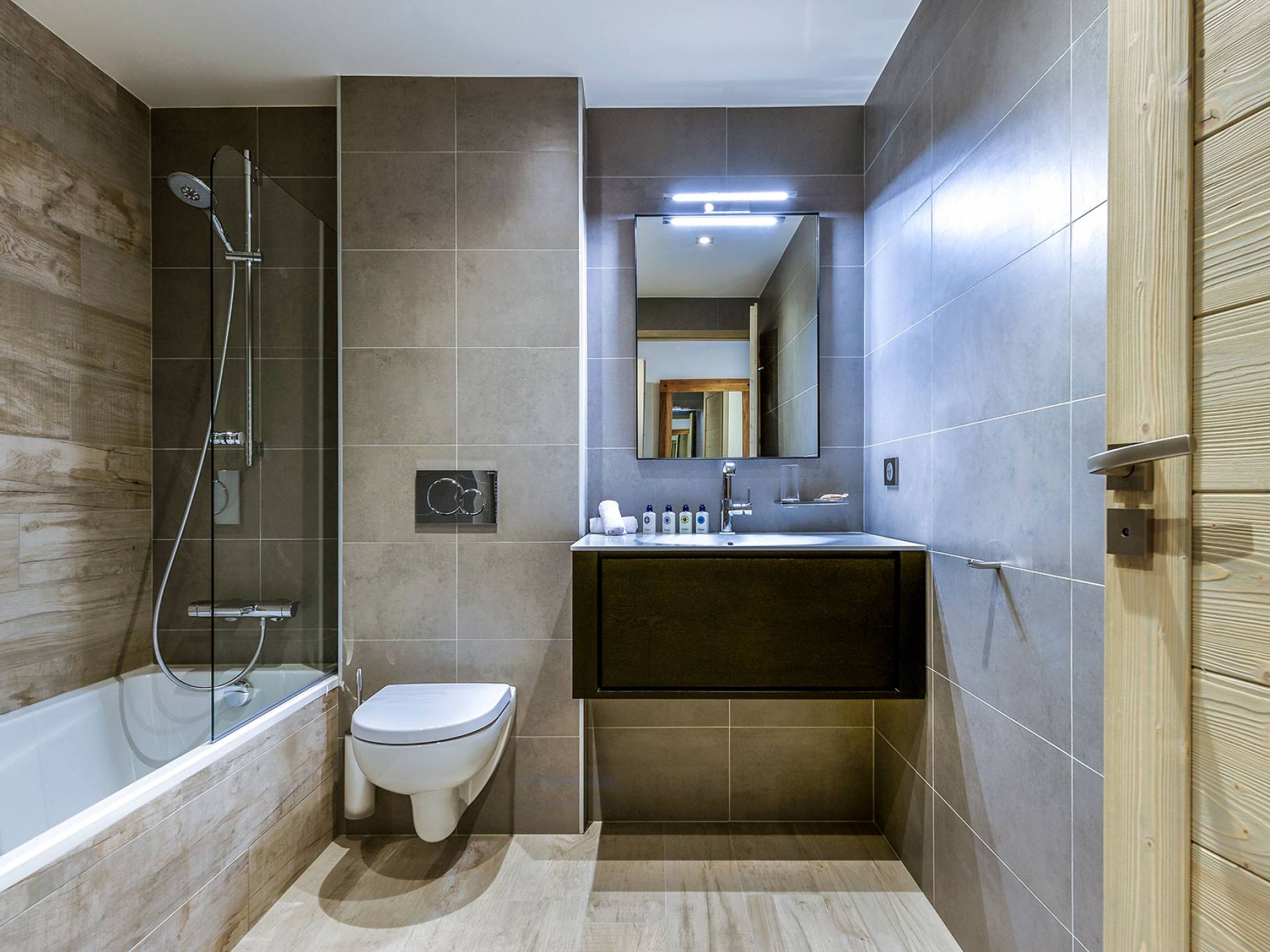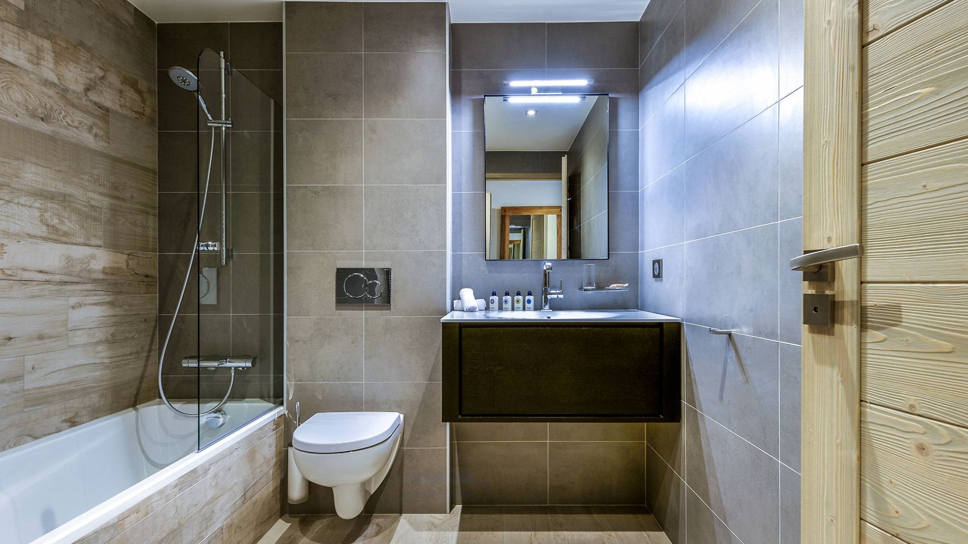 Von der Architektur bis zum Innendesign schaffen die Apartments im Bergstil einen Kokon, in dem die Atmosphäre warm und elegant ist. Genießen Sie mit Freunden oder der Familie eine luxuriöse Unterkunft in idealer Lage in Courchevel Moriond, in der Nähe von Geschäften und allen Annehmlichkeiten. Gehen Sie von der Residenz aus im Gebiet der 3 Vallées Ski fahren oder genießen Sie Aquamotion, den größten europäischen Wasserpark mit Wasserrutschen, Lagunen, einem Spa und einem Fitnessstudio...