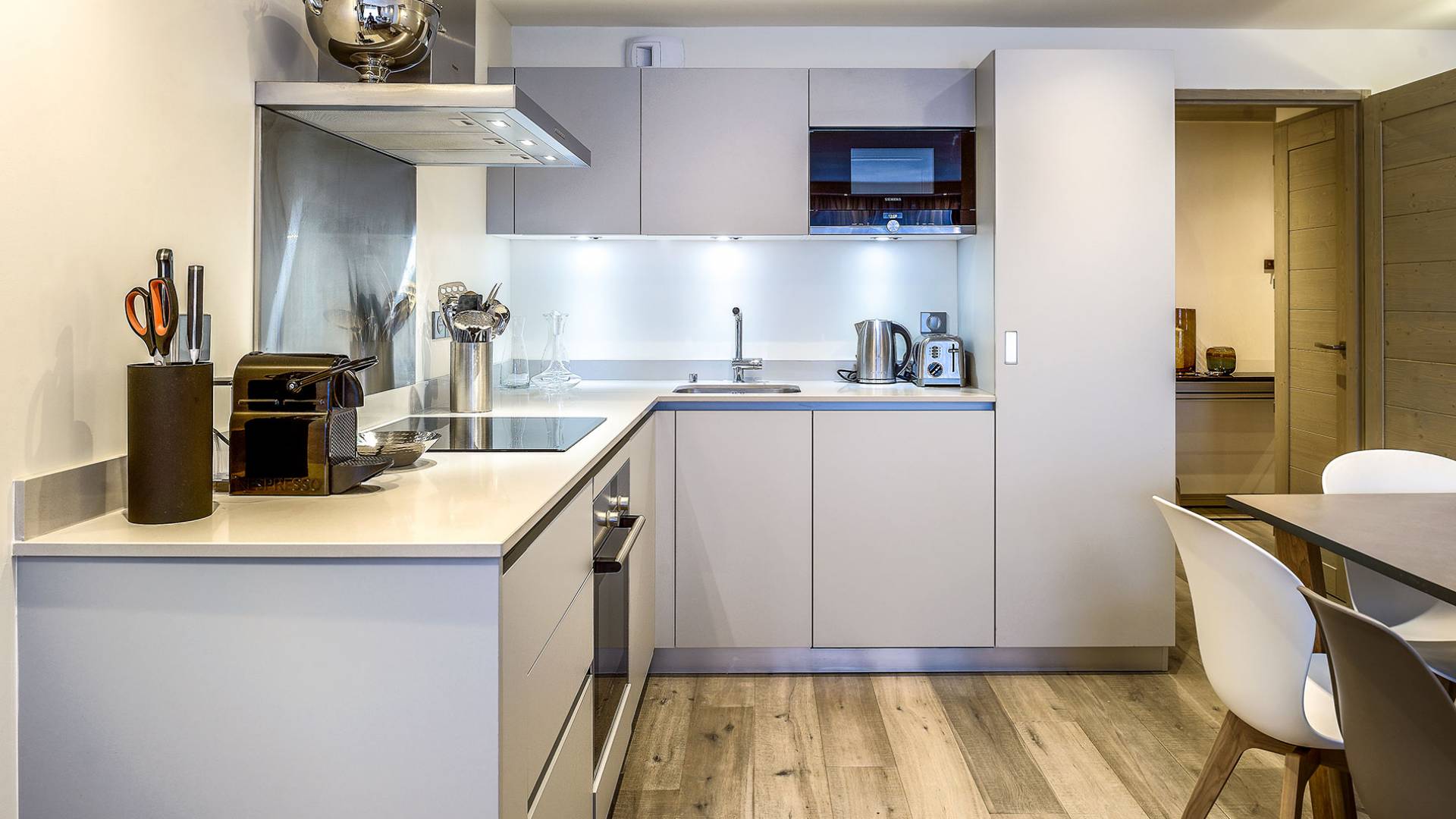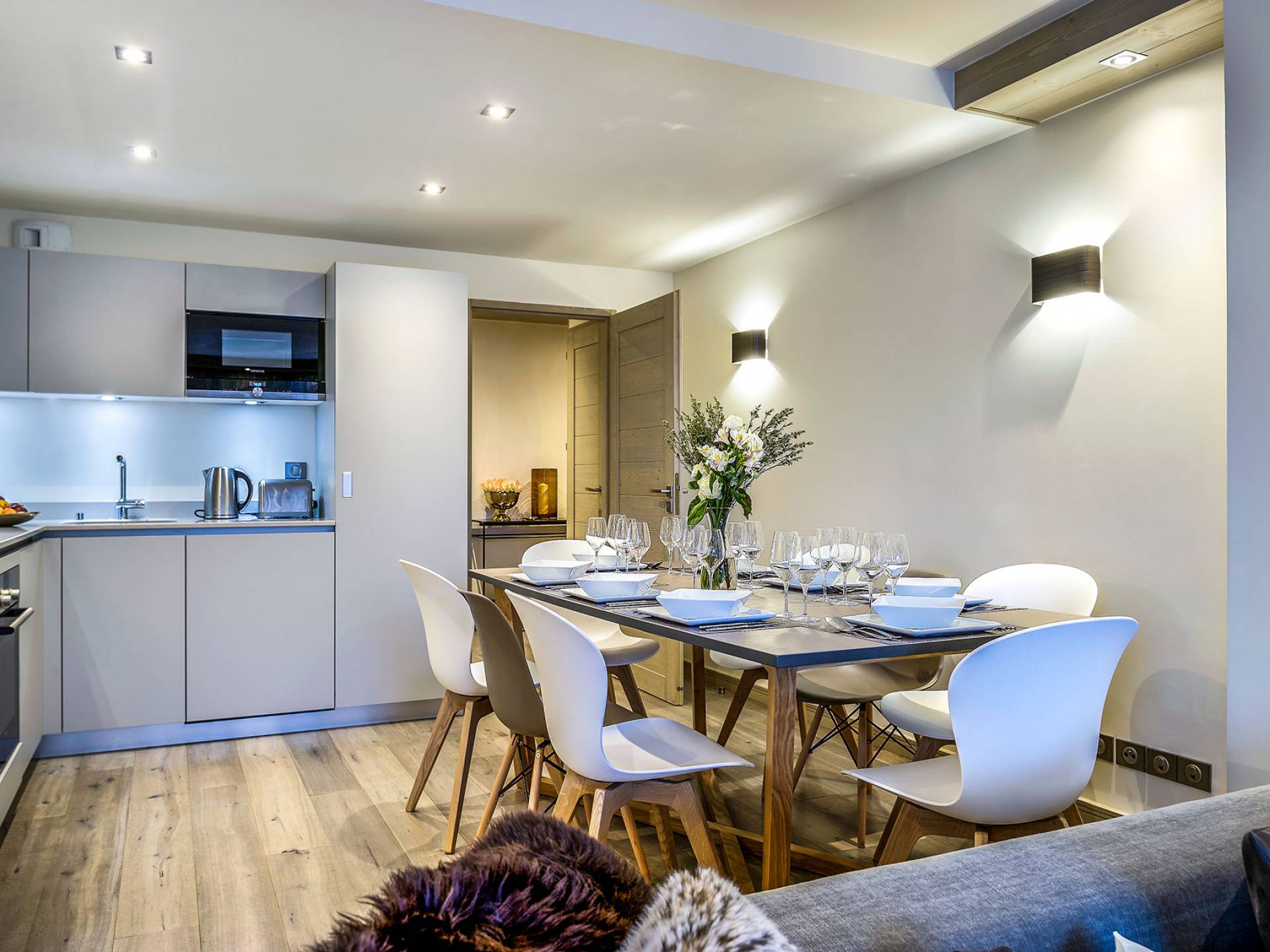 Sie können die Köstlichkeiten des bistronomischen Restaurants in der Residenz selbst genießen oder einfach einen Aperitif mit Freunden genießen. Ein komplettes kontinentales oder englisches Frühstück wird im Restaurant serviert, oder Sie können sich Ihr Frühstück oder Abendessen in Ihr Apartment liefern lassen, wenn Sie dies bevorzugen. Der private Skiraum steht Ihnen im Erdgeschoss der Residenz zur Verfügung und ermöglicht es Ihnen, sich vor Ort auszurüsten und als Erster auf die Piste zu gehen.