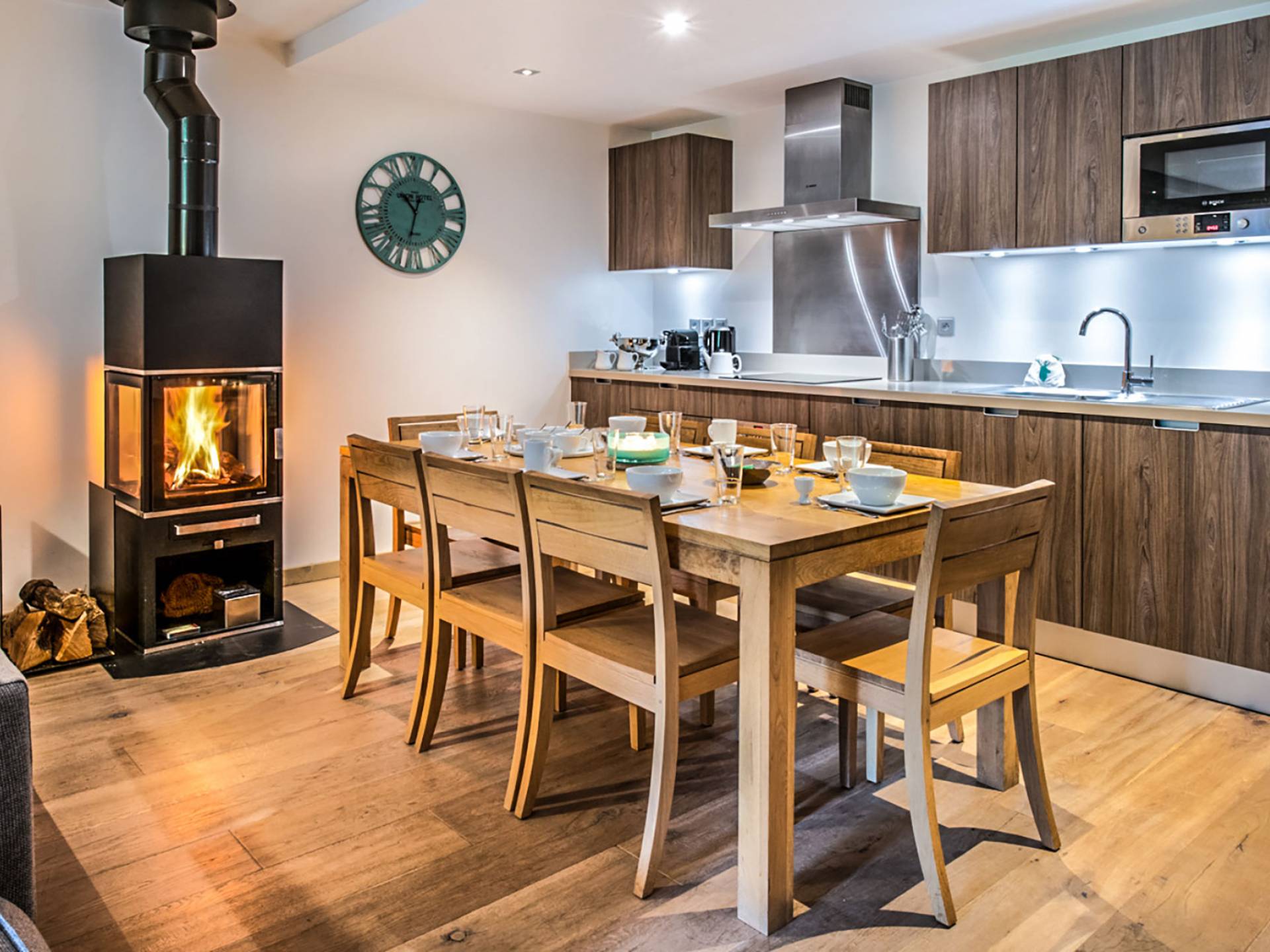 Diese Wohnung verfügt über drei Schlafzimmer mit Doppelbett, eine Schlafkabine mit Etagenbett, ideal für Kinder, sowie zwei Badezimmer. Das Wohnzimmer mit TV und Holzofen hat auch eine voll ausgestattete Küche und eine große Südterrasse mit Blick auf die Berge. Während Ihres Urlaubs profitieren Sie von einem Parkplatz auf dem Privatparkplatz, einem Skiraum und WLAN-Zugang.