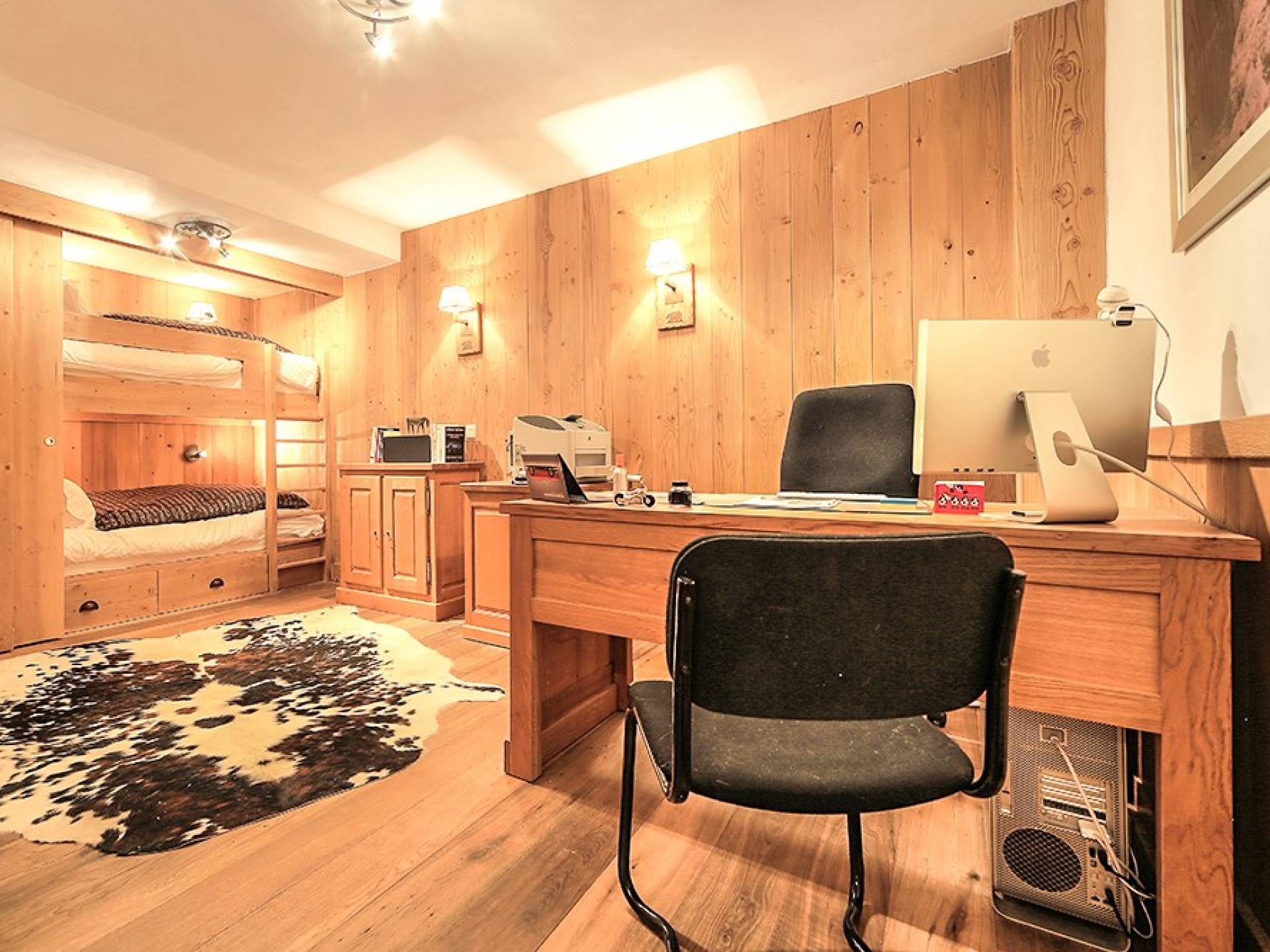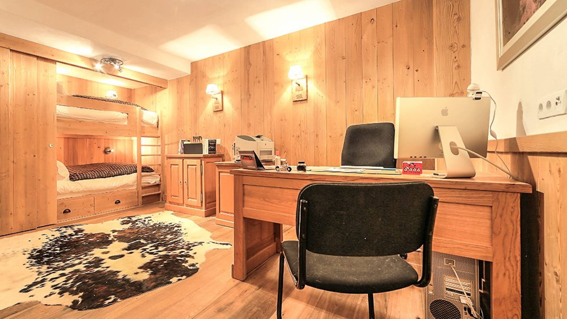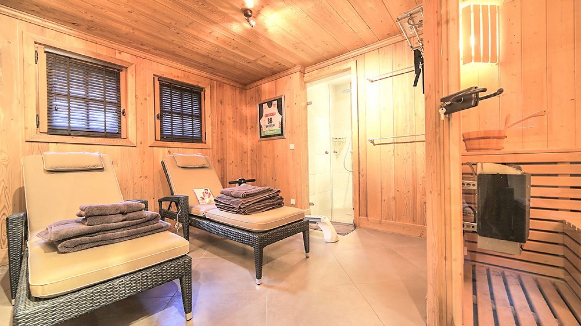 Chalet Nidaya Chamonix verfügt über 6 Schlafzimmer auf 3 Ebenen und bietet bequem Platz für 10 + 2 Personen. Im Erdgeschoss verfügt es über einen großen Eingang, einen Ruhebereich mit Sauna, Büro (optional 6. Schlafzimmer), Skiraum, Hauswirtschaftsraum und Garagenzugang.