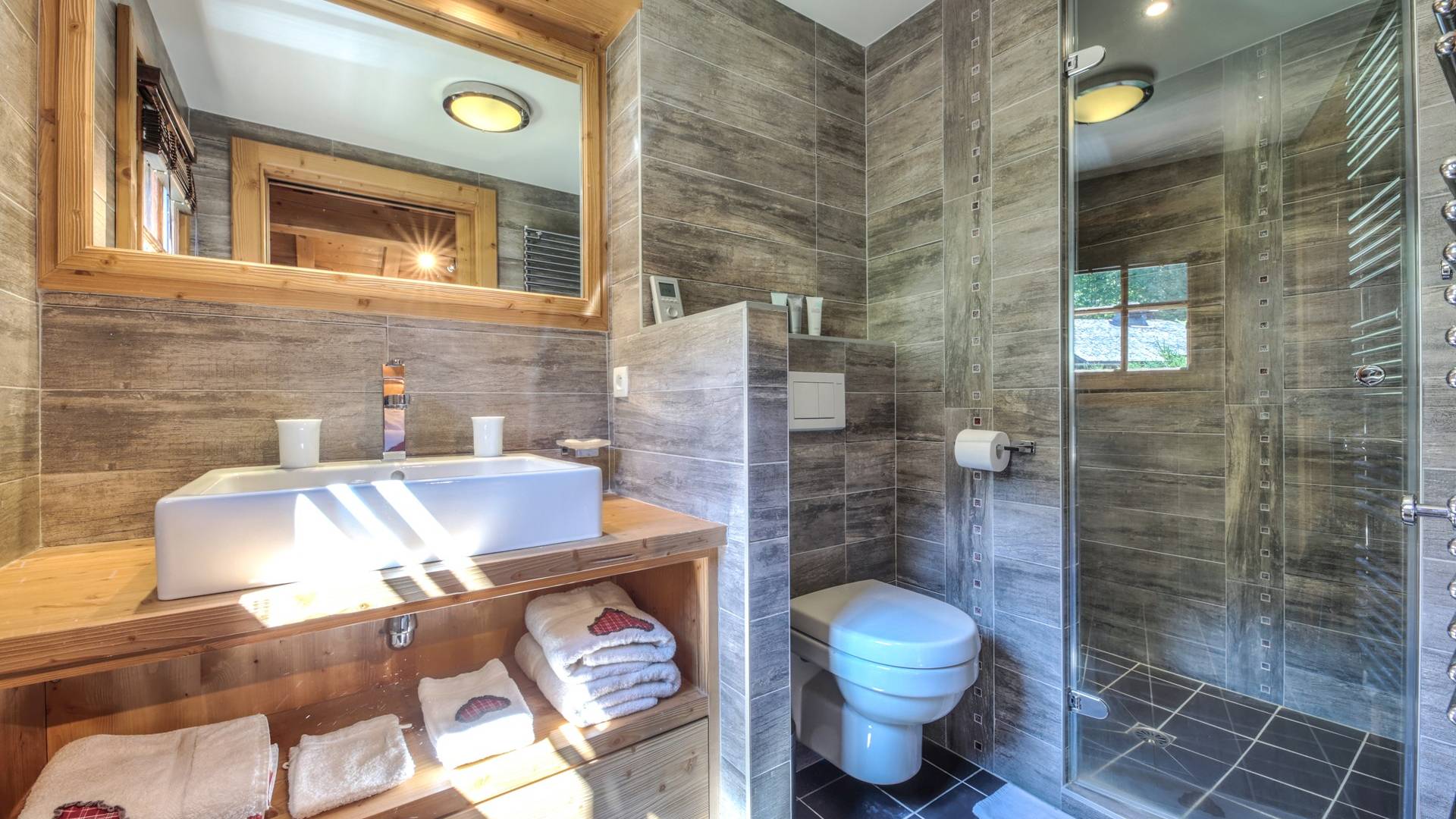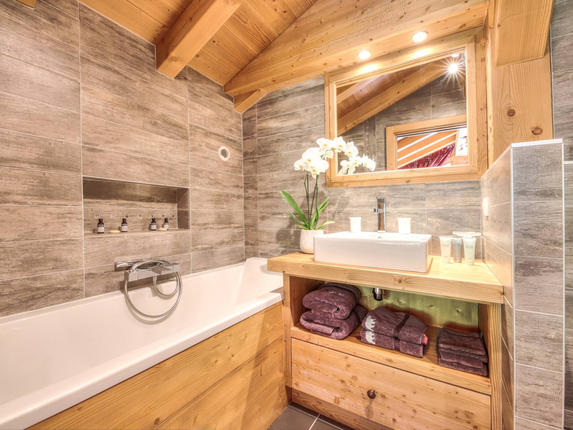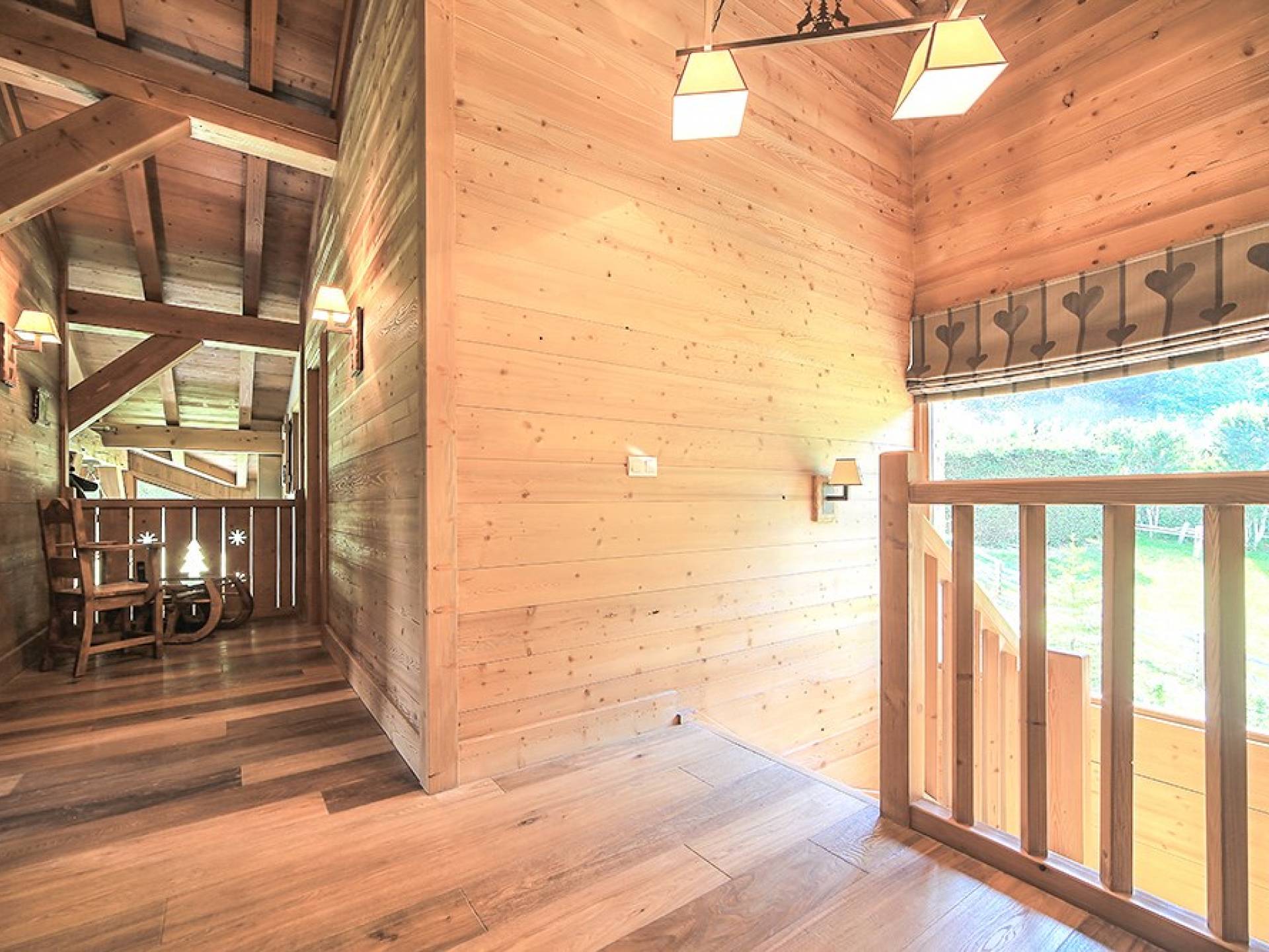 Auf der oberen Etage des Chalets finden Sie eine große Halle mit weiteren vier schönen Doppel- und Zweibettzimmern mit eigenem Bad, alle mit Balkon und Blick auf die Berge, die die atemberaubende Mont-Blanc-Bergkette einschließen. Dies ist ein fantastisches Luxus-Skichalet mit viel Wohnraum, authentischem Charme und modernem Komfort.