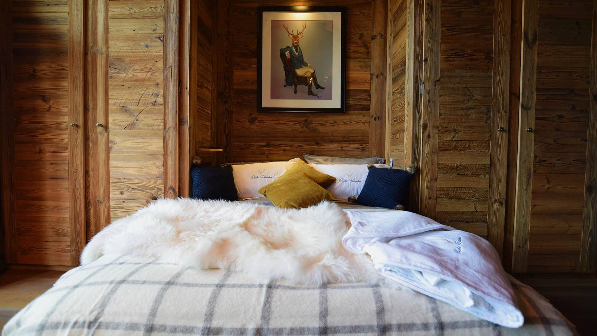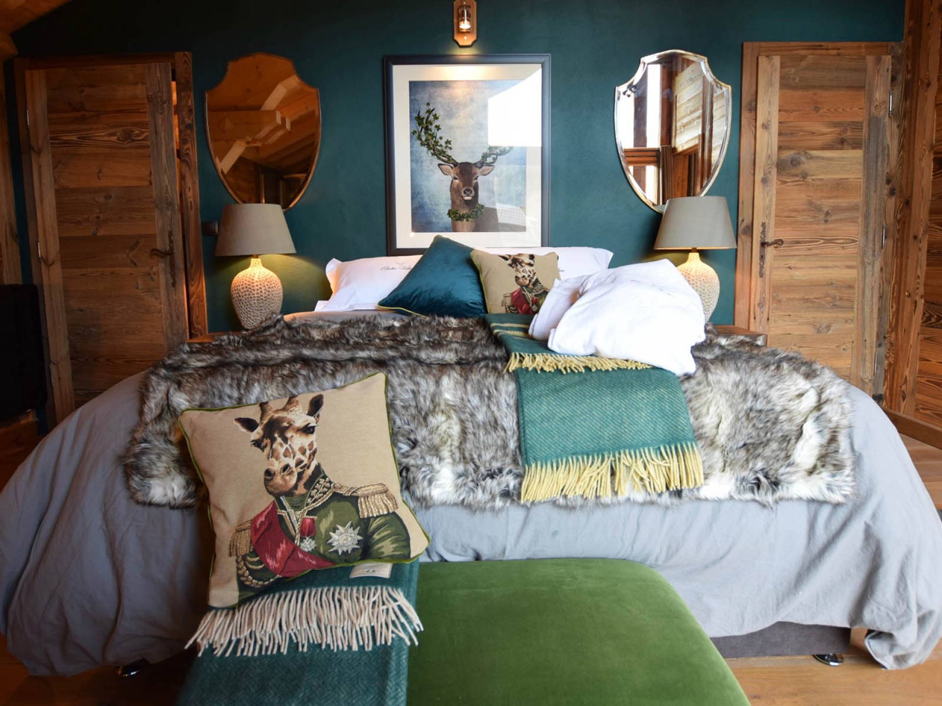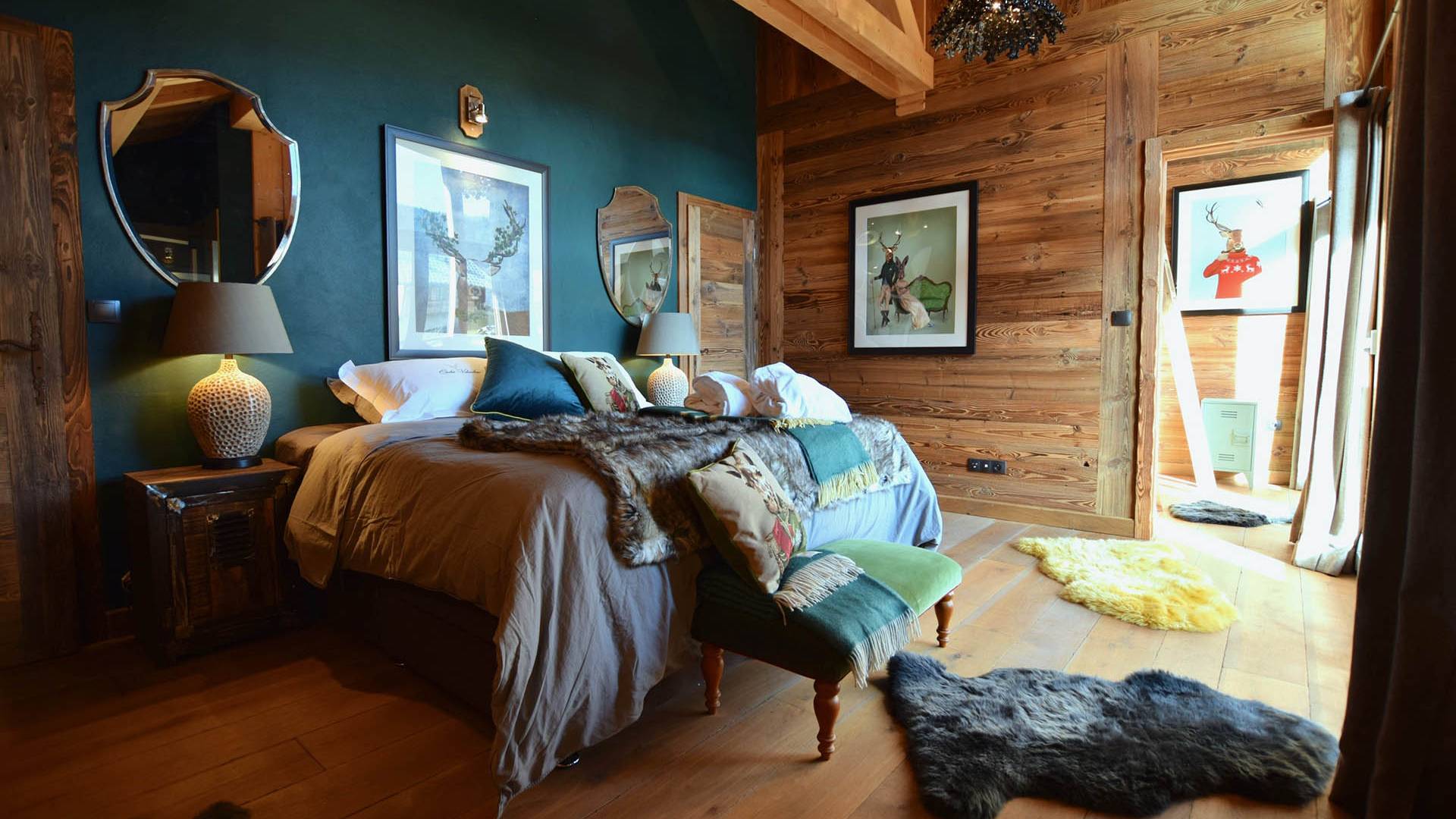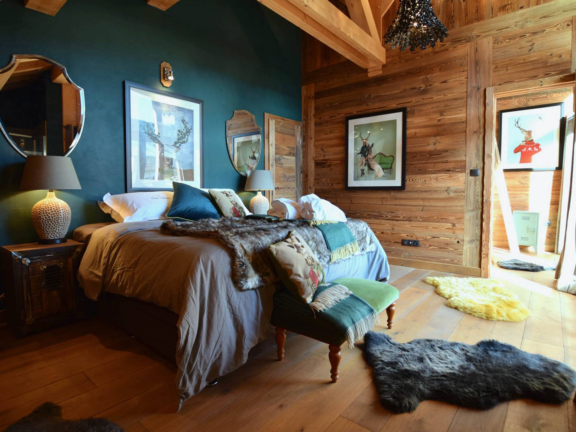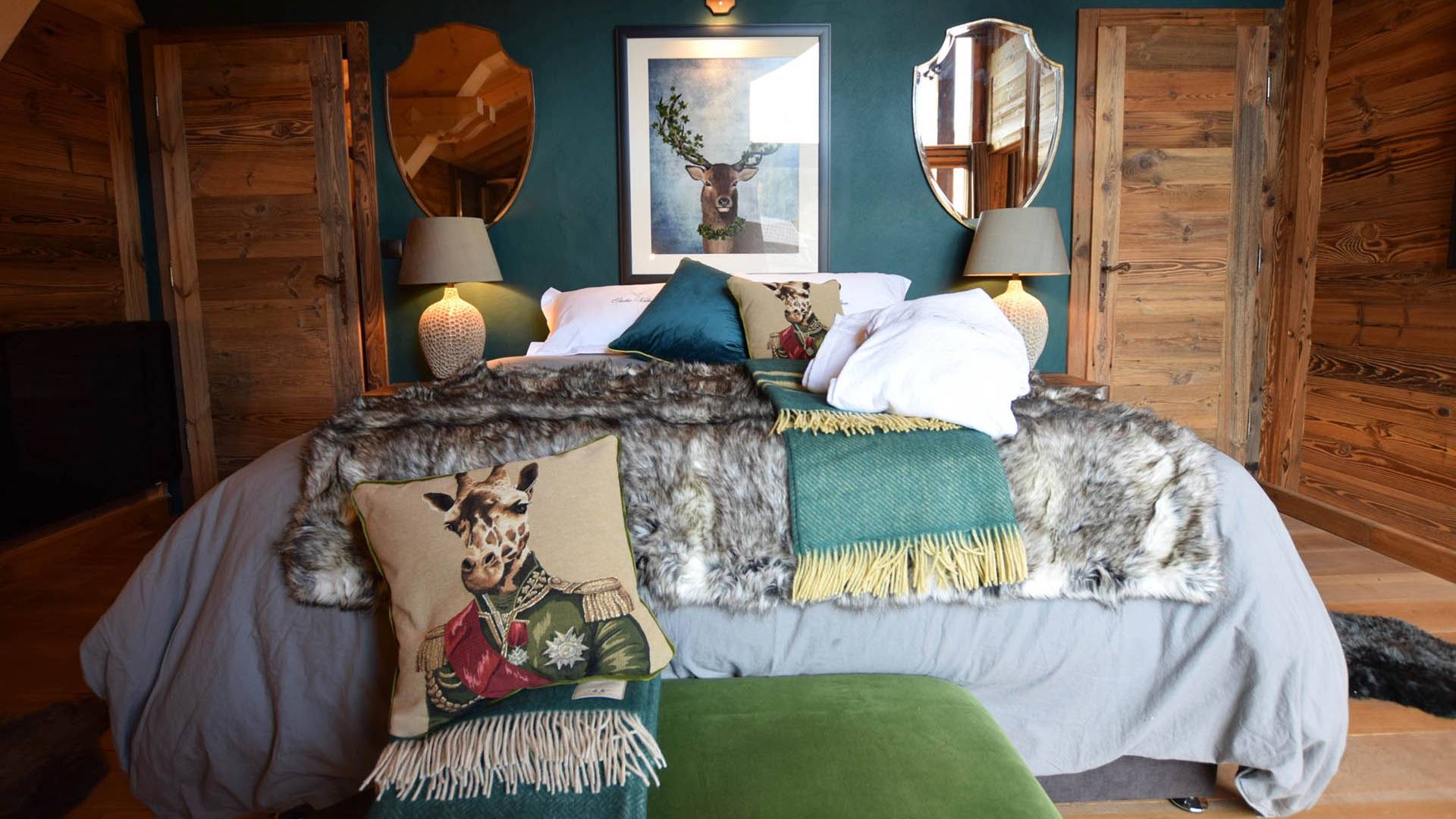 Gleich neben dem Hauptwohnbereich befindet sich Zimmer 1, wobei sich die letzten vier Schlafzimmer im zweiten Stock befinden. Alle sind sorgfältig gestaltet, jedes mit seinem eigenen, einzigartigen Look, mit prächtigen Woll- und Samtüberwürfen, Schaffellteppichen, Christian Lacroix- und Ralph Lauren-Schlafzimmerstühlen und Andrew Martin-Möbeln.