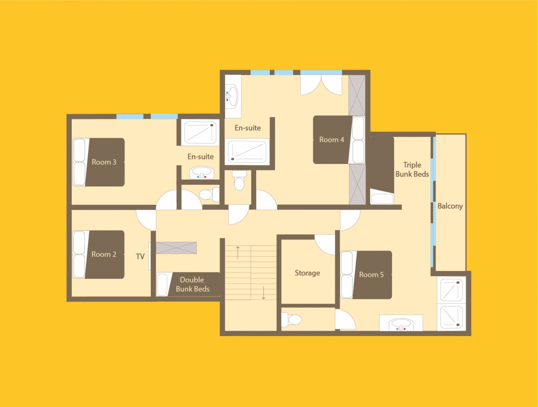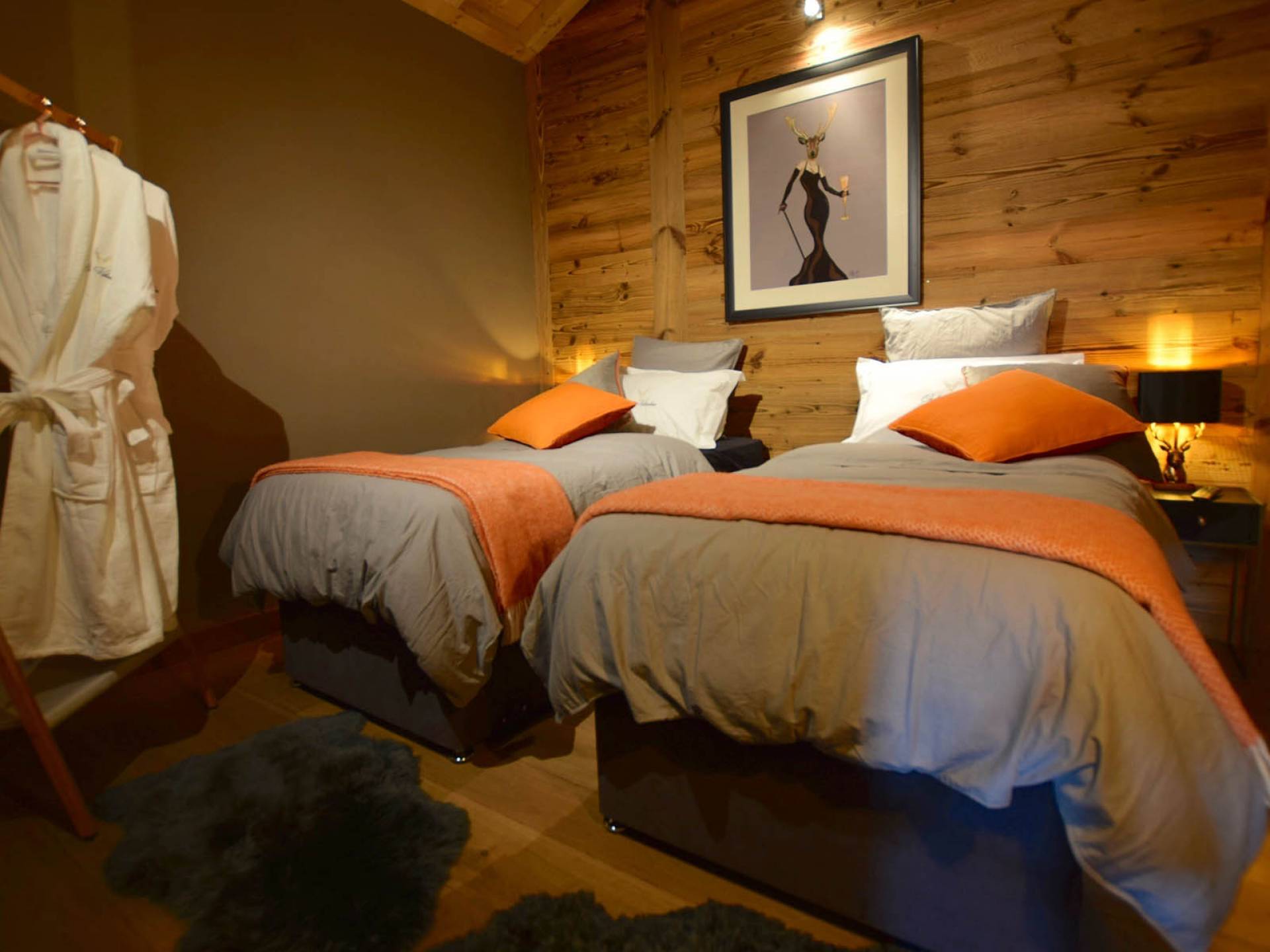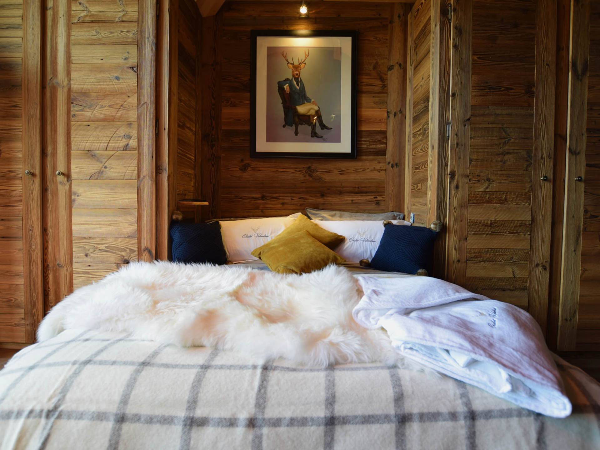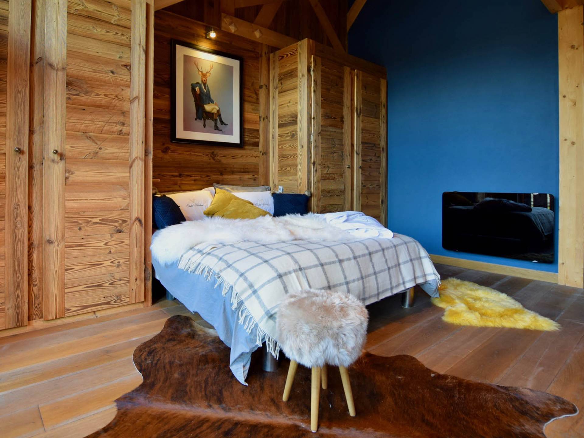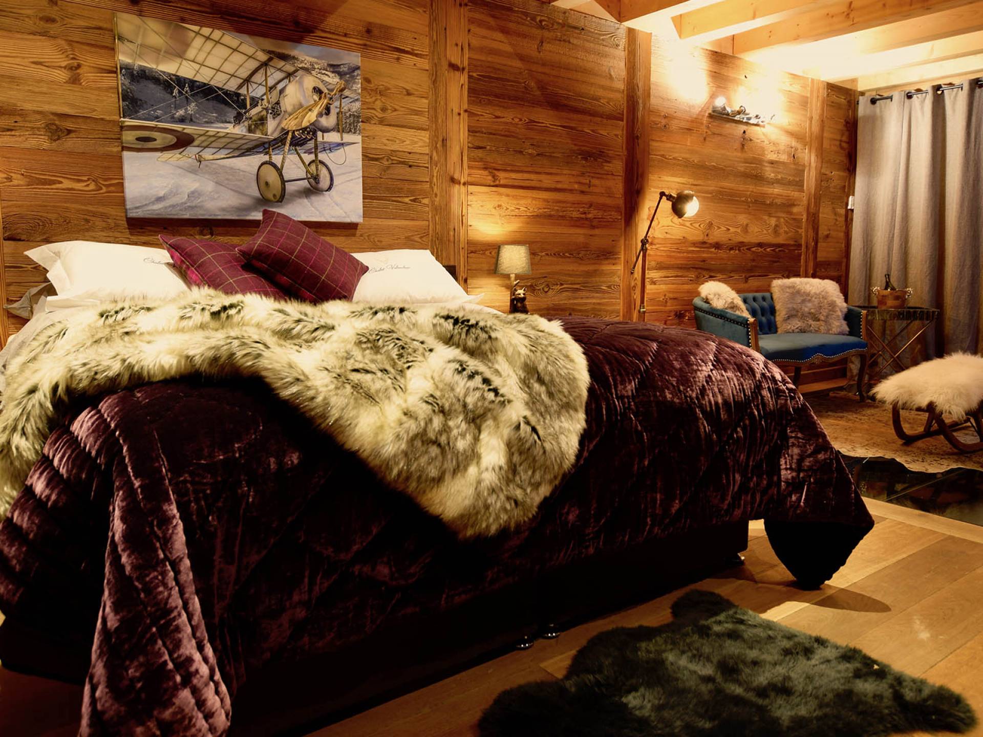Gleich neben dem Hauptwohnbereich befindet sich Zimmer 1, wobei sich die letzten vier Schlafzimmer im zweiten Stock befinden. Alle sind sorgfältig gestaltet, jedes mit seinem eigenen, einzigartigen Look, mit prächtigen Woll- und Samtüberwürfen, Schaffellteppichen, Christian Lacroix- und Ralph Lauren-Schlafzimmerstühlen und Andrew Martin-Möbeln.