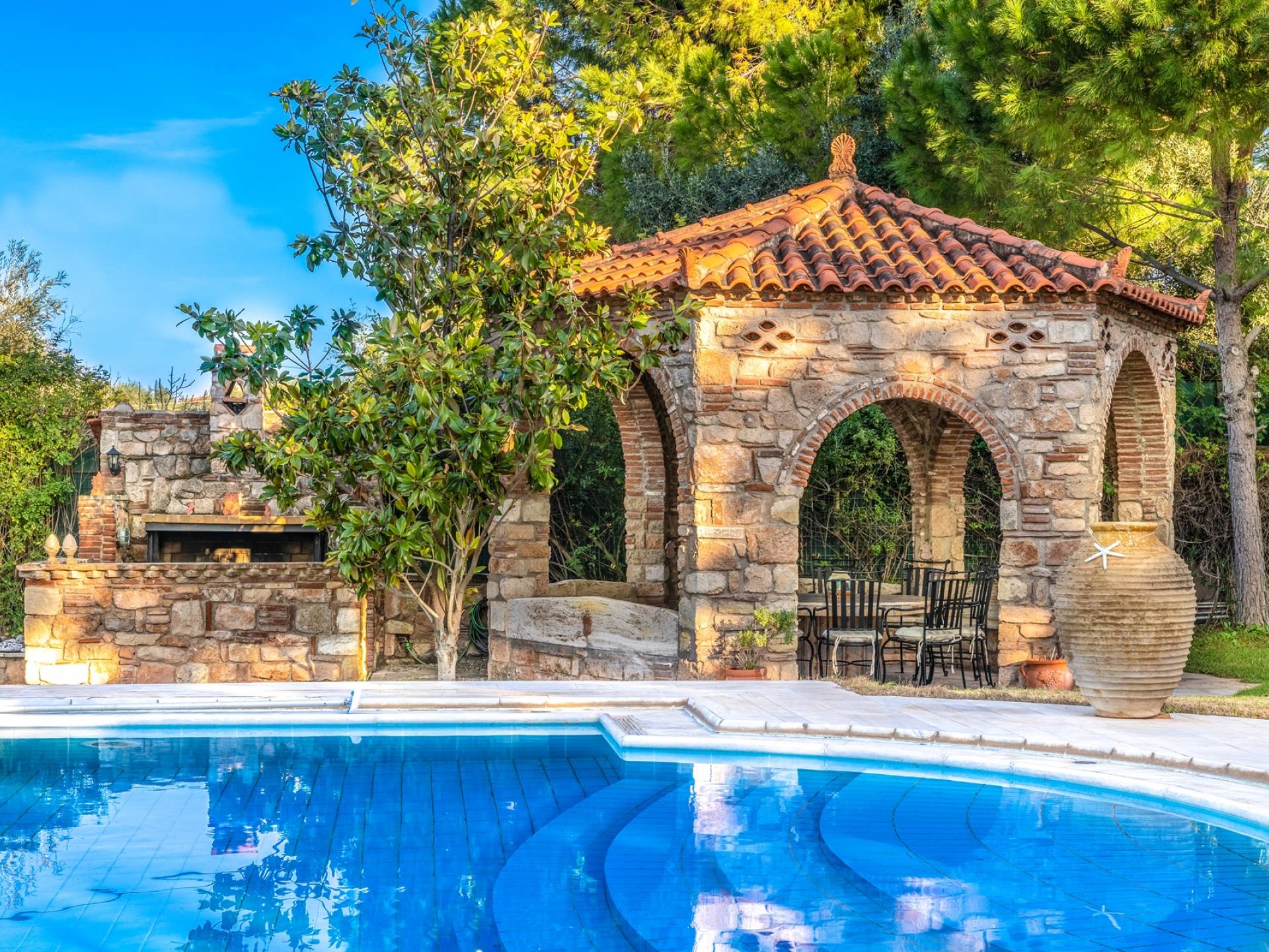 Villa Verde Evia hat einen tollen Blick auf das Meer und ist zu Fuß erreichbar. Es bietet Platz für bis zu 13 Gäste mit vielen Aktivitäten, die mit einem Garten zu tun haben, der so groß ist, dass sich jeder in seiner Schönheit verlieren wird. 2 Küchen für jeden Appetit und ein Grill für eine Mahlzeit im Freien. Eine sehr kinderfreundliche Villa mit oberster Priorität ist die Sicherheit für alle, die sich aufhalten.