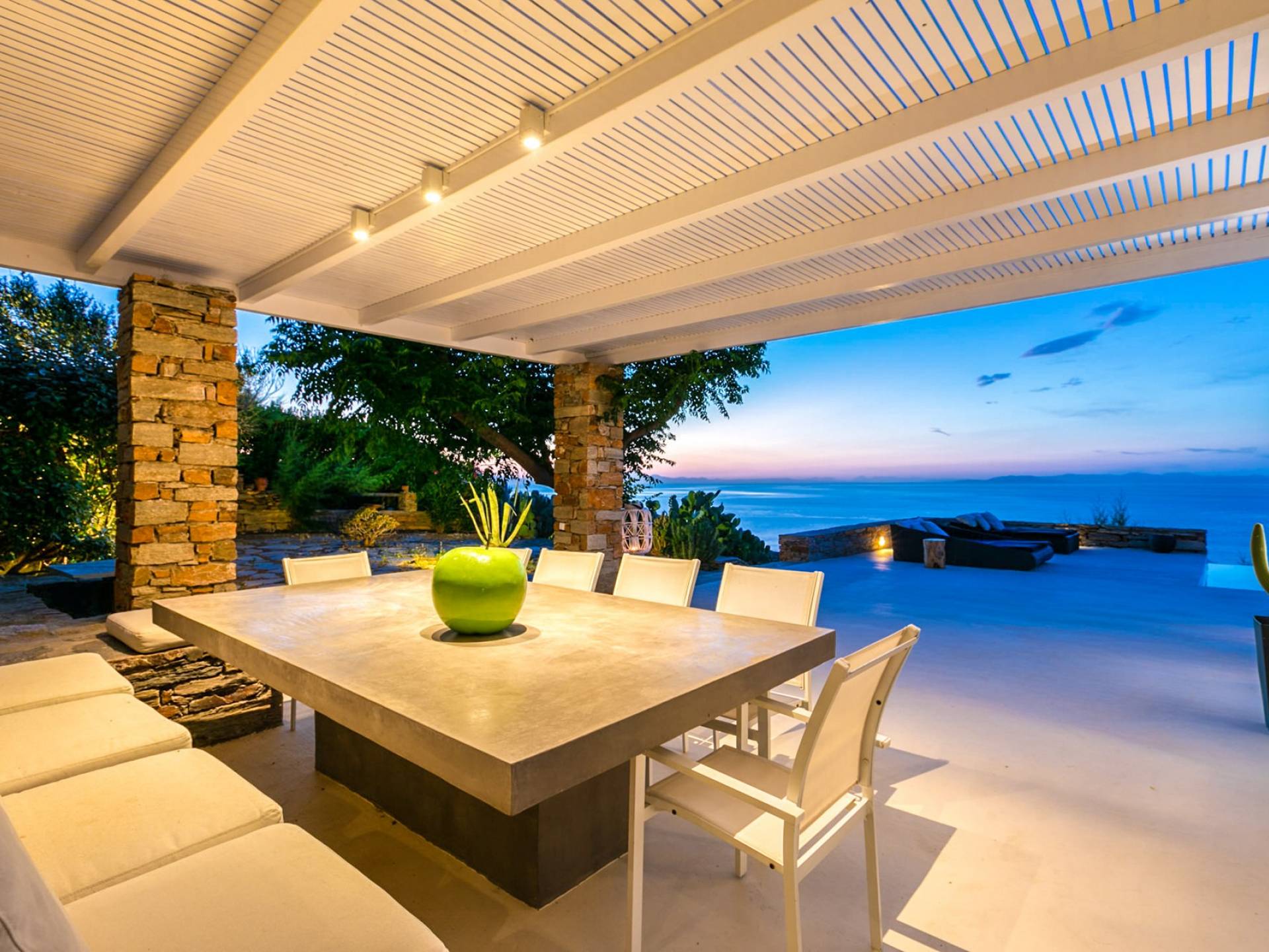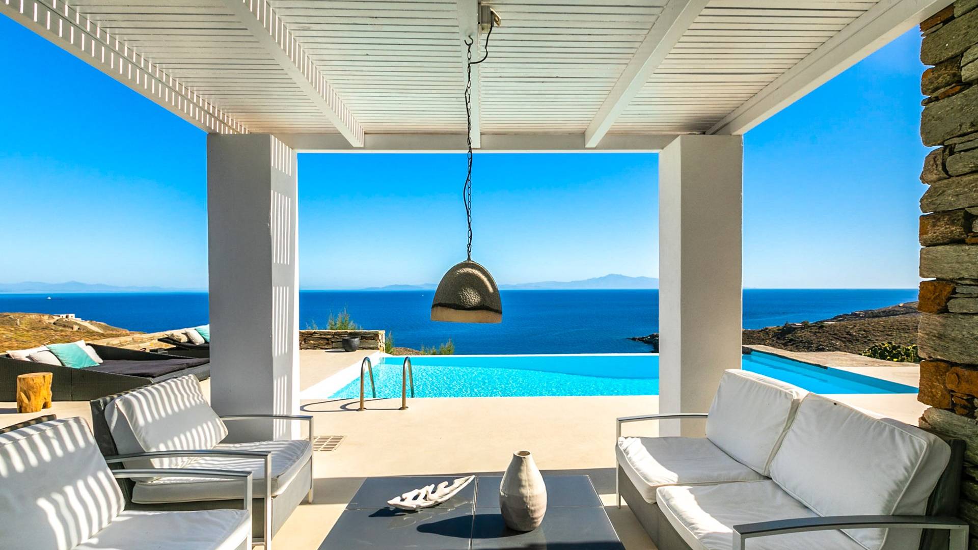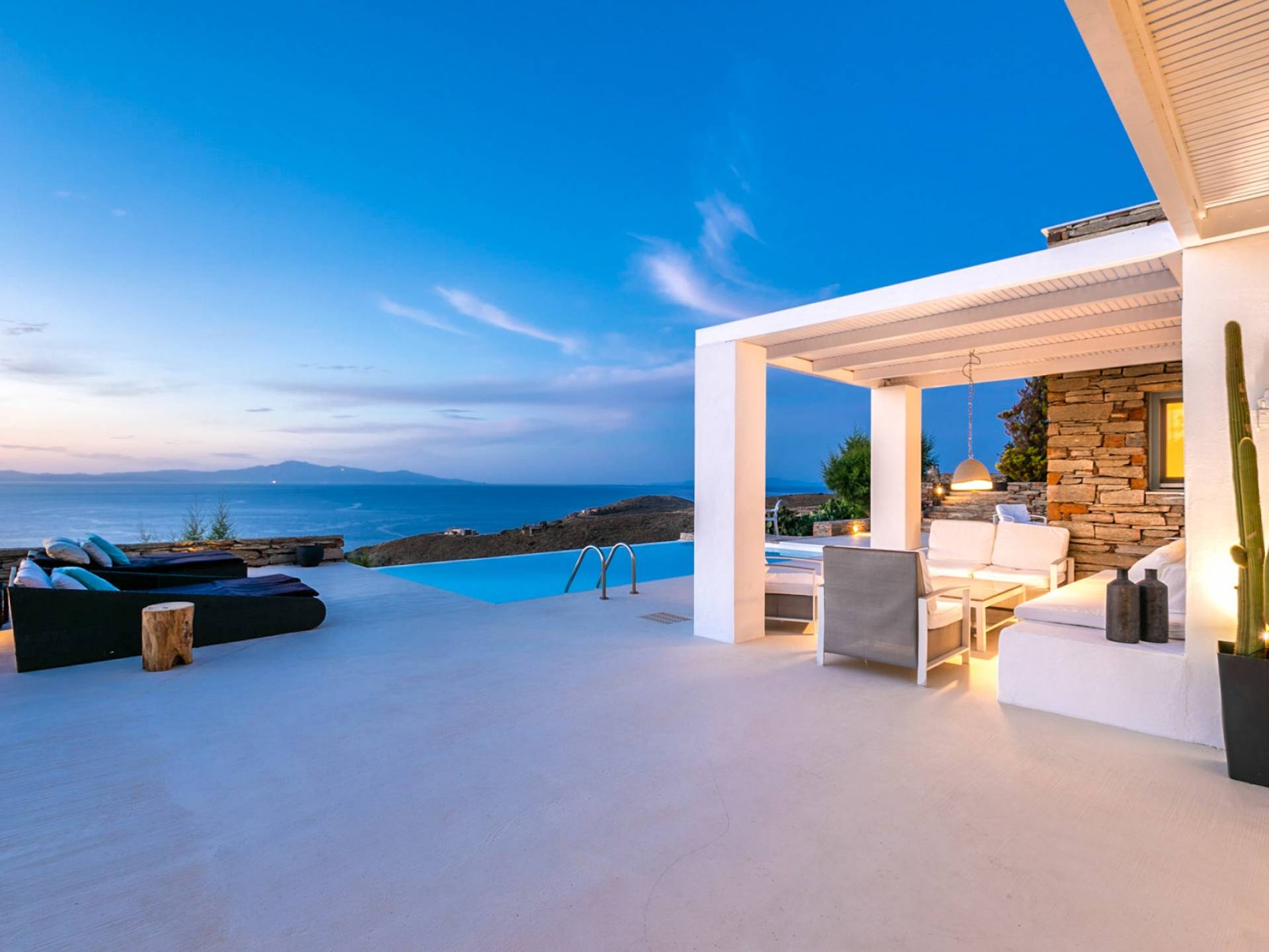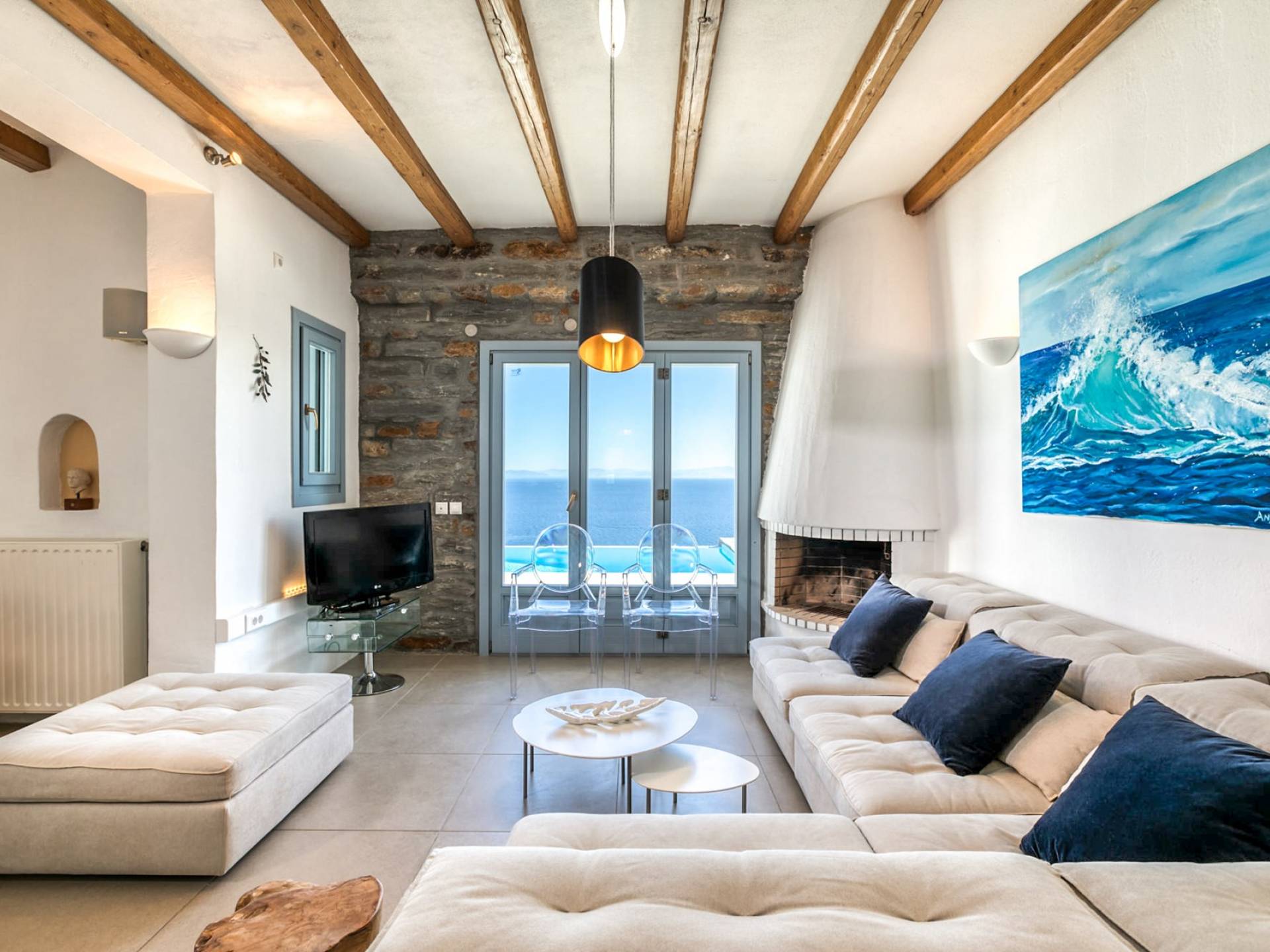 Traumhafte Kingsize-Betten mit direktem Meerblick, raumhohe Glastüren, komfortable und schön eingerichtete Gemeinschaftsbereiche, strahlend weiße Wände, die die starke Sonne der Kykladen reflektieren und dazu beitragen, dass die Häuser kühl bleiben, geräumige, voll möblierte Terrassen mit Pergolen und elegante Esszimmermöbel, entspannende lange Stühle, süße Couchtische, bequeme Sonnenliegen und schattige Pergolen machen es schwer, die Villa zu verlassen.