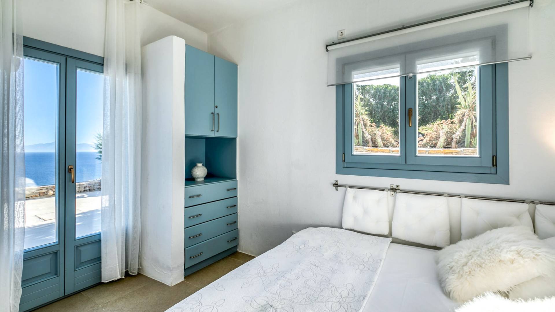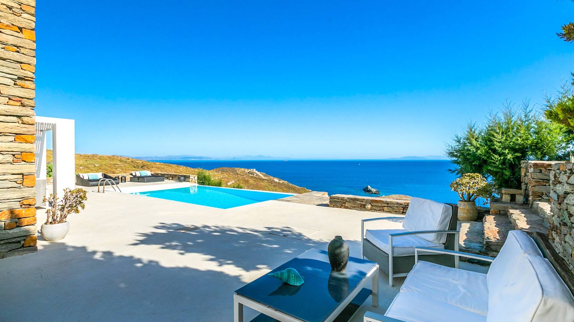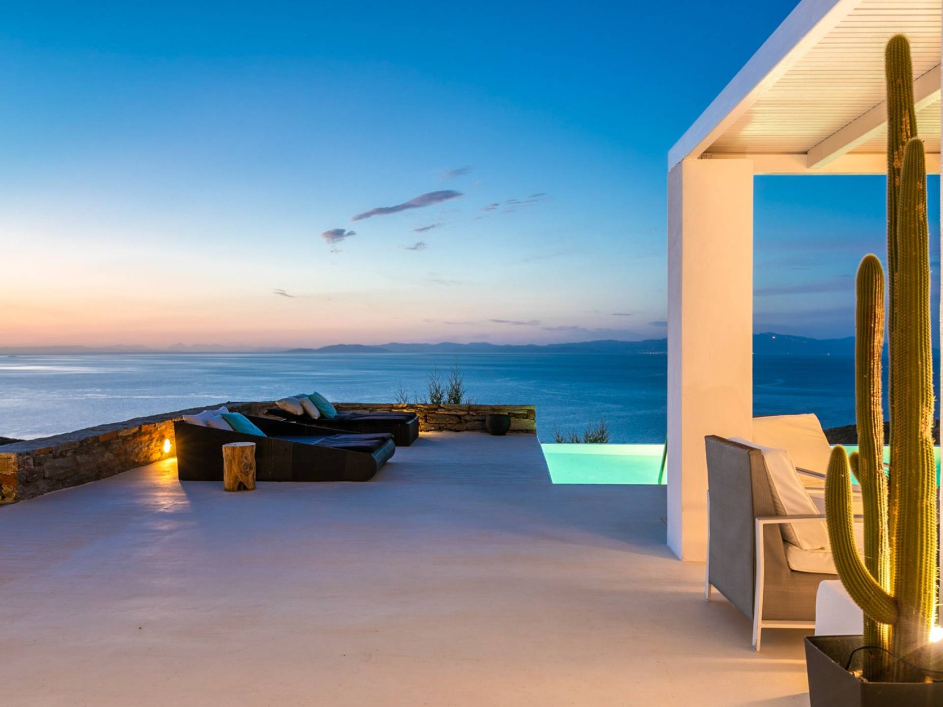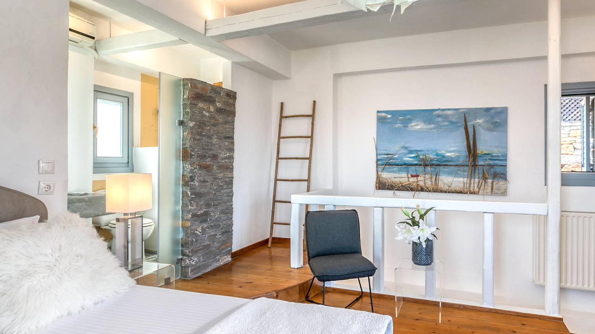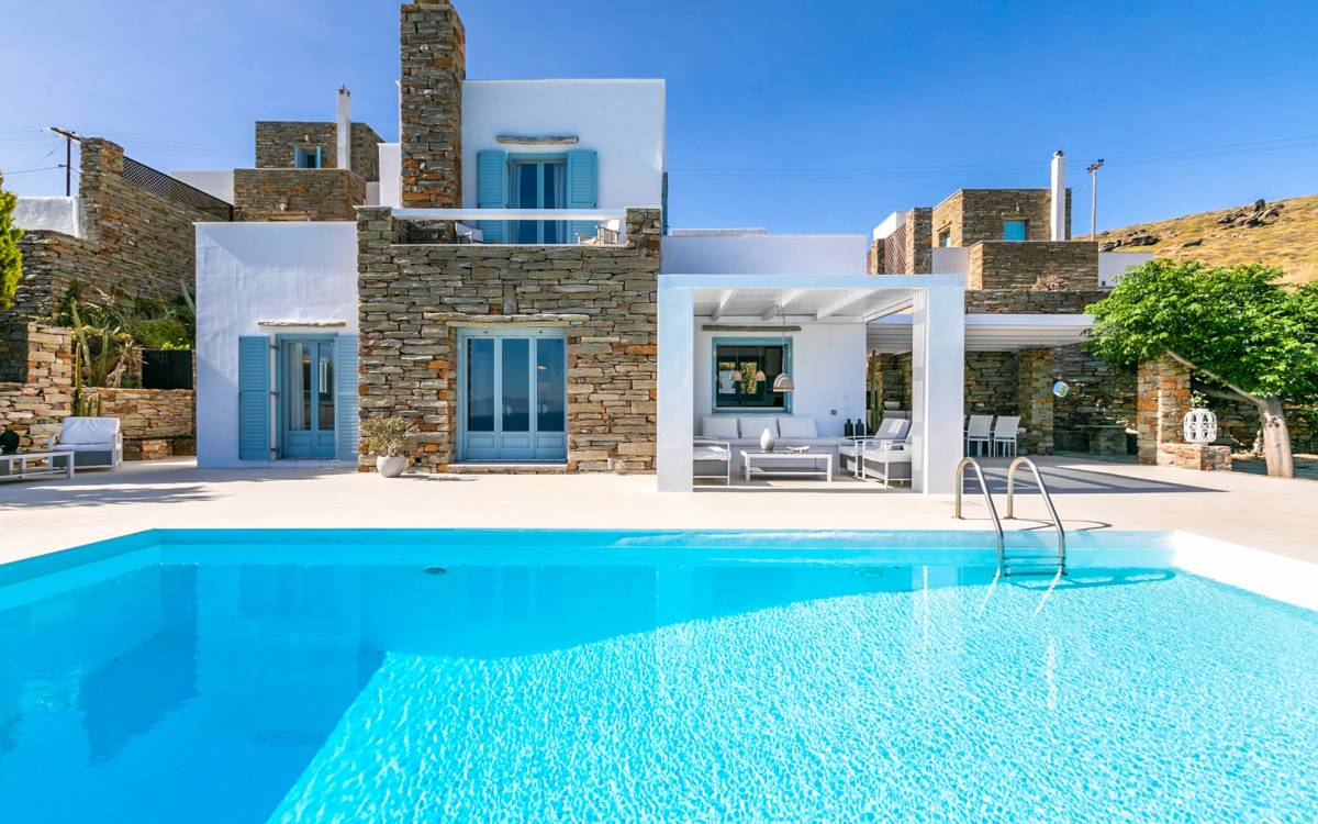 Traumhafte Kingsize-Betten mit direktem Meerblick, raumhohe Glastüren, komfortable und schön eingerichtete Gemeinschaftsbereiche, strahlend weiße Wände, die die starke Sonne der Kykladen reflektieren und dazu beitragen, dass die Häuser kühl bleiben, geräumige, voll möblierte Terrassen mit Pergolen und elegante Esszimmermöbel, entspannende lange Stühle, süße Couchtische, bequeme Sonnenliegen und schattige Pergolen machen es schwer, die Villa zu verlassen.