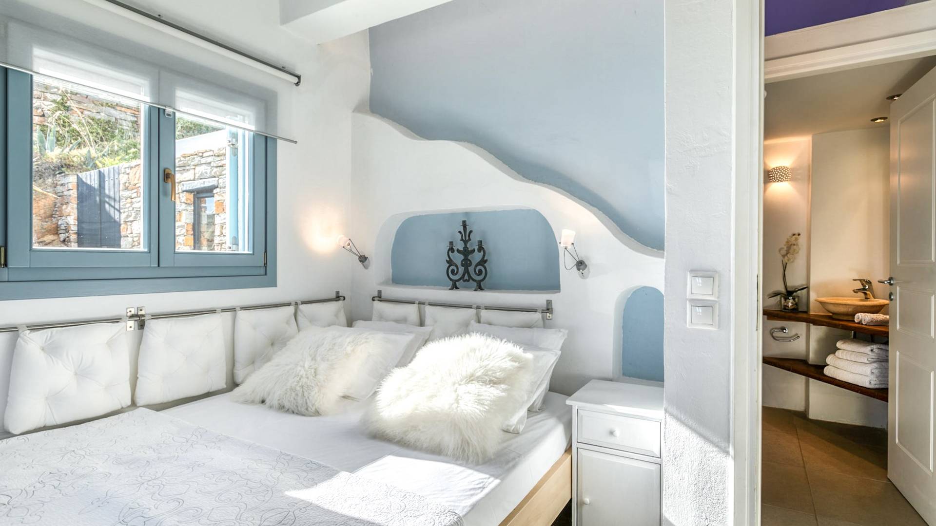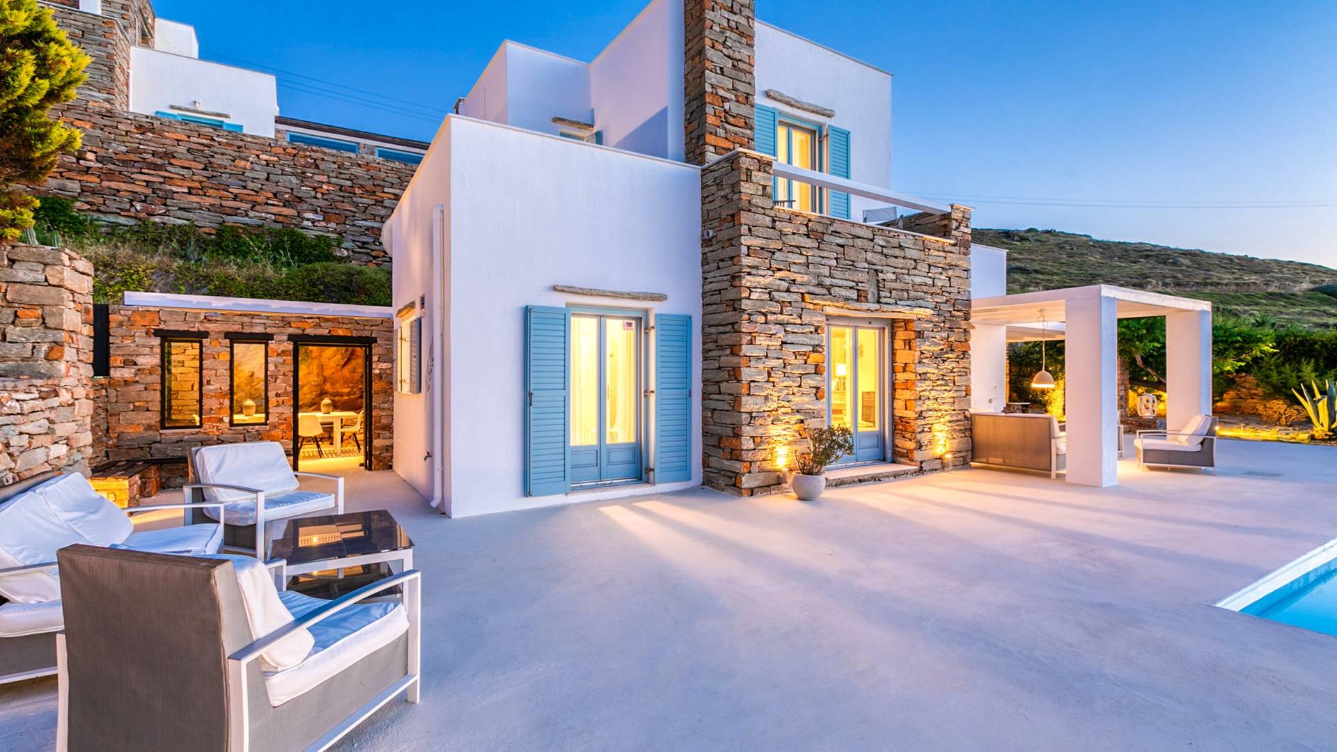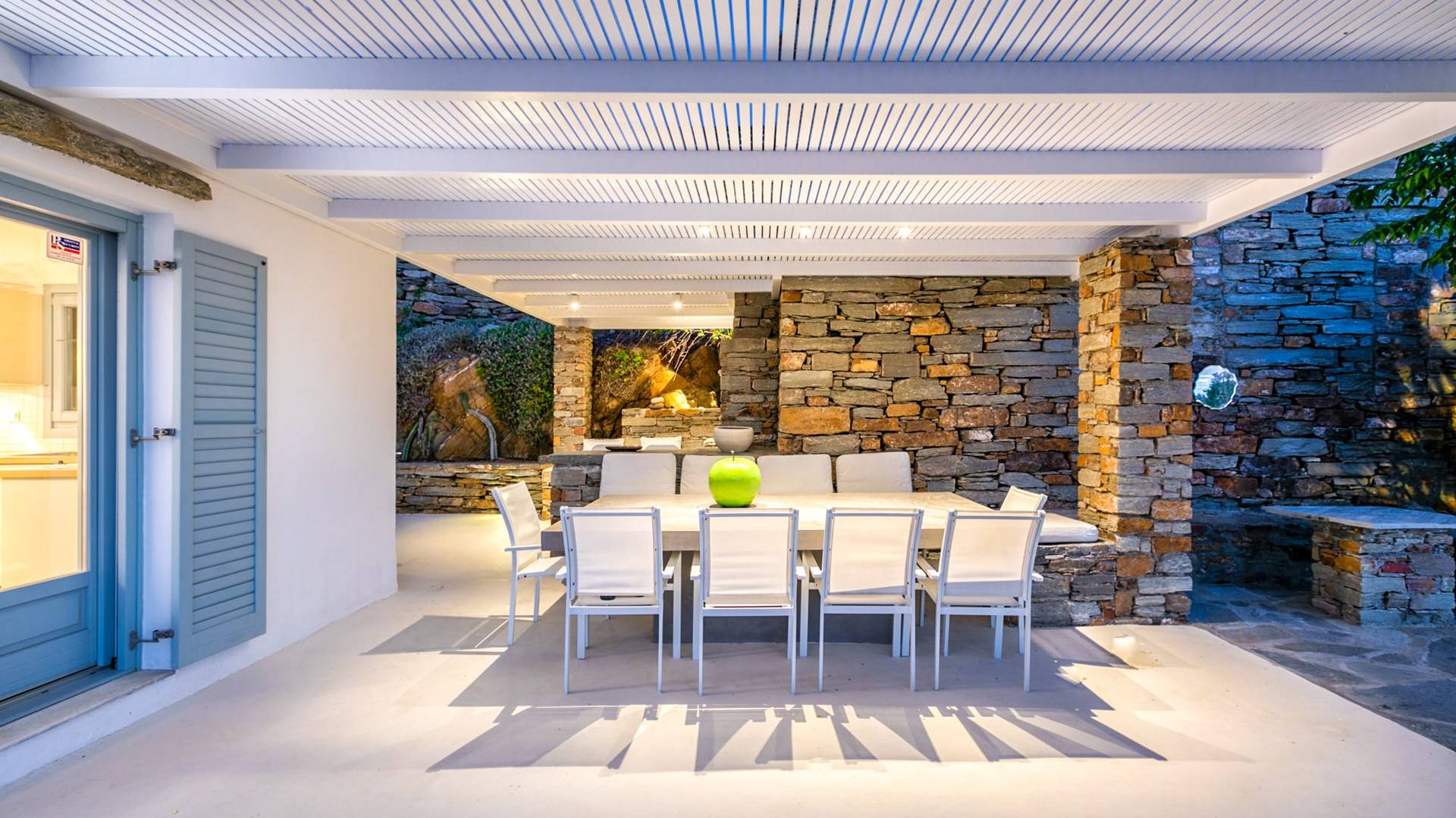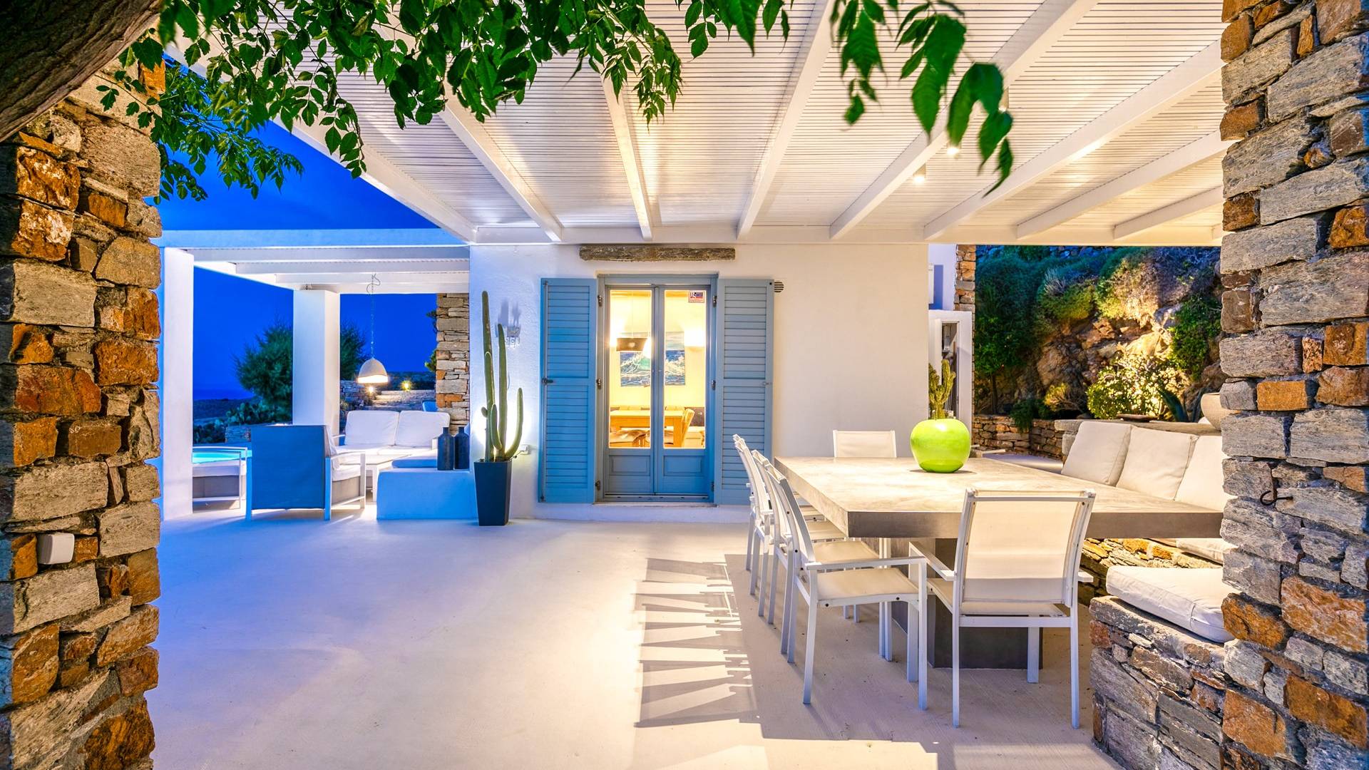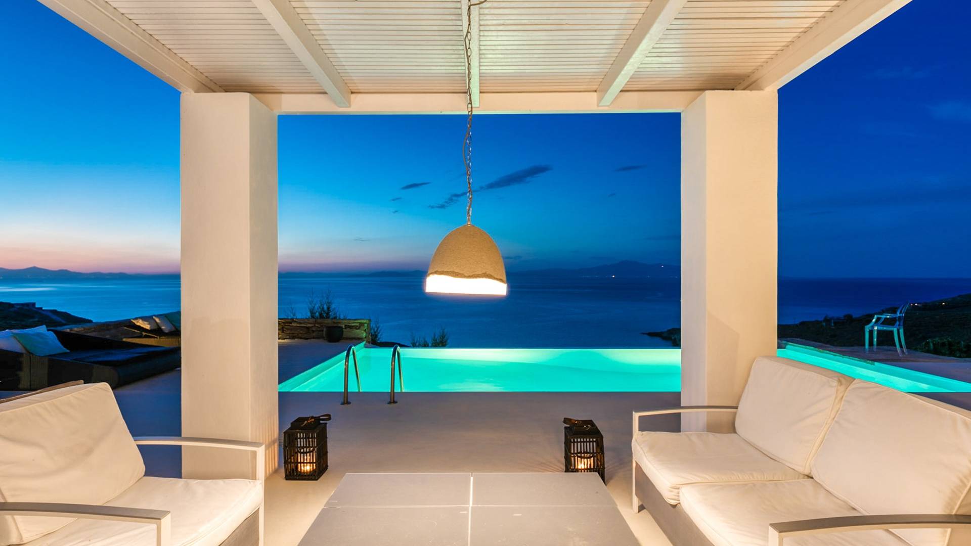 Traumhafte Kingsize-Betten mit direktem Meerblick, raumhohe Glastüren, komfortable und schön eingerichtete Gemeinschaftsbereiche, strahlend weiße Wände, die die starke Sonne der Kykladen reflektieren und dazu beitragen, dass die Häuser kühl bleiben, geräumige, voll möblierte Terrassen mit Pergolen und elegante Esszimmermöbel, entspannende lange Stühle, süße Couchtische, bequeme Sonnenliegen und schattige Pergolen machen es schwer, die Villa zu verlassen.