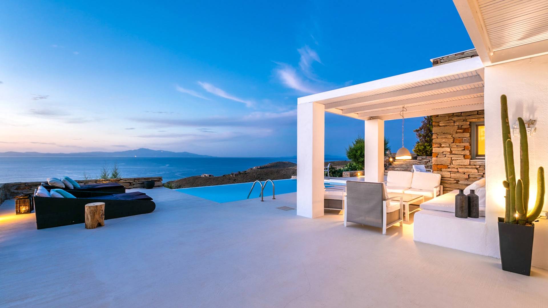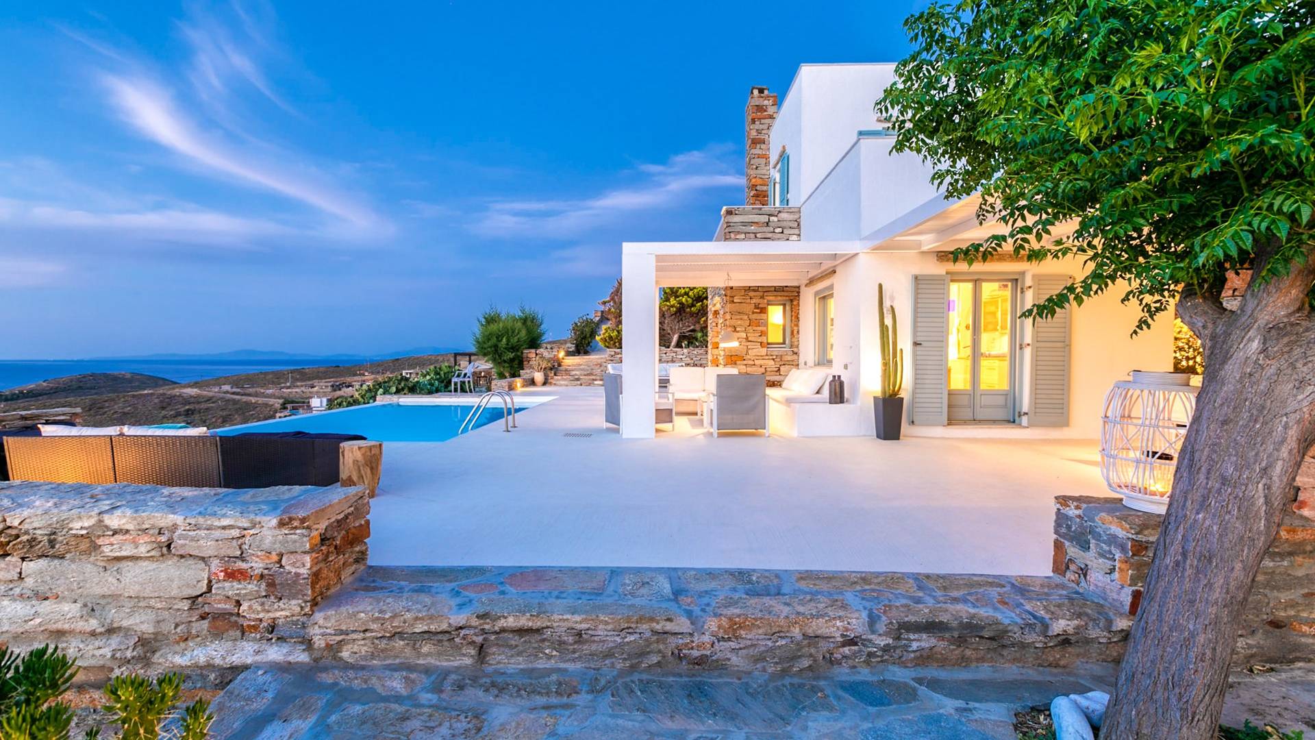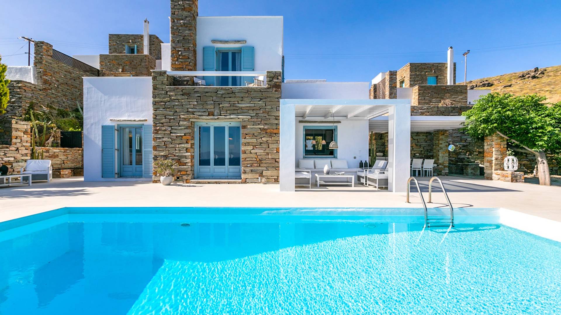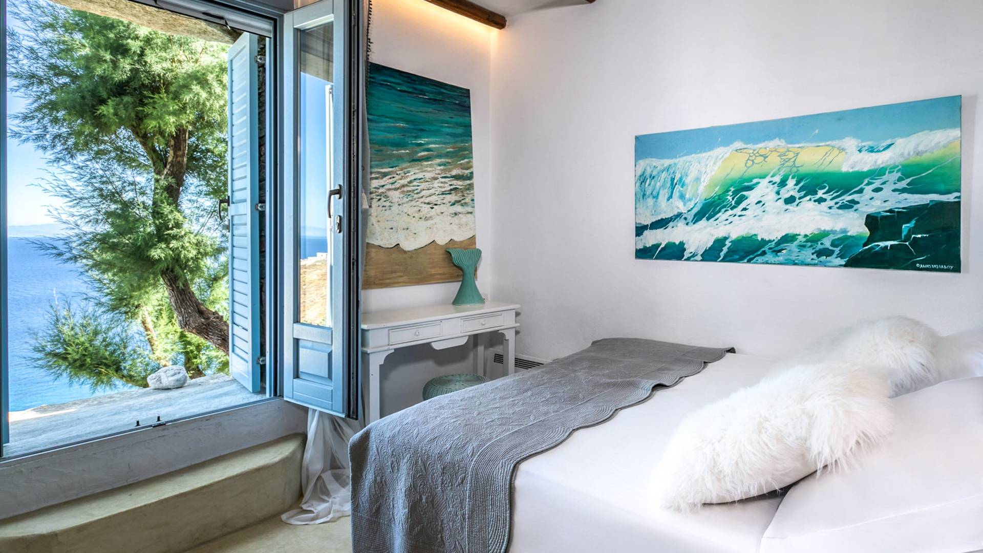 Traumhafte Kingsize-Betten mit direktem Meerblick, raumhohe Glastüren, komfortable und schön eingerichtete Gemeinschaftsbereiche, strahlend weiße Wände, die die starke Sonne der Kykladen reflektieren und dazu beitragen, dass die Häuser kühl bleiben, geräumige, voll möblierte Terrassen mit Pergolen und elegante Esszimmermöbel, entspannende lange Stühle, süße Couchtische, bequeme Sonnenliegen und schattige Pergolen machen es schwer, die Villa zu verlassen.