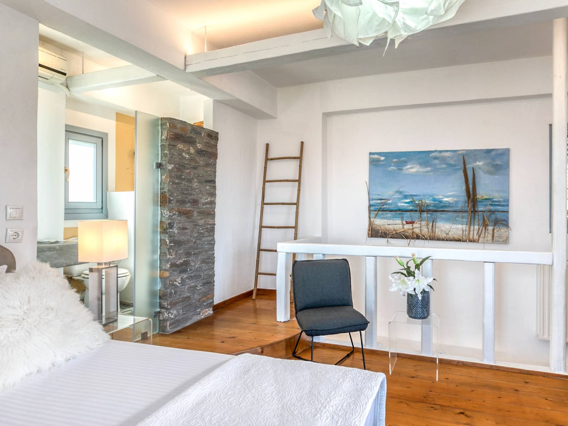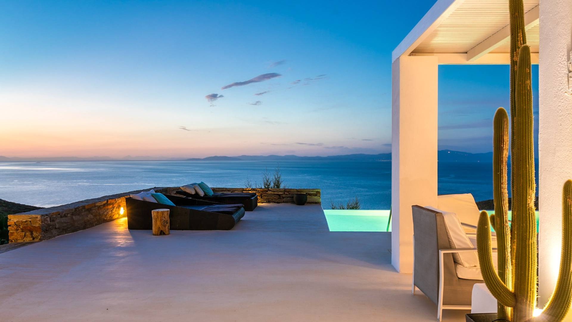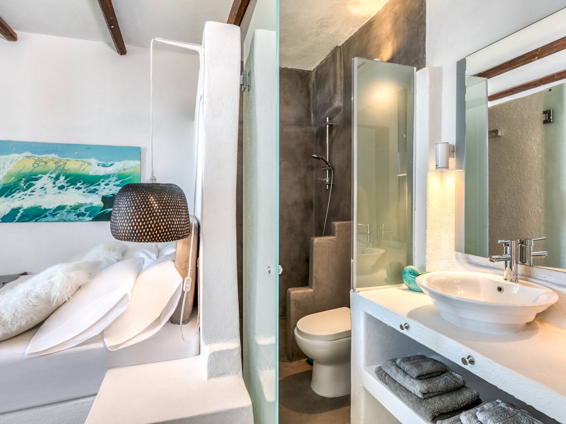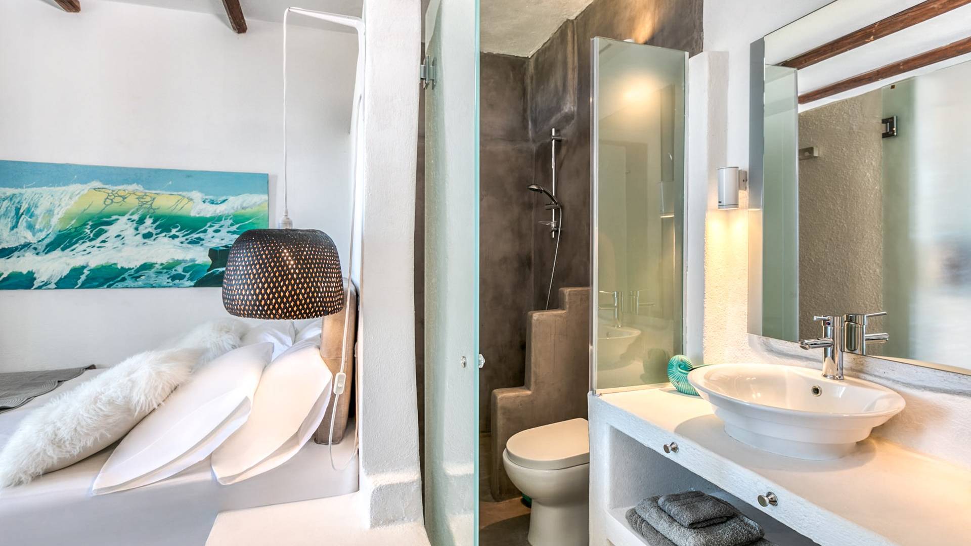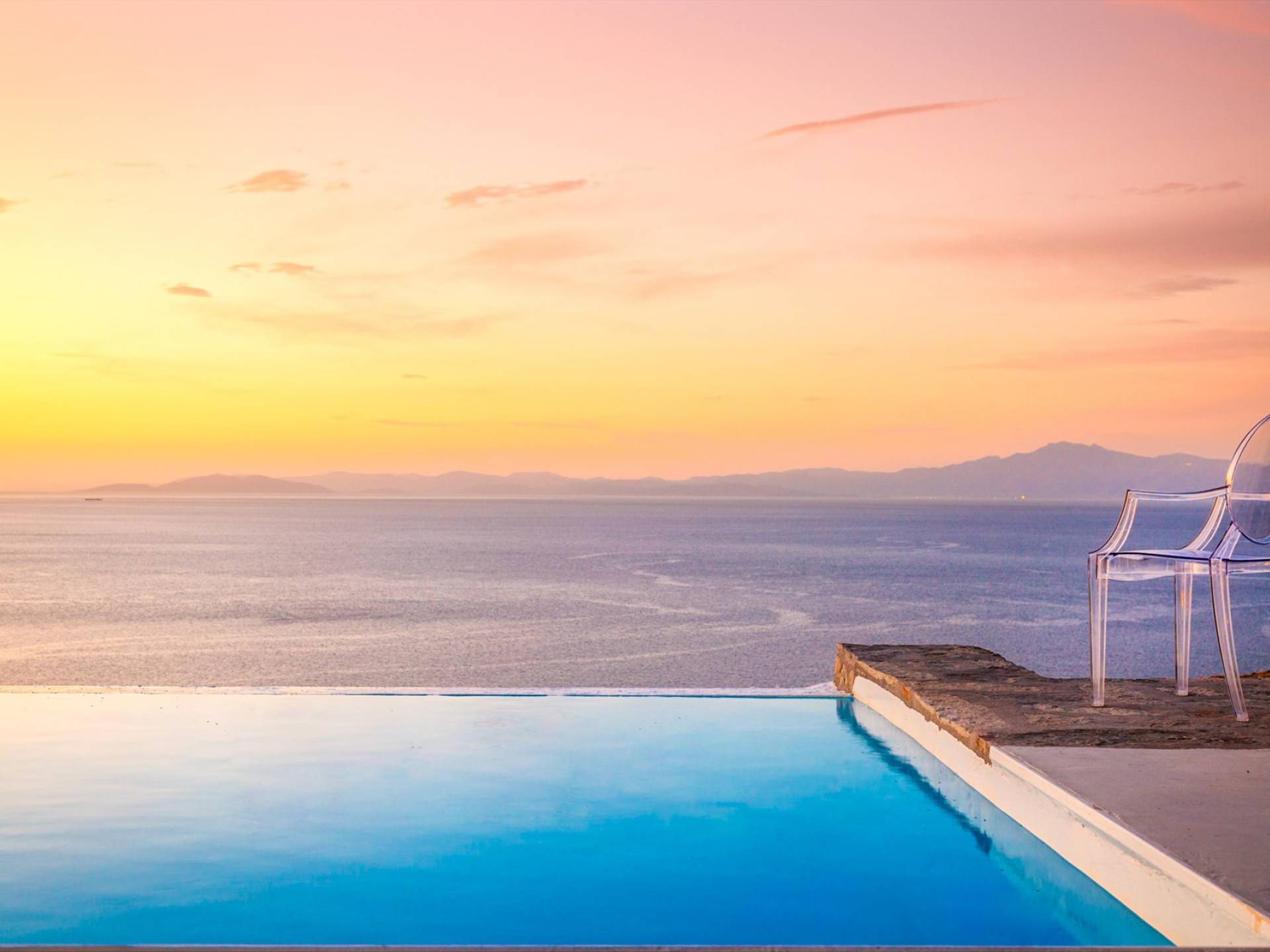 Traumhafte Kingsize-Betten mit direktem Meerblick, raumhohe Glastüren, komfortable und schön eingerichtete Gemeinschaftsbereiche, strahlend weiße Wände, die die starke Sonne der Kykladen reflektieren und dazu beitragen, dass die Häuser kühl bleiben, geräumige, voll möblierte Terrassen mit Pergolen und elegante Esszimmermöbel, entspannende lange Stühle, süße Couchtische, bequeme Sonnenliegen und schattige Pergolen machen es schwer, die Villa zu verlassen.