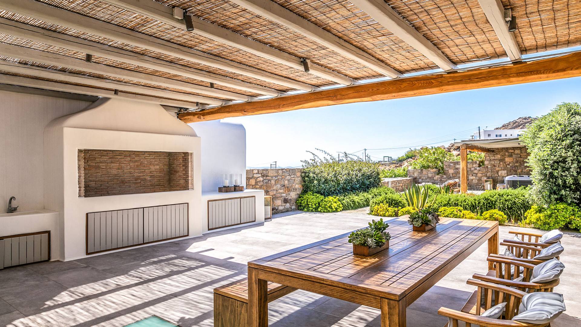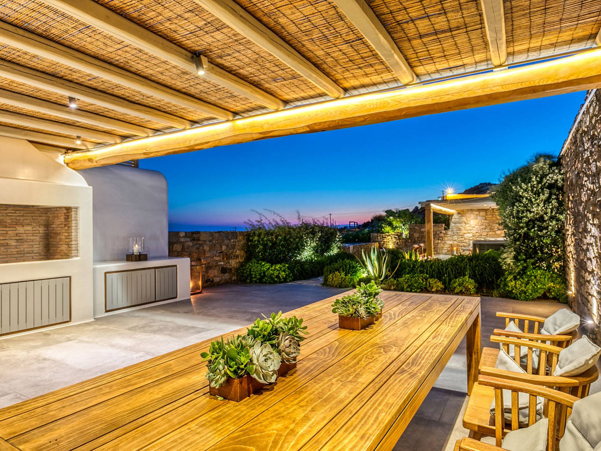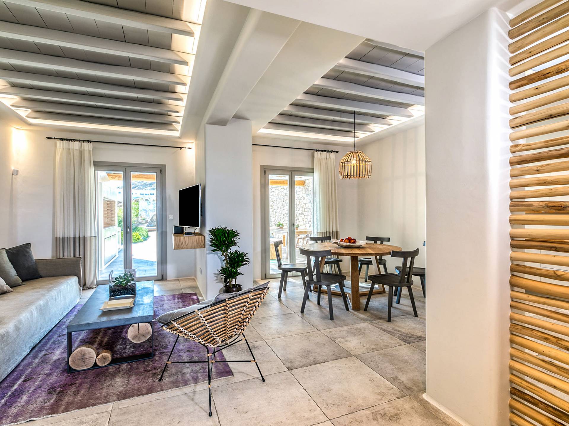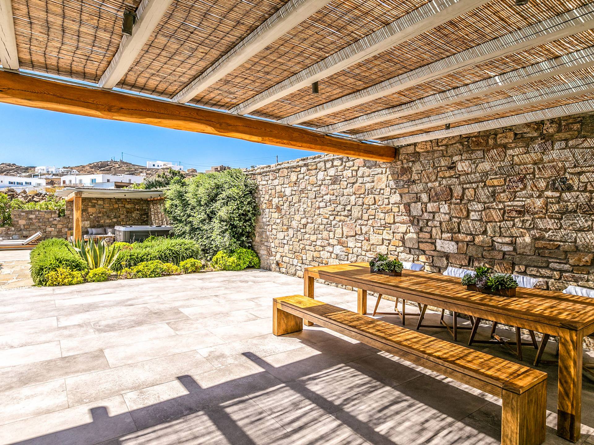Sorgfältig entworfen, um vor dem berühmten "Meltemi" - dem starken Nordwind, der ein Markenzeichen der Insel ist - zu schützen, ist die 159 m² große M-Two Villa auf Mykonos ideal für Familien mit Kindern. Die Kleinen werden es lieben, in der offenen Wohn- und Essküche zu Abend zu essen, während sie ihren Lieblingsfilm sehen. Gleichzeitig genießen die Erwachsenen einen sternenklaren Grillabend im großzügigen Gastgarten und probieren lokale Köstlichkeiten. Der Aufenthalt in diesem wunderschönen Haus mit Blick auf die glitzernde mykonische Küste wird dazu beitragen, unvergessliche Erinnerungen zu schaffen… Die Annehmlichkeiten der Villa umfassen 2 Doppelzimmer mit eigenem Bad im Erdgeschoss, einen Wohnbereich, eine voll ausgestattete offene Küche und eine Toilette auf der Eingangsebene, und 2 Hauptschlafzimmer mit einem gemeinsamen Badezimmer im Obergeschoss. Draußen gibt es geräumige Ess- und Loungebereiche, einen Grill und einen privaten Whirlpool im Freien.