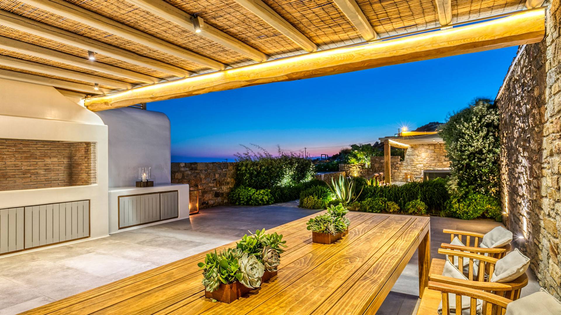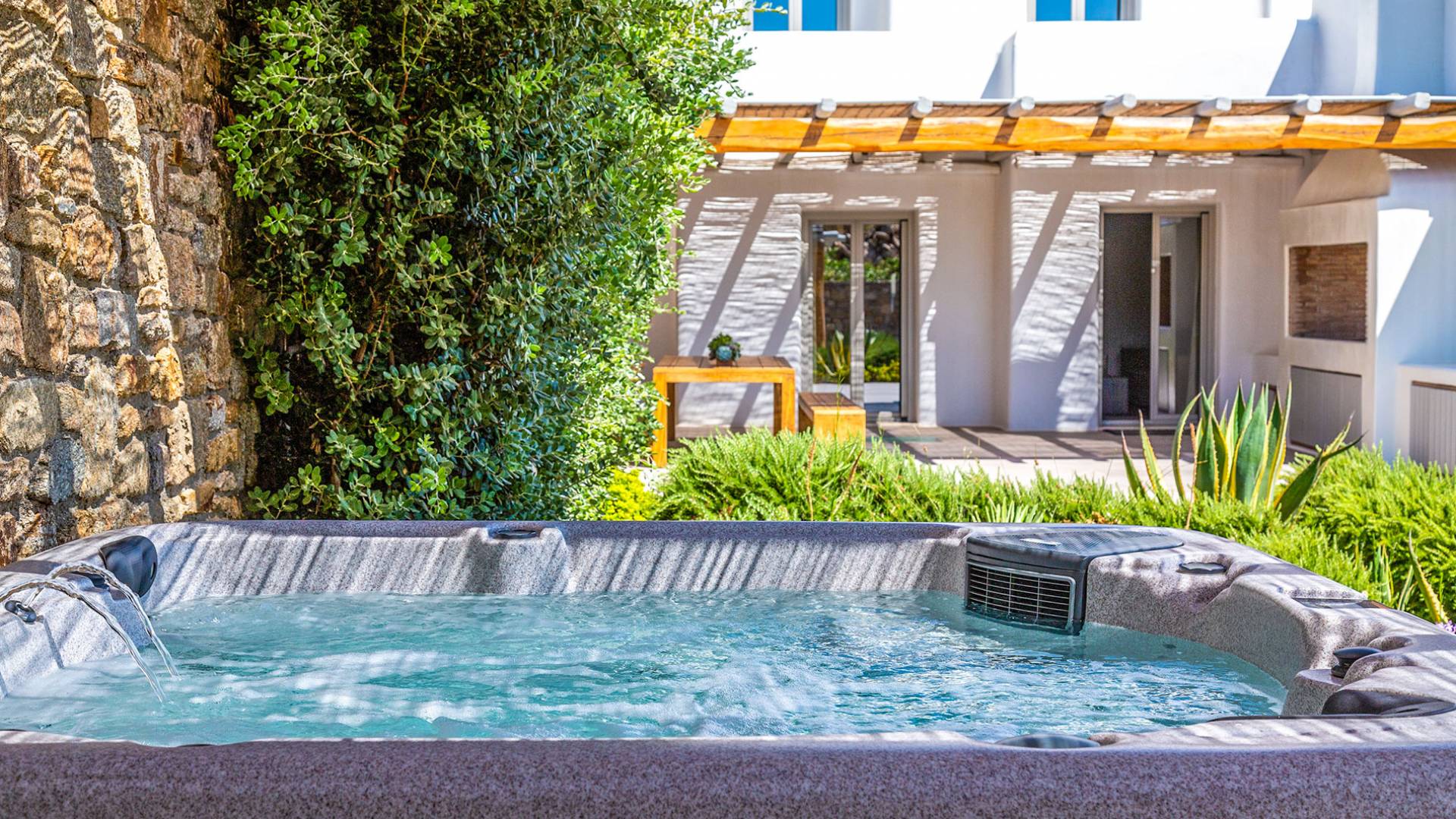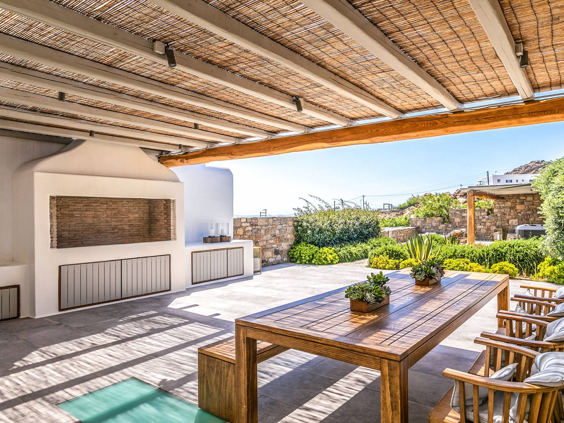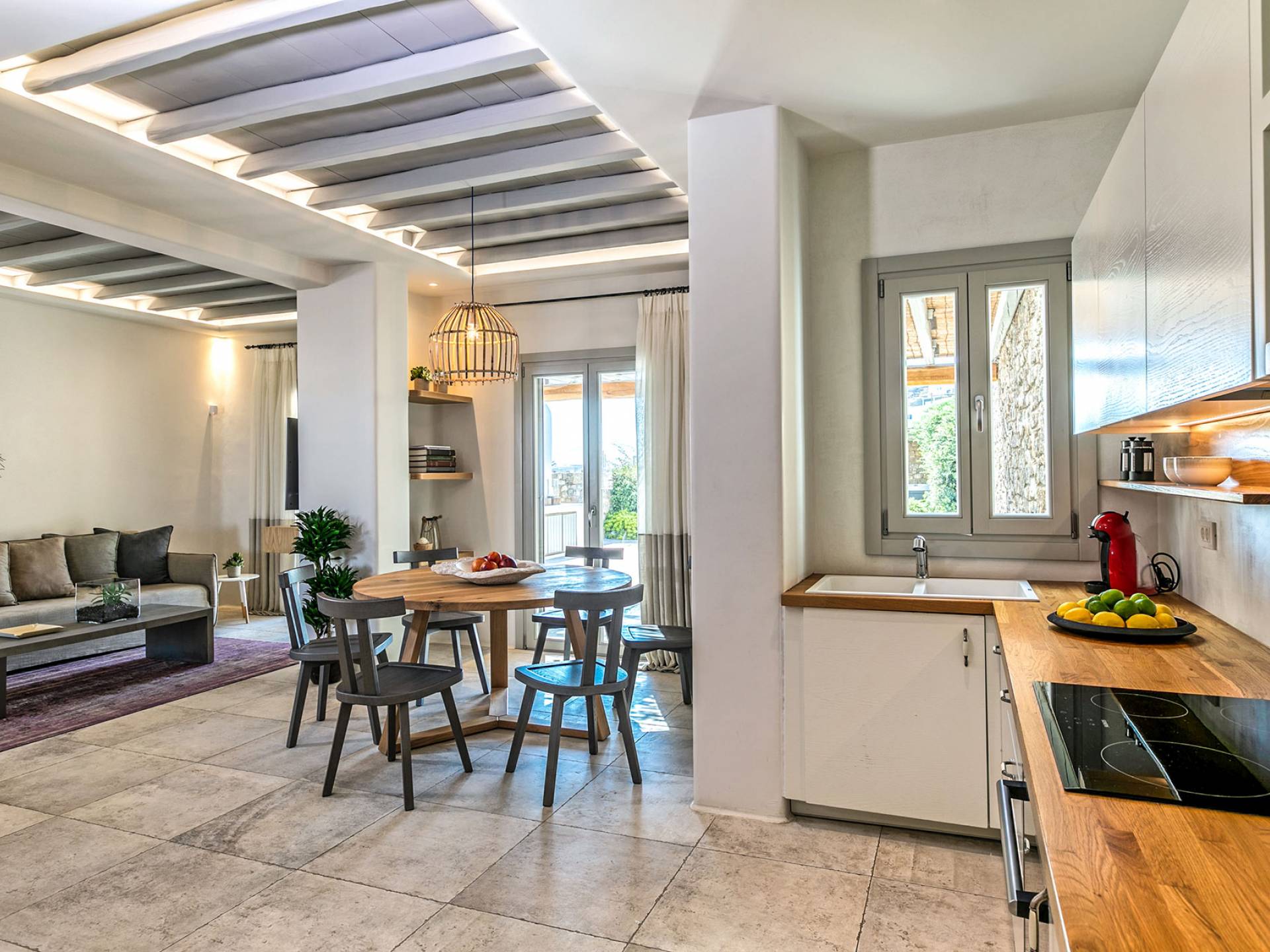 Sorgfältig entworfen, um vor dem berühmten "Meltemi" - dem starken Nordwind, der ein Markenzeichen der Insel ist - zu schützen, ist die 159 m² große M-Two Villa auf Mykonos ideal für Familien mit Kindern. Die Kleinen werden es lieben, in der offenen Wohn- und Essküche zu Abend zu essen, während sie ihren Lieblingsfilm sehen. Gleichzeitig genießen die Erwachsenen einen sternenklaren Grillabend im großzügigen Gastgarten und probieren lokale Köstlichkeiten. Der Aufenthalt in diesem wunderschönen Haus mit Blick auf die glitzernde mykonische Küste wird dazu beitragen, unvergessliche Erinnerungen zu schaffen… Die Annehmlichkeiten der Villa umfassen 2 Doppelzimmer mit eigenem Bad im Erdgeschoss, einen Wohnbereich, eine voll ausgestattete offene Küche und eine Toilette auf der Eingangsebene, und 2 Hauptschlafzimmer mit einem gemeinsamen Badezimmer im Obergeschoss. Draußen gibt es geräumige Ess- und Loungebereiche, einen Grill und einen privaten Whirlpool im Freien.