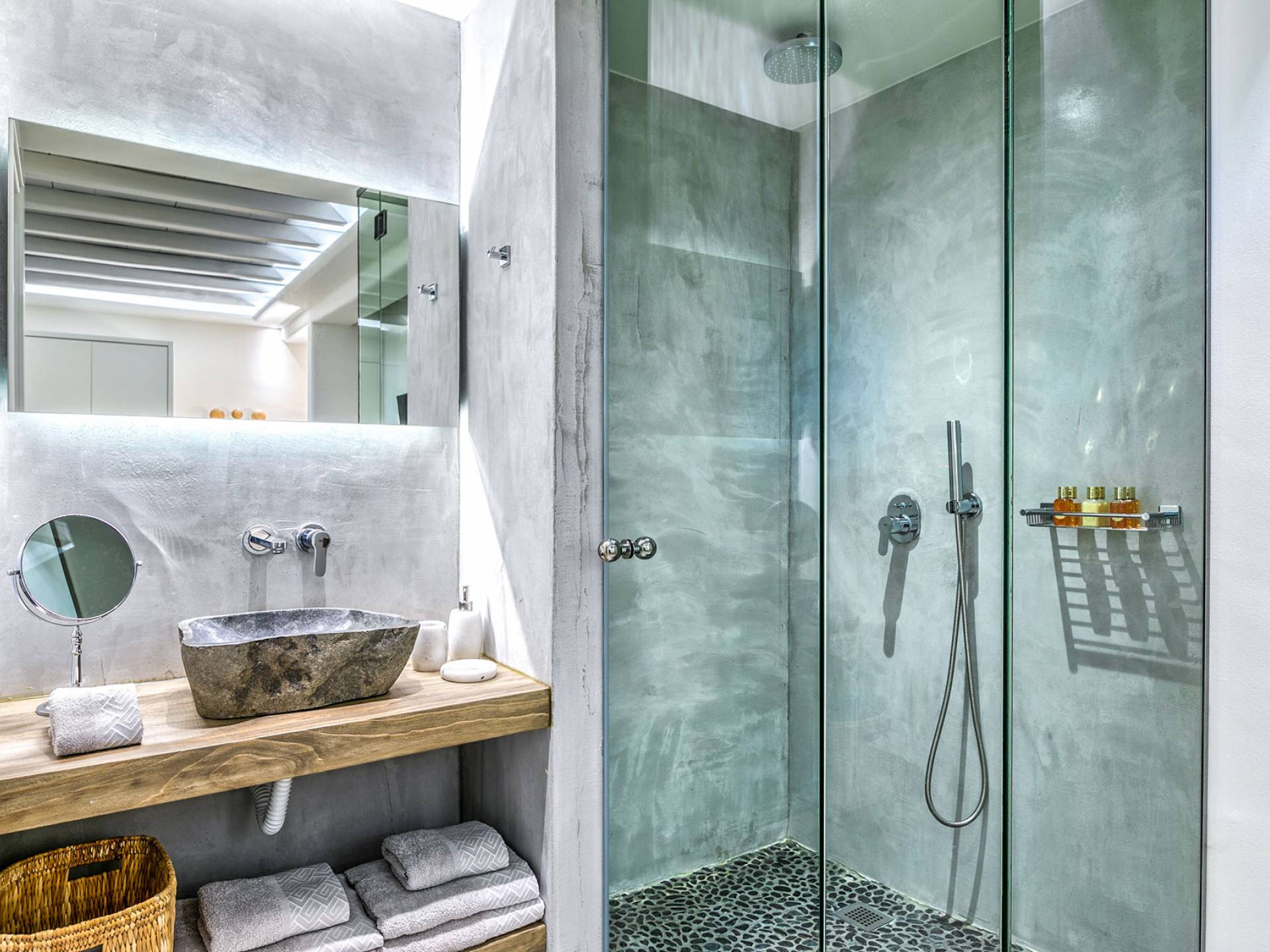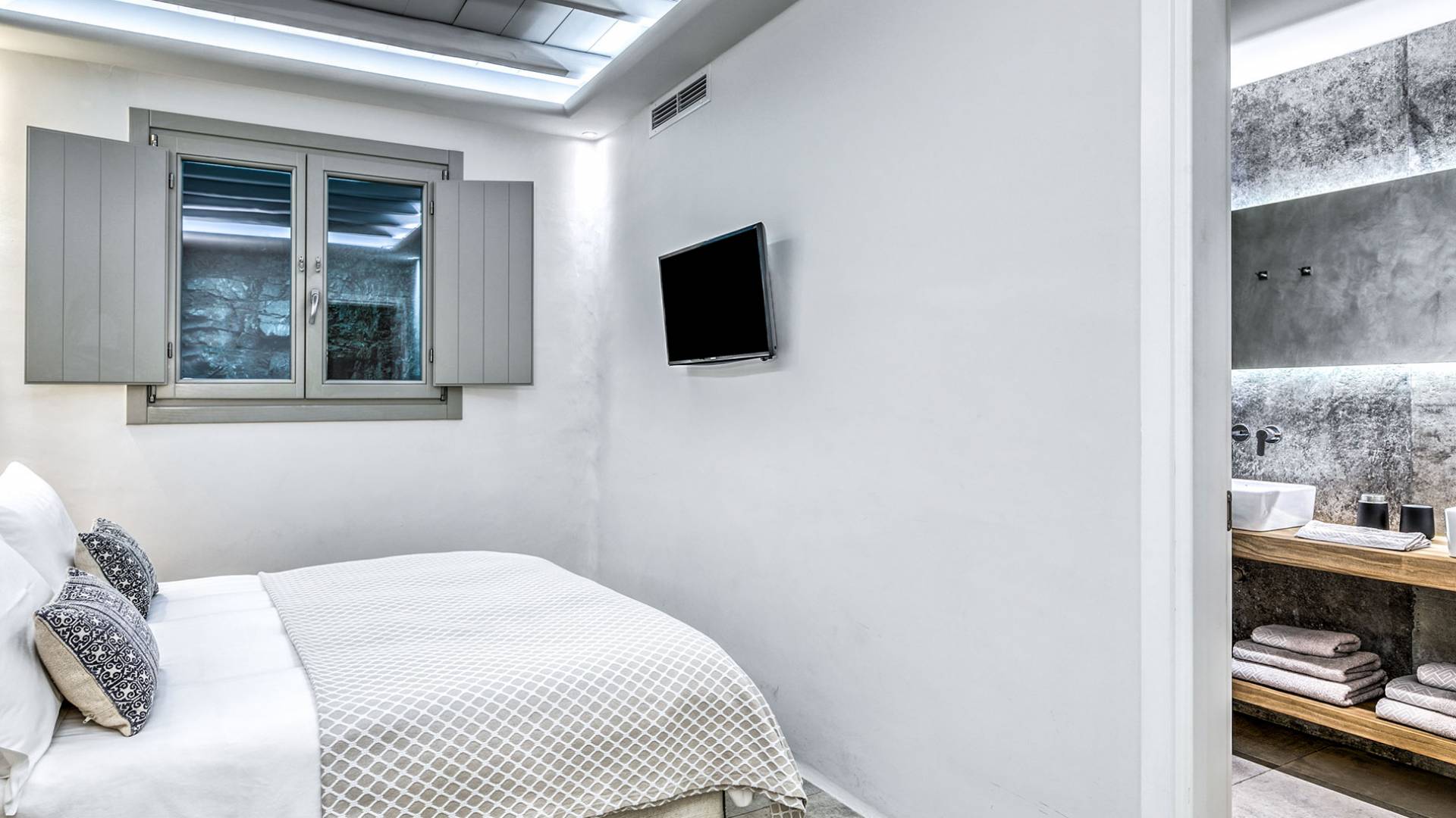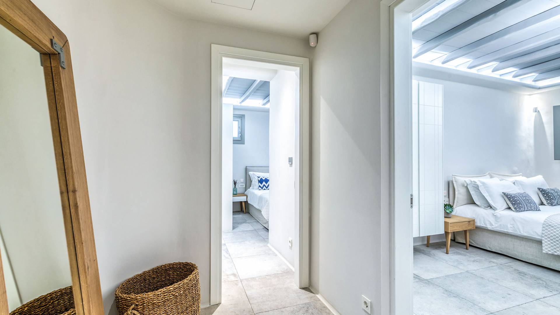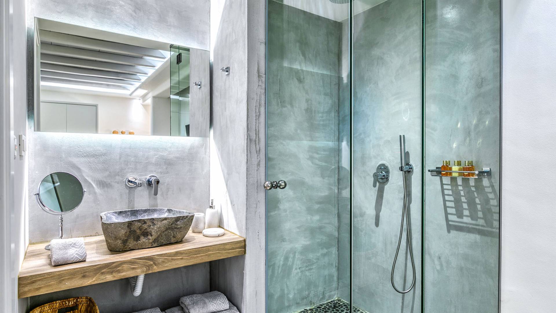 Sorgfältig entworfen, um vor dem berühmten "Meltemi" - dem starken Nordwind, der ein Markenzeichen der Insel ist - zu schützen, ist die 159 m² große M-Two Villa auf Mykonos ideal für Familien mit Kindern. Die Kleinen werden es lieben, in der offenen Wohn- und Essküche zu Abend zu essen, während sie ihren Lieblingsfilm sehen. Gleichzeitig genießen die Erwachsenen einen sternenklaren Grillabend im großzügigen Gastgarten und probieren lokale Köstlichkeiten. Der Aufenthalt in diesem wunderschönen Haus mit Blick auf die glitzernde mykonische Küste wird dazu beitragen, unvergessliche Erinnerungen zu schaffen… Die Annehmlichkeiten der Villa umfassen 2 Doppelzimmer mit eigenem Bad im Erdgeschoss, einen Wohnbereich, eine voll ausgestattete offene Küche und eine Toilette auf der Eingangsebene, und 2 Hauptschlafzimmer mit einem gemeinsamen Badezimmer im Obergeschoss. Draußen gibt es geräumige Ess- und Loungebereiche, einen Grill und einen privaten Whirlpool im Freien.