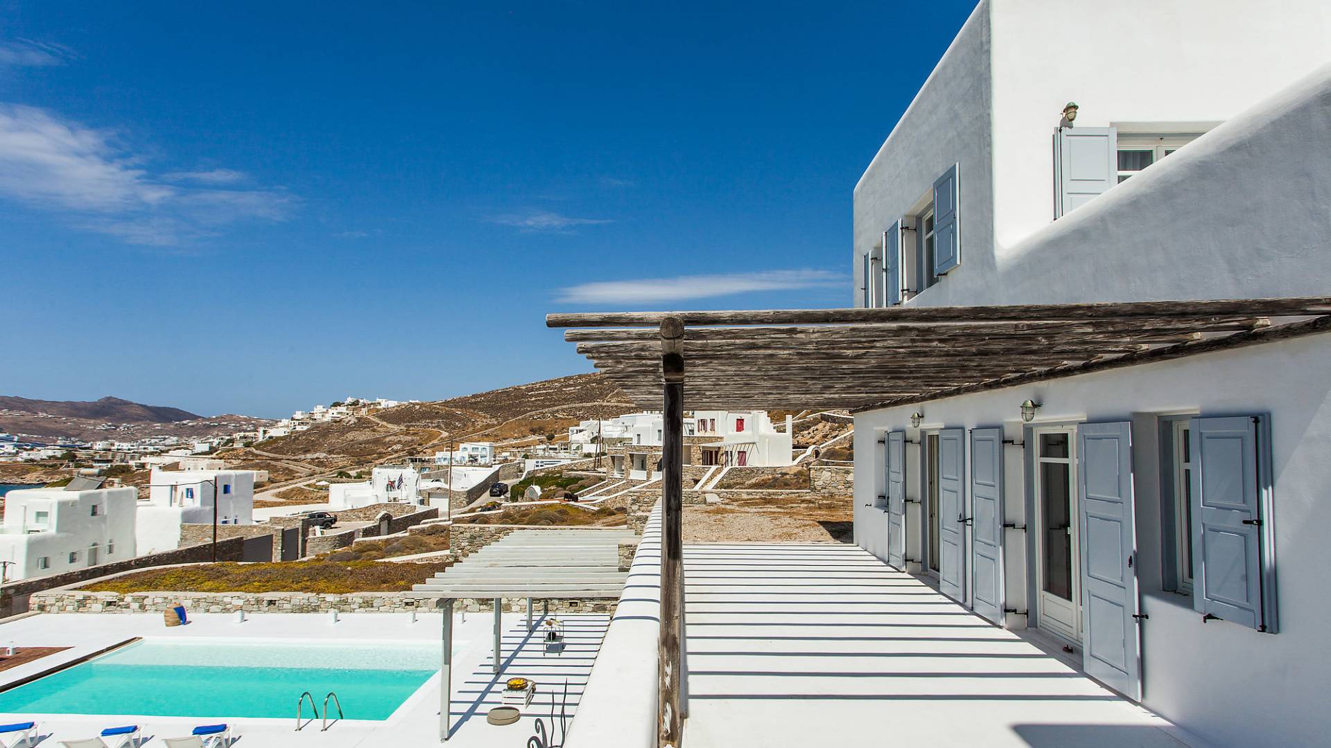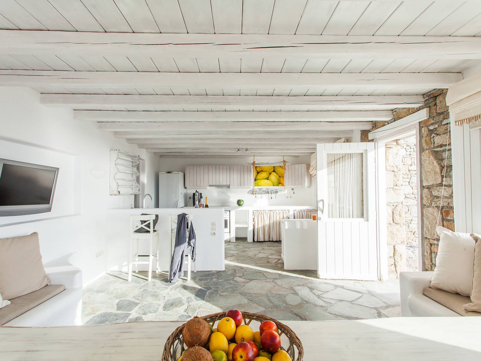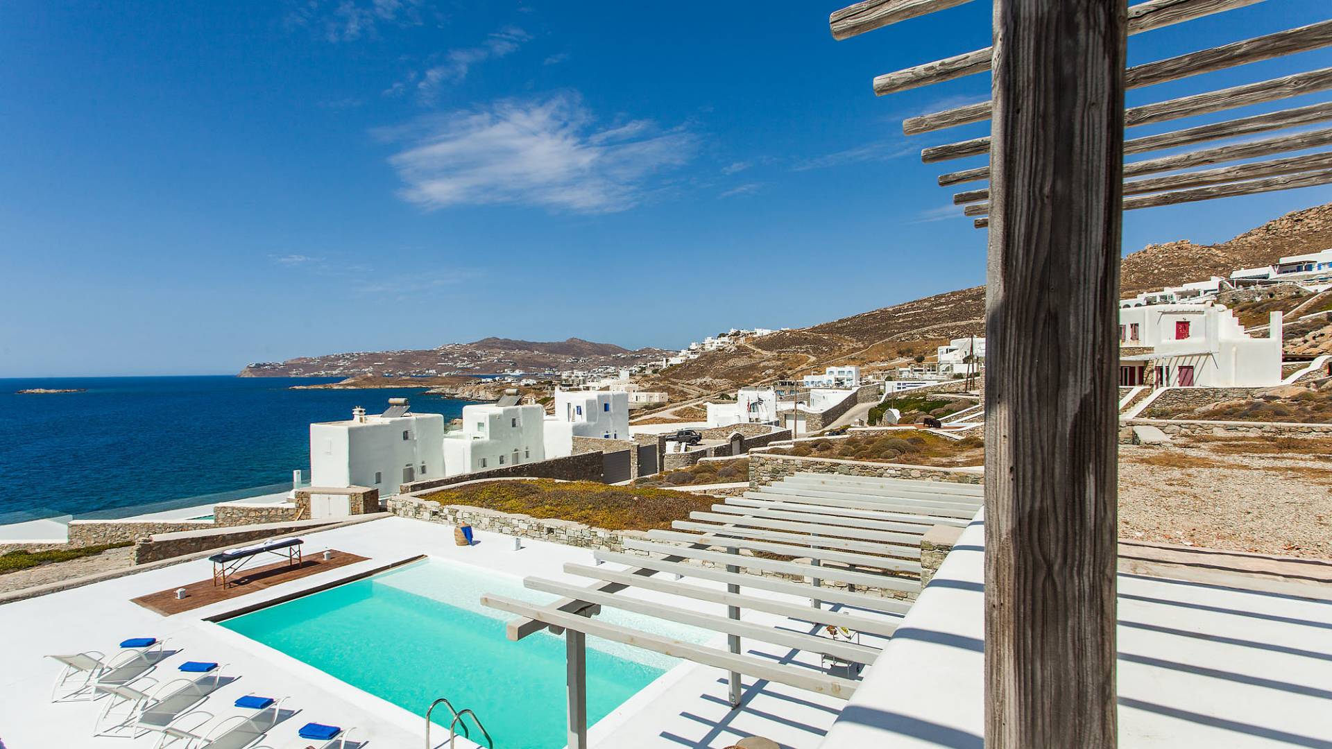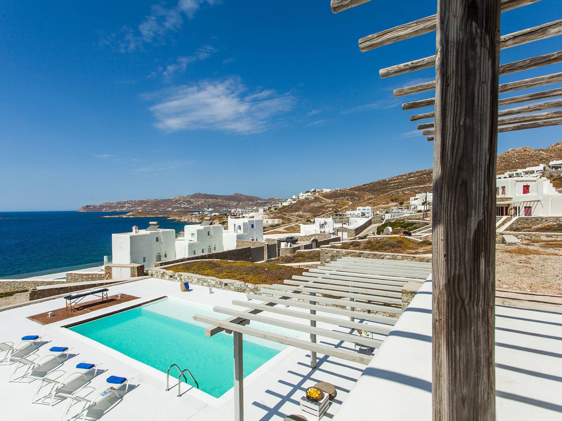 Das Anwesen verfügt über eine herrliche Lage an der Westküste von Mykonos, die einen unvergleichlichen Blick auf die Ägäis bietet, während es gleichzeitig nur eine kurze Autofahrt von der lebhaften Stadt Mykonos und einigen der berühmtesten Nachtclubs der Insel entfernt ist .