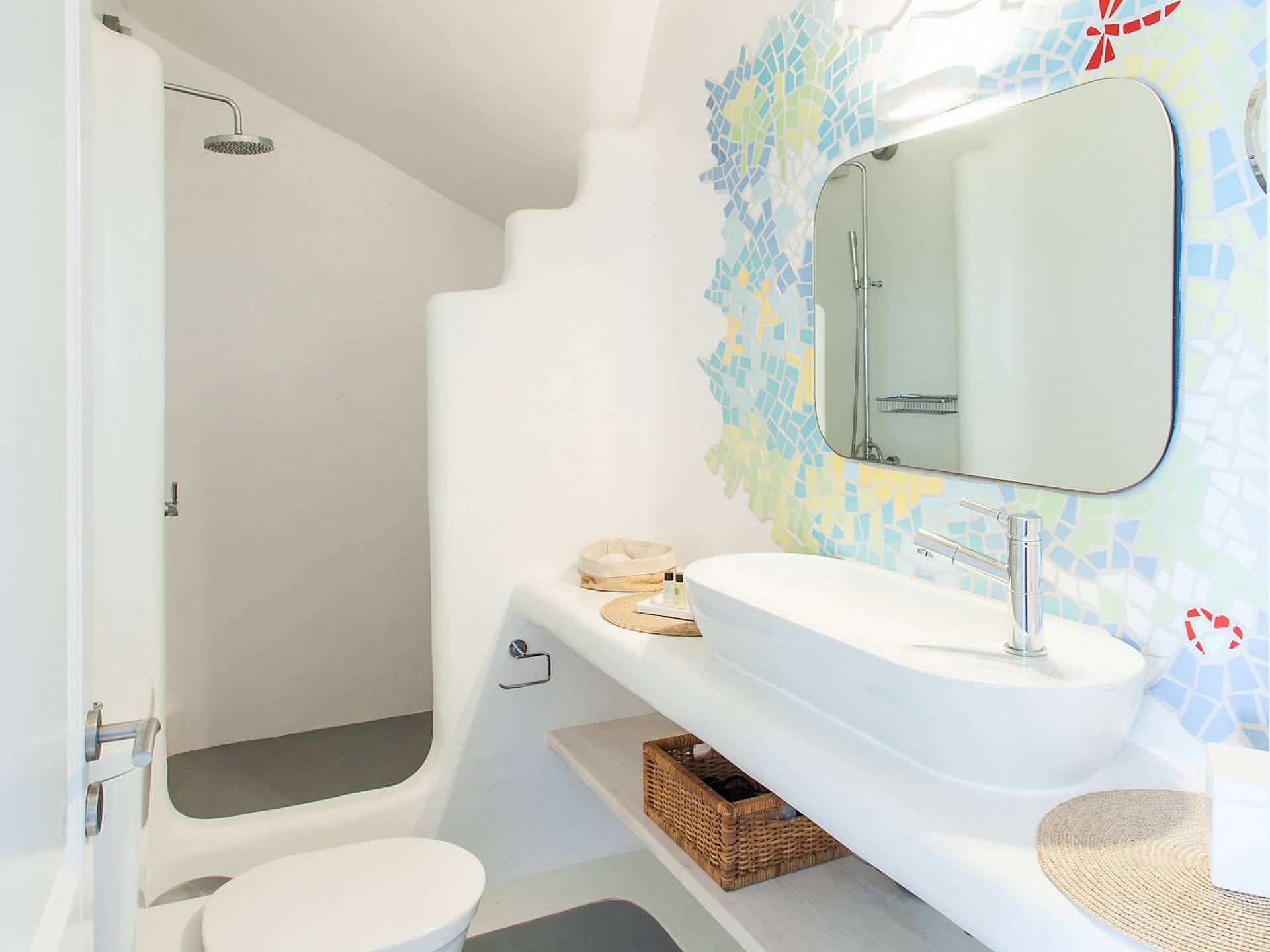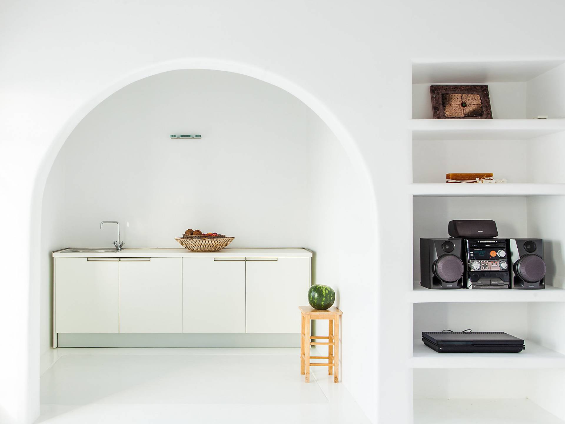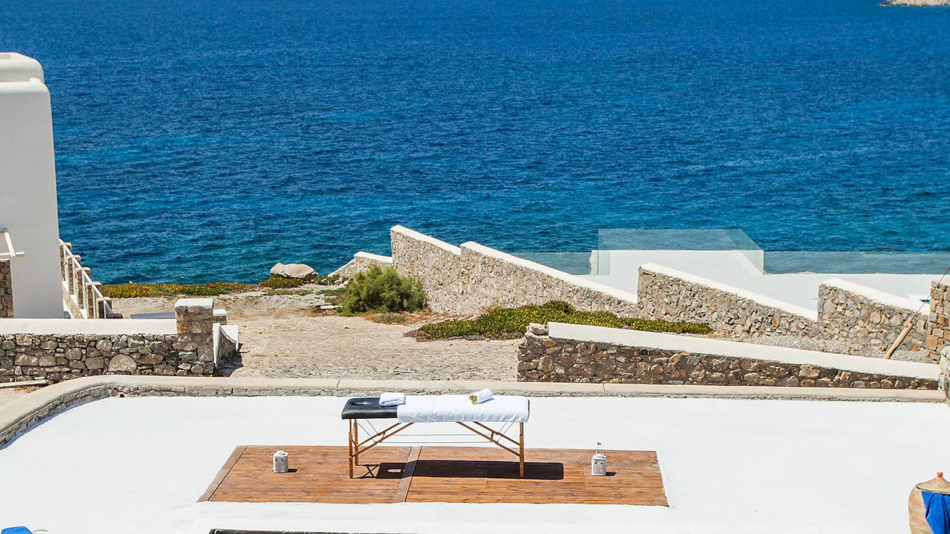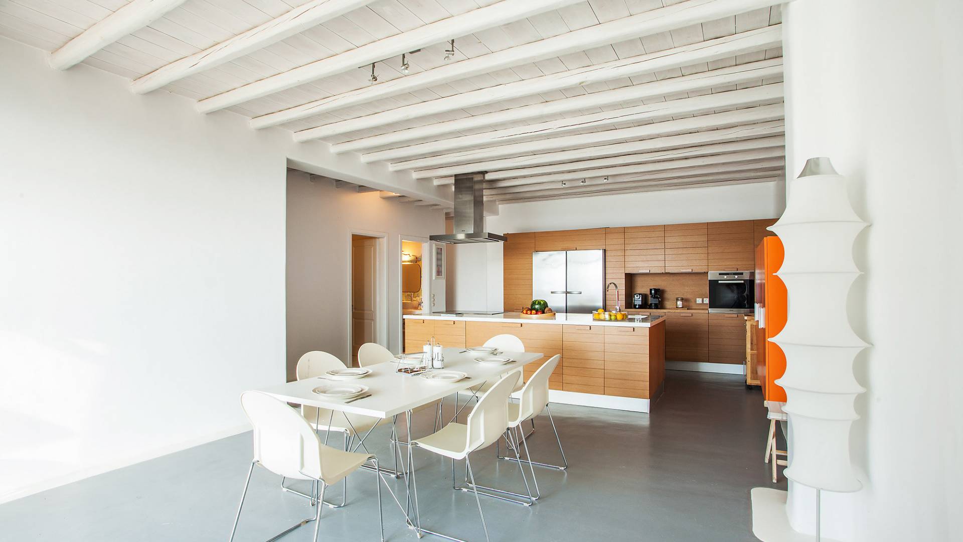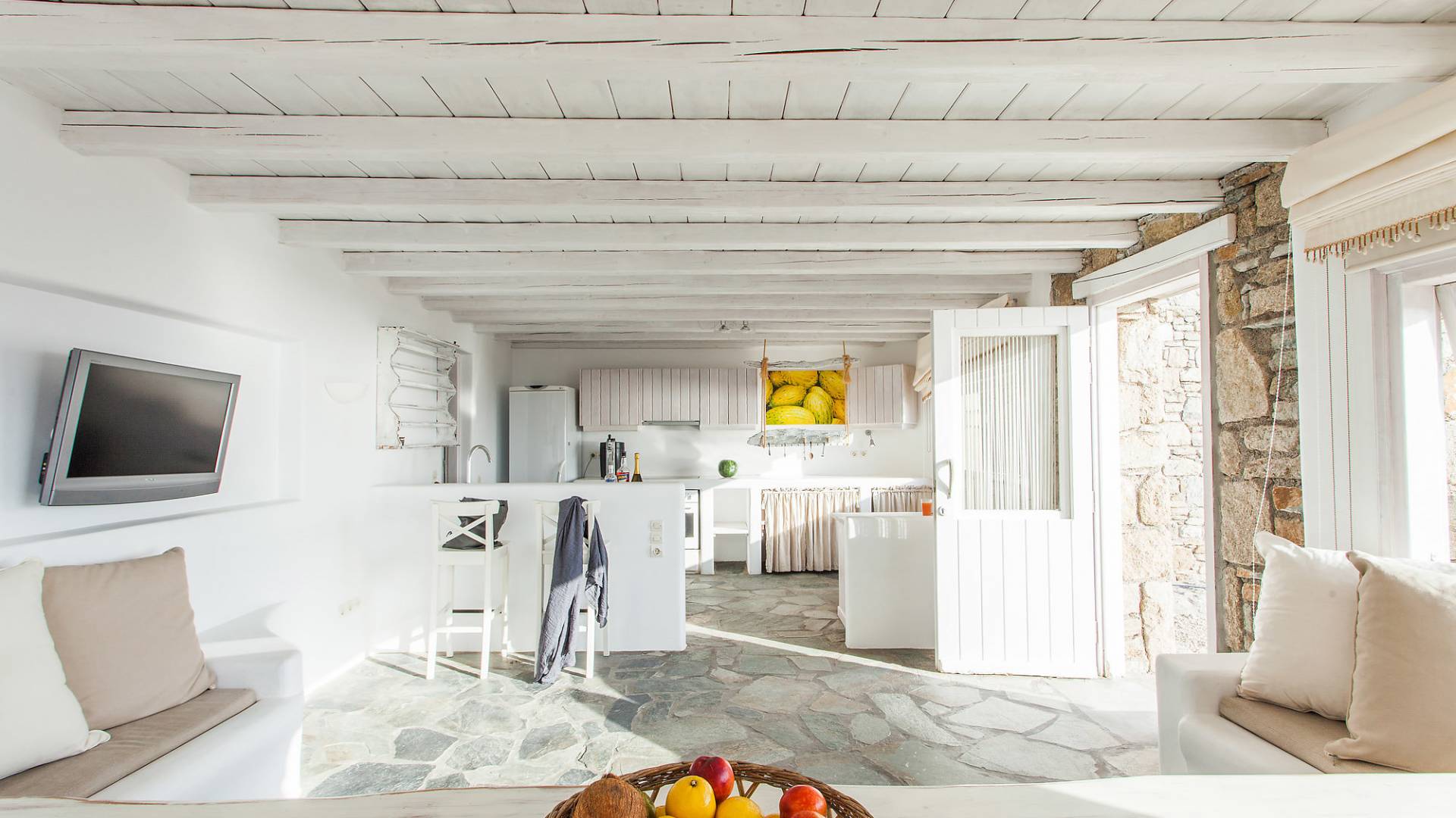 Das Anwesen verfügt über eine herrliche Lage an der Westküste von Mykonos, die einen unvergleichlichen Blick auf die Ägäis bietet, während es gleichzeitig nur eine kurze Autofahrt von der lebhaften Stadt Mykonos und einigen der berühmtesten Nachtclubs der Insel entfernt ist .