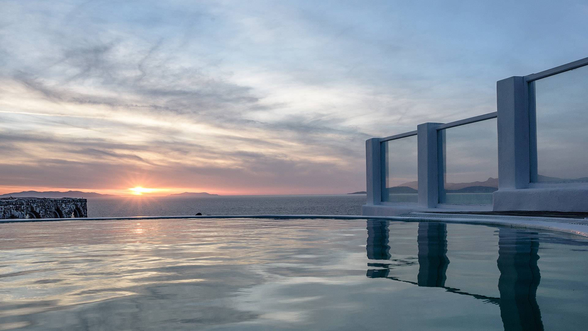 Mykonos Art Villas befindet sich im westlichen Teil der Insel, in Pouli (Ornos), mit herrlichem Blick auf die Ägäis, atemberaubende Sonnenuntergänge, Chora (Mykonos-Stadt) und 7 umliegende Inseln (Delos, Syros, Tinos, usw.).