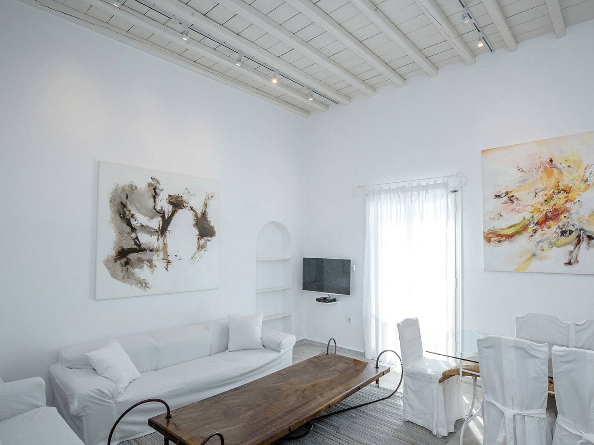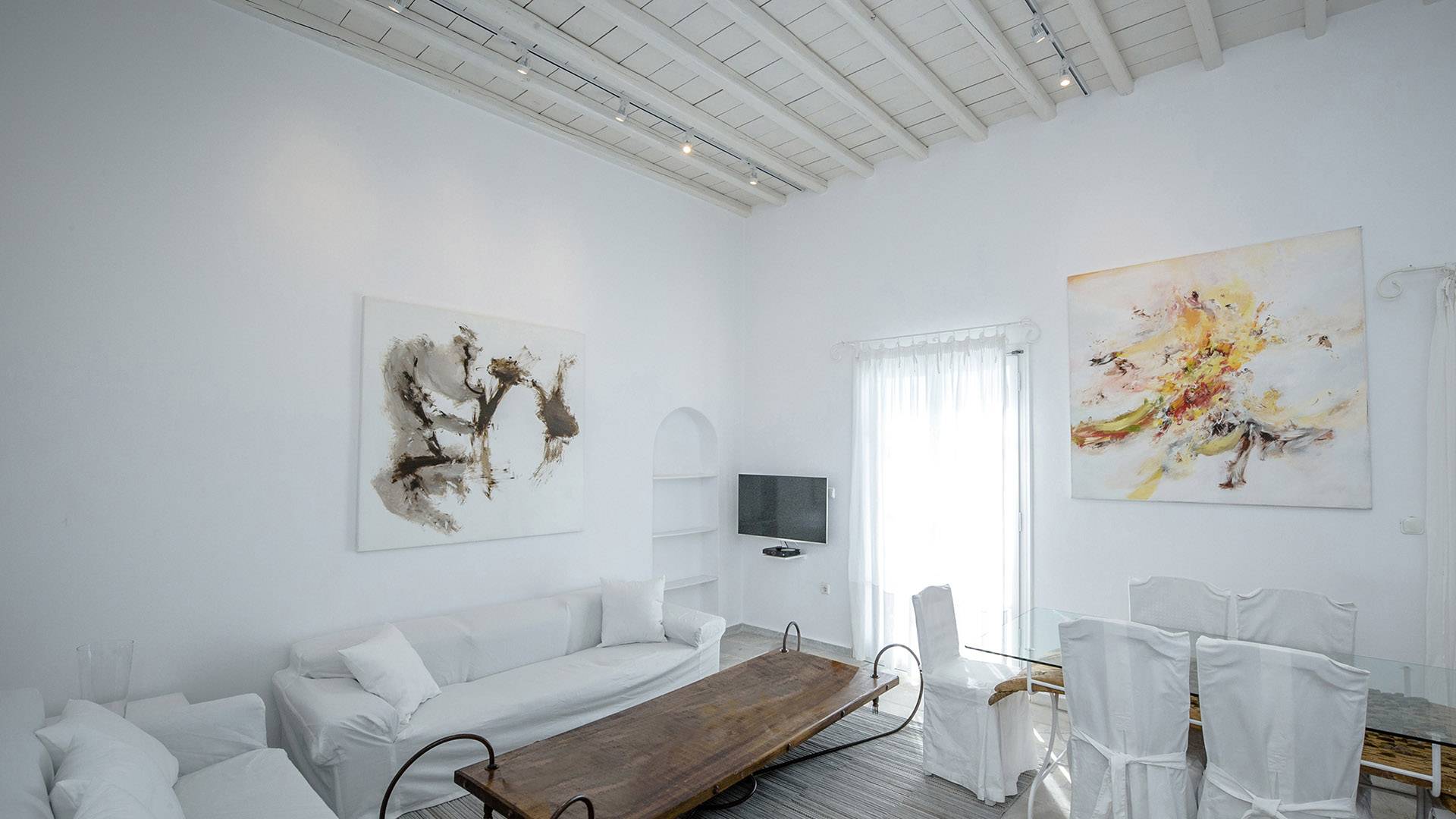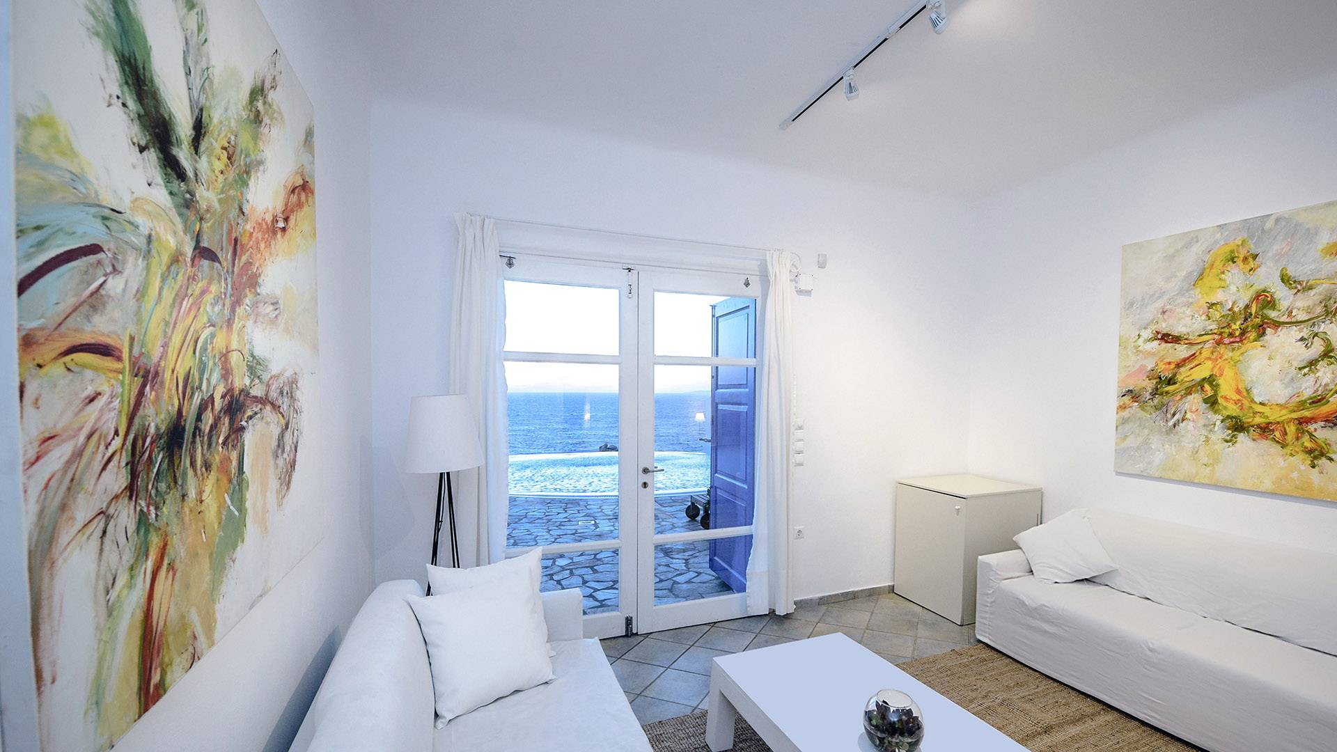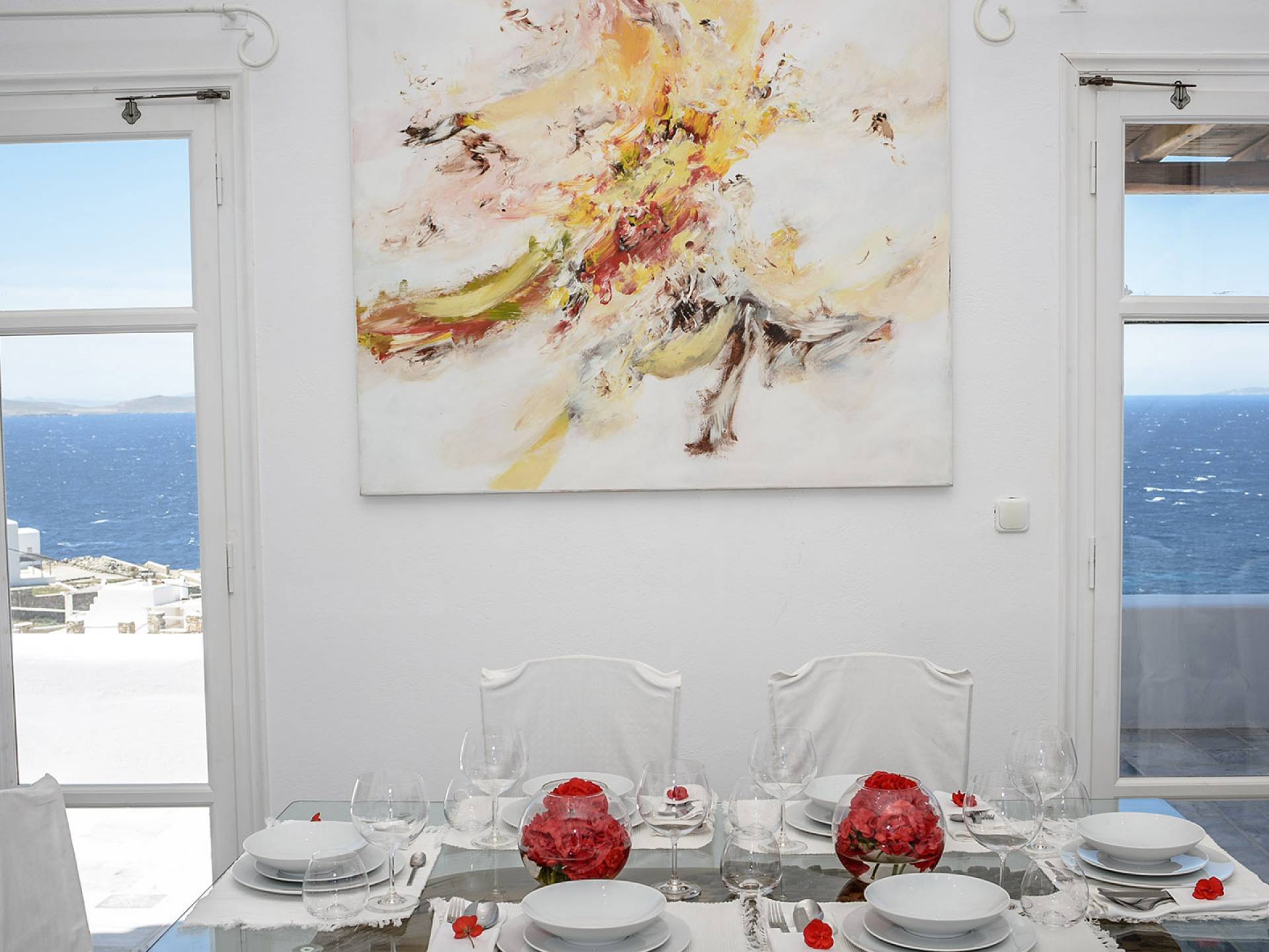 Mykonos Art Villa ist eine 200 m² große luxuriöse Residenz mit Originalgemälden in allen Zimmern und Lounges.