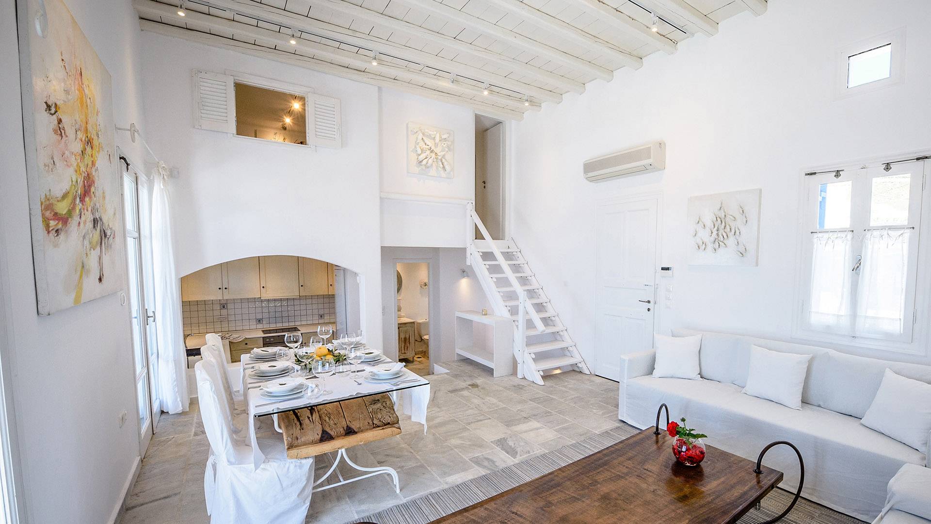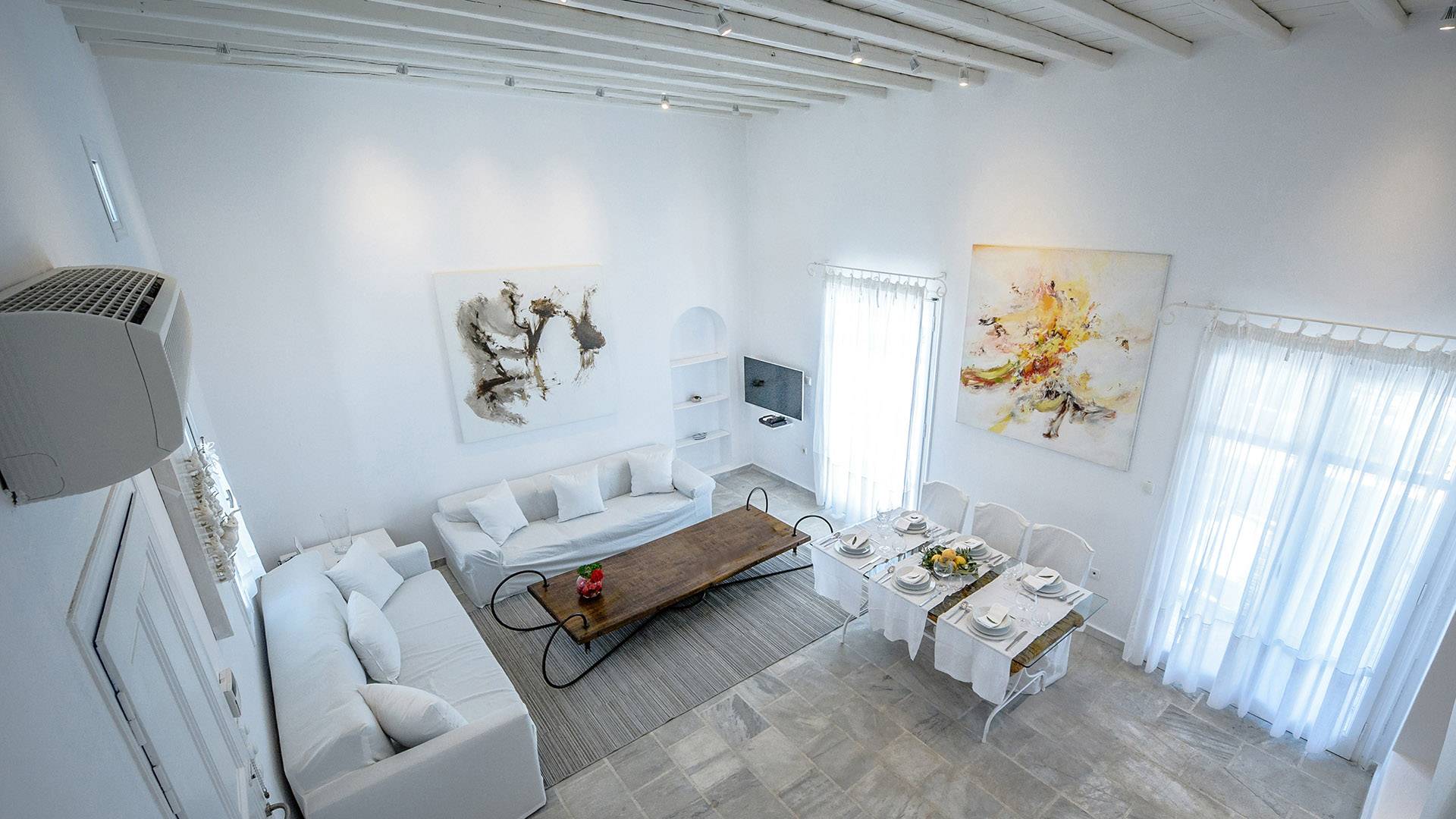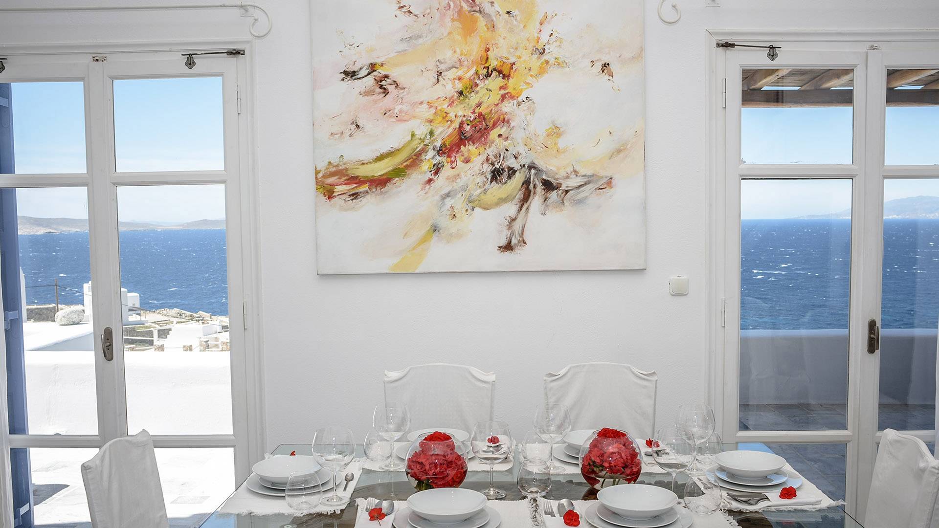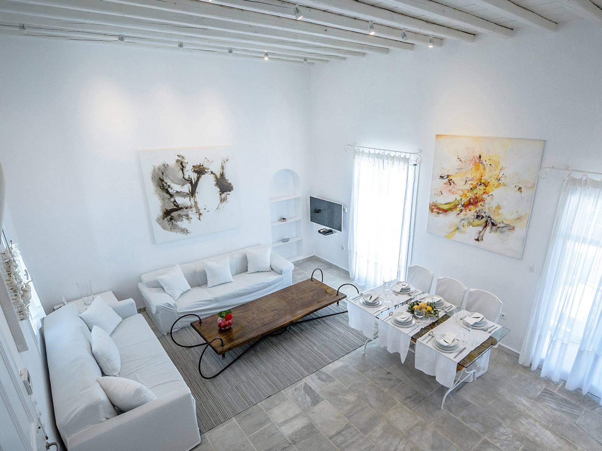 Mykonos Art Villa ist eine 200 m² große luxuriöse Residenz mit Originalgemälden in allen Zimmern und Lounges.