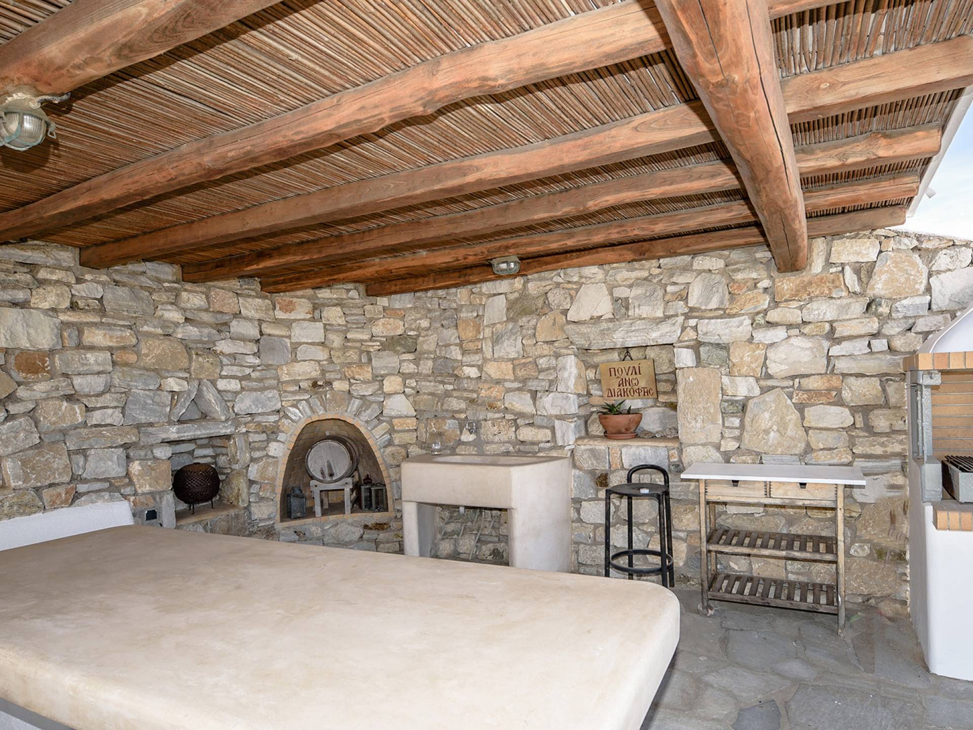 Die Villa besteht aus 2 Wohnzimmern und 5 Doppelzimmern. 4 Badezimmer, 2 Küchen, 6 Außensitzplätze (3 mit Pergolen), ein Grill, eine kleine Kirche und ein großer Swimmingpool. Von den 5 Schlafzimmern befinden sich 4 im 2-stöckigen Haupthaus und 1 ist autonom und unabhängig und befindet sich um den privaten Poolbereich.