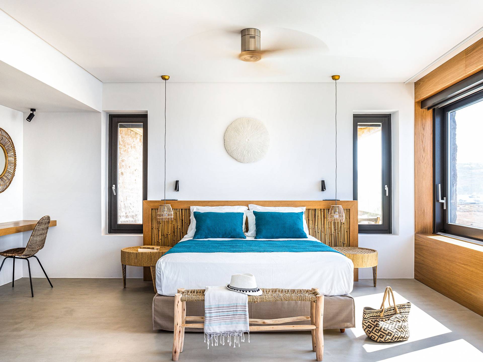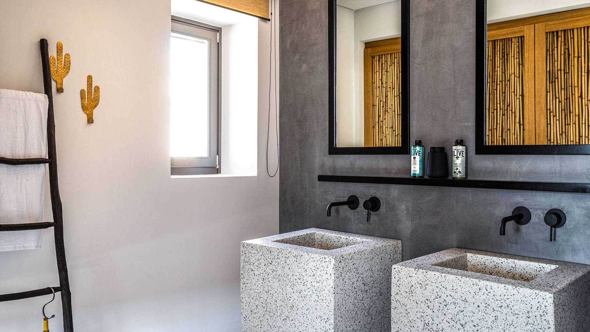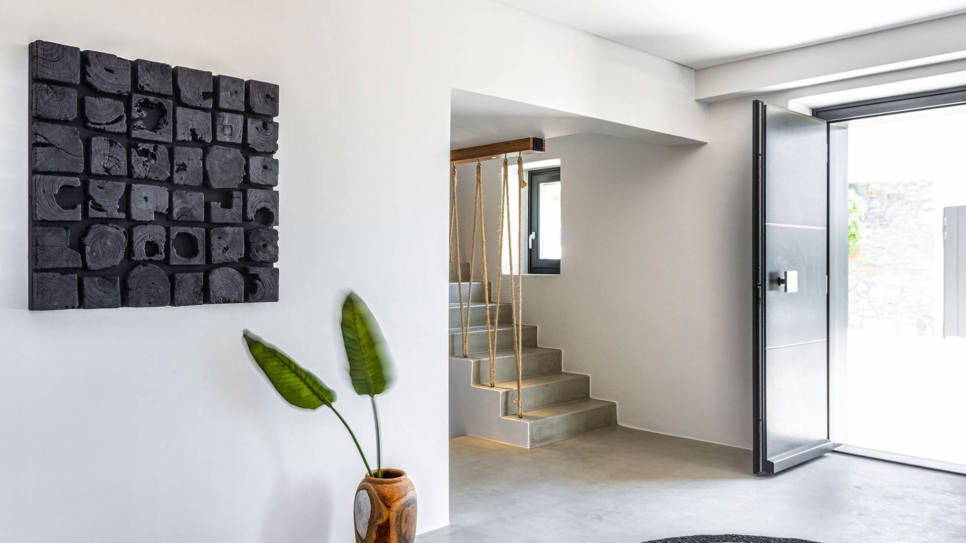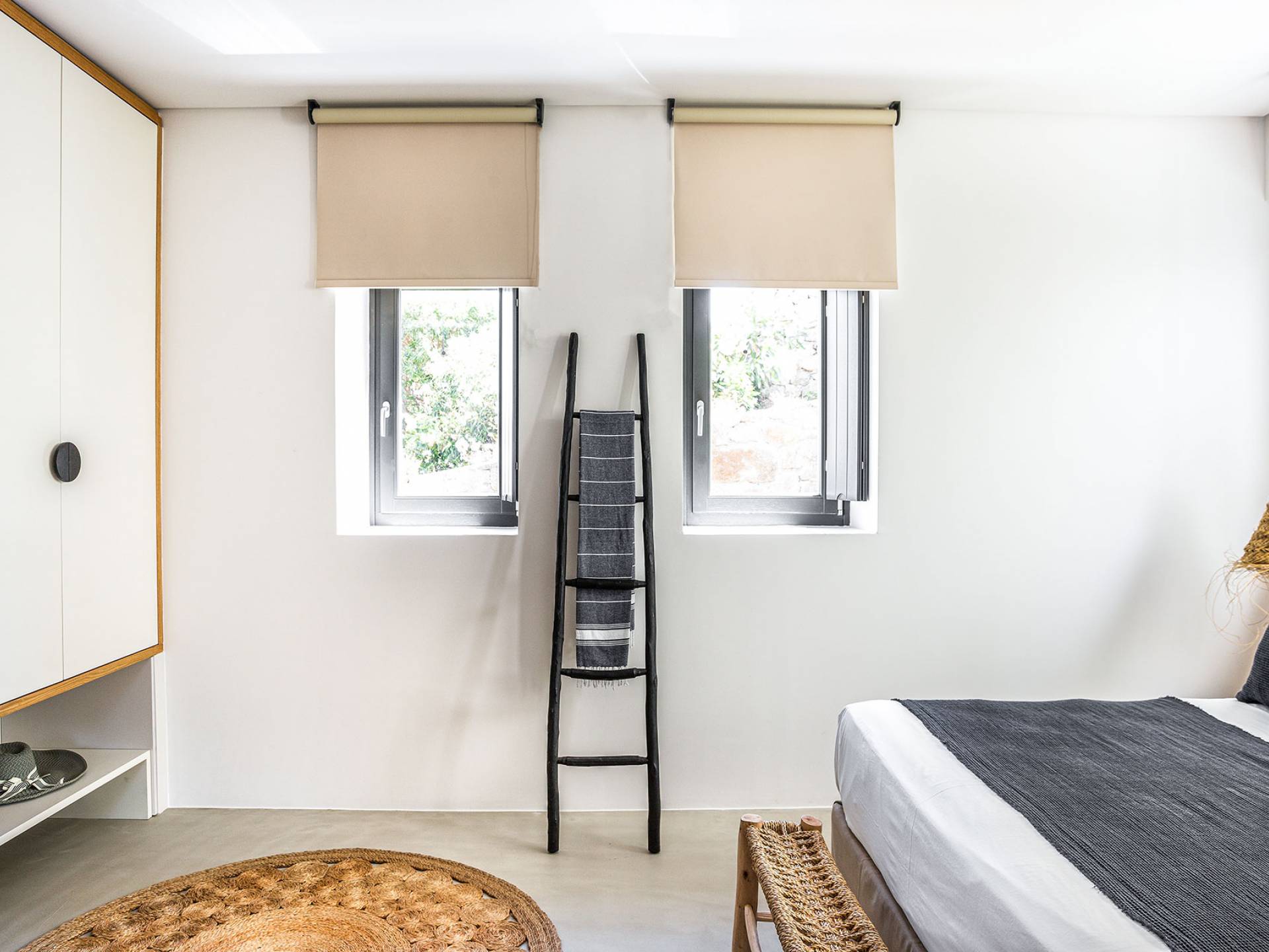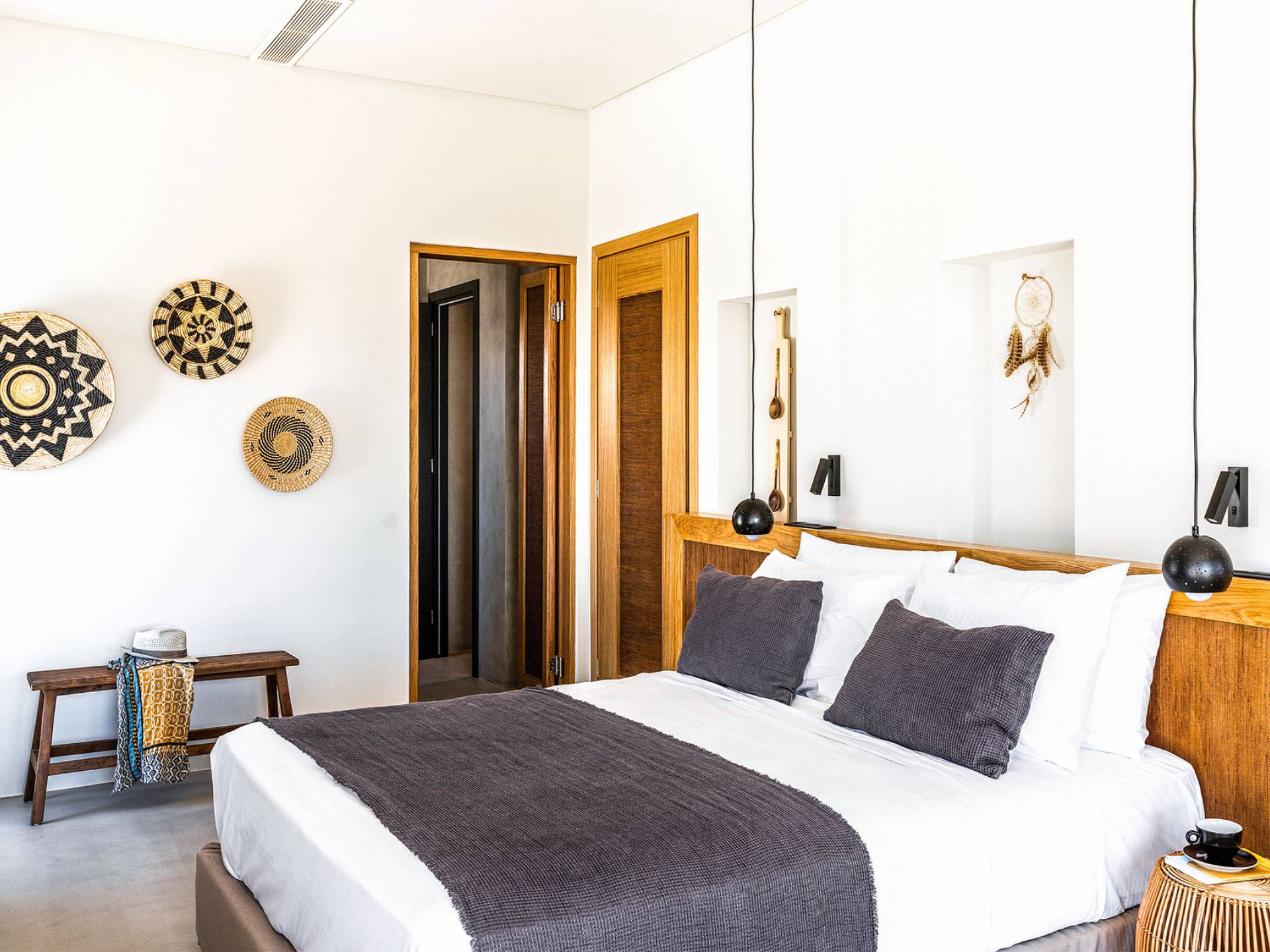 Das Erdgeschoss verfügt über ein geräumiges Wohnzimmer, das sich zum Hauptaußenbereich mit dem Pool und dem Essbereich im Freien öffnet, eine voll ausgestattete offene Küche, einen Essbereich, ein Gäste-WC und 3 Doppelzimmer mit Bad (außer welches als Zwilling eingestellt werden kann). Die erste Etage verfügt über die zweite offene Küche und 2 Doppelzimmer mit Bad, von denen eines ein Masterzimmer mit Panoramablick auf das Meer ist. Beide Schlafzimmer öffnen sich zur Terrasse im ersten Stock mit eingebauten Loungebereichen und der Feuerstelle.