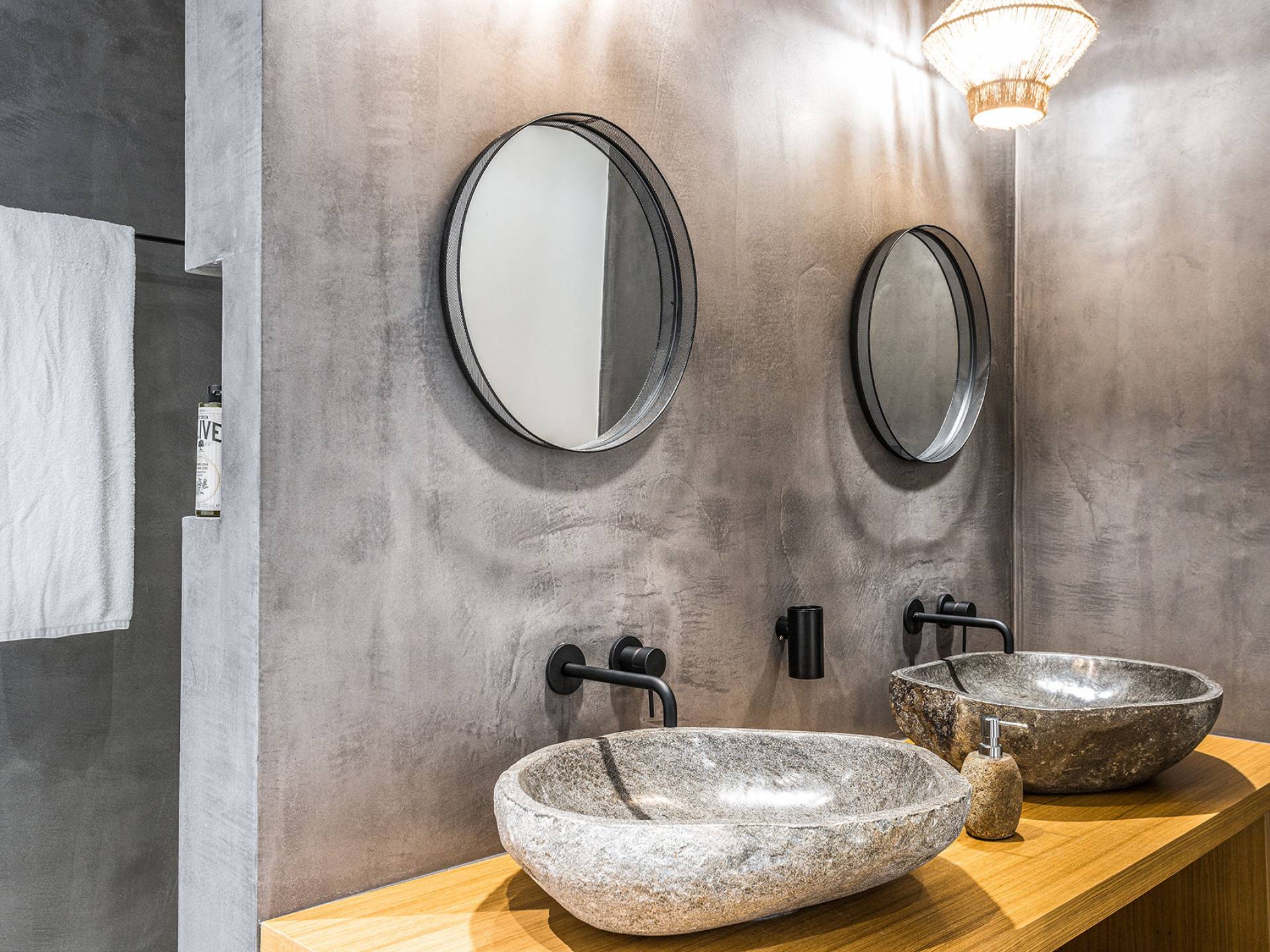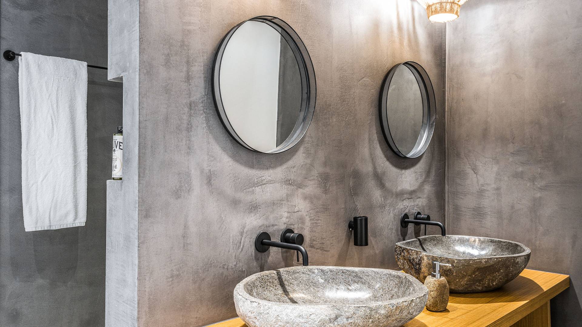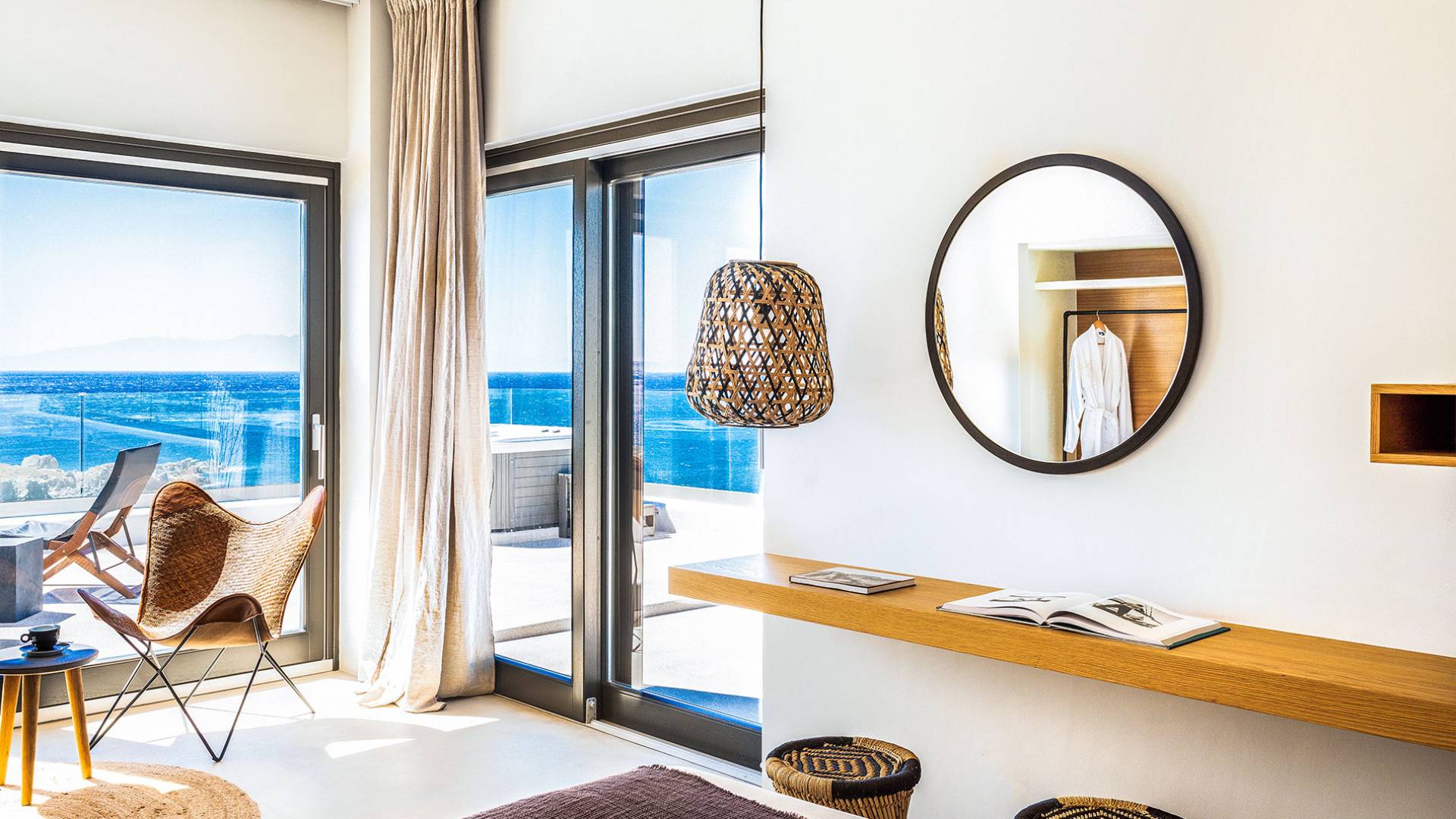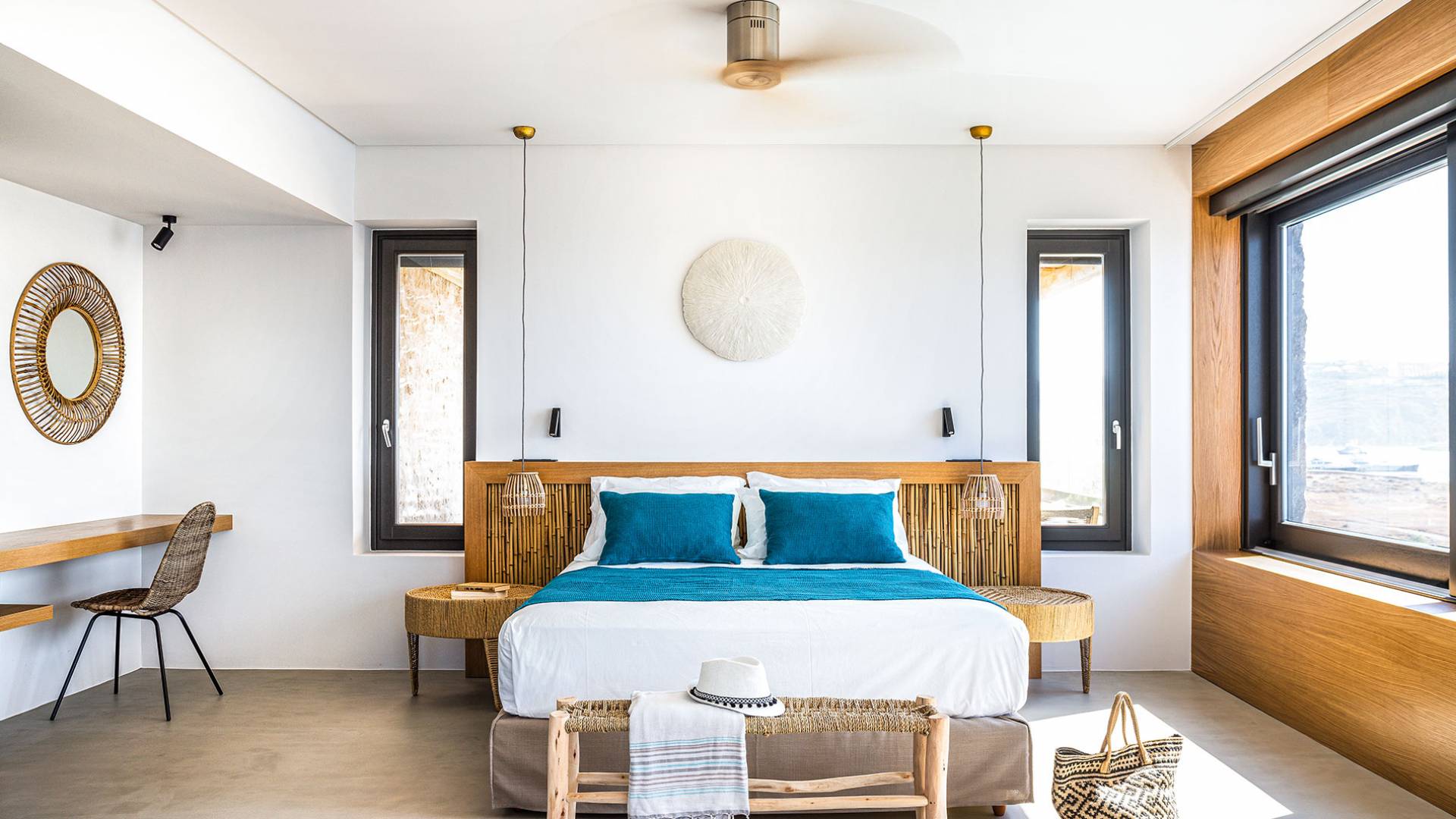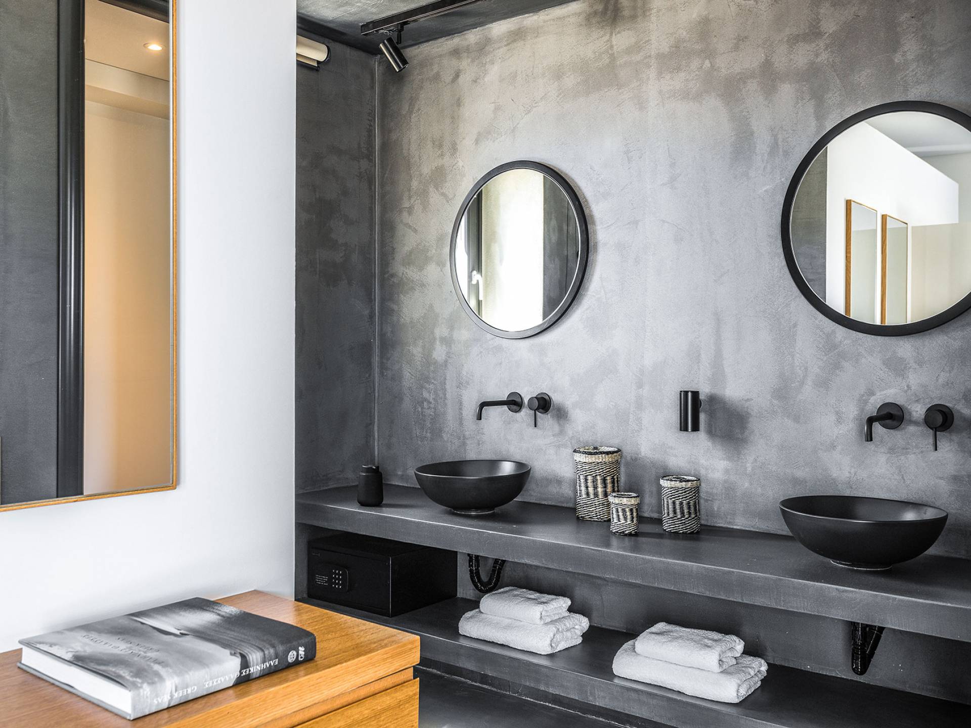 Das Erdgeschoss verfügt über ein geräumiges Wohnzimmer, das sich zum Hauptaußenbereich mit dem Pool und dem Essbereich im Freien öffnet, eine voll ausgestattete offene Küche, einen Essbereich, ein Gäste-WC und 3 Doppelzimmer mit Bad (außer welches als Zwilling eingestellt werden kann). Die erste Etage verfügt über die zweite offene Küche und 2 Doppelzimmer mit Bad, von denen eines ein Masterzimmer mit Panoramablick auf das Meer ist. Beide Schlafzimmer öffnen sich zur Terrasse im ersten Stock mit eingebauten Loungebereichen und der Feuerstelle.