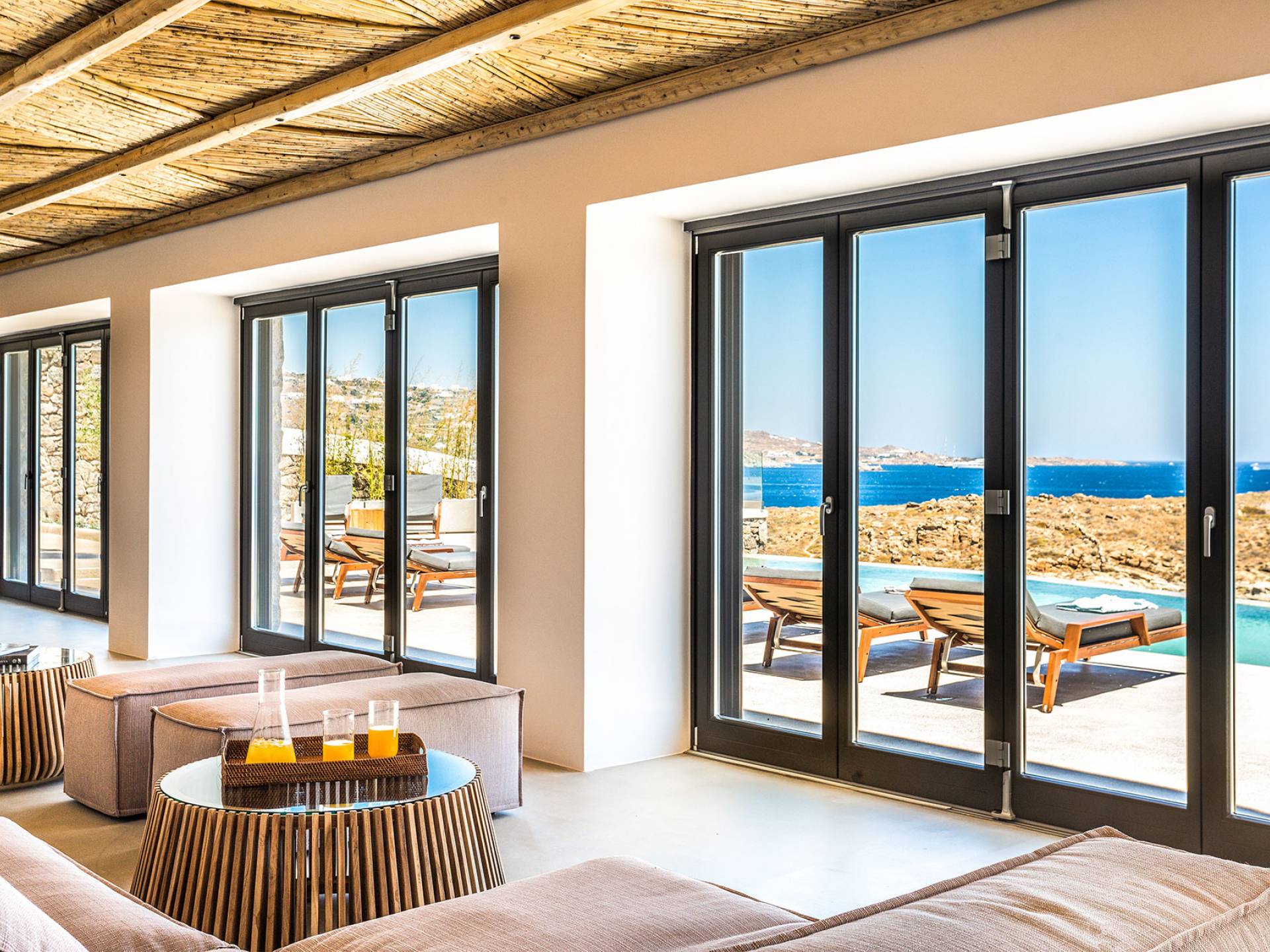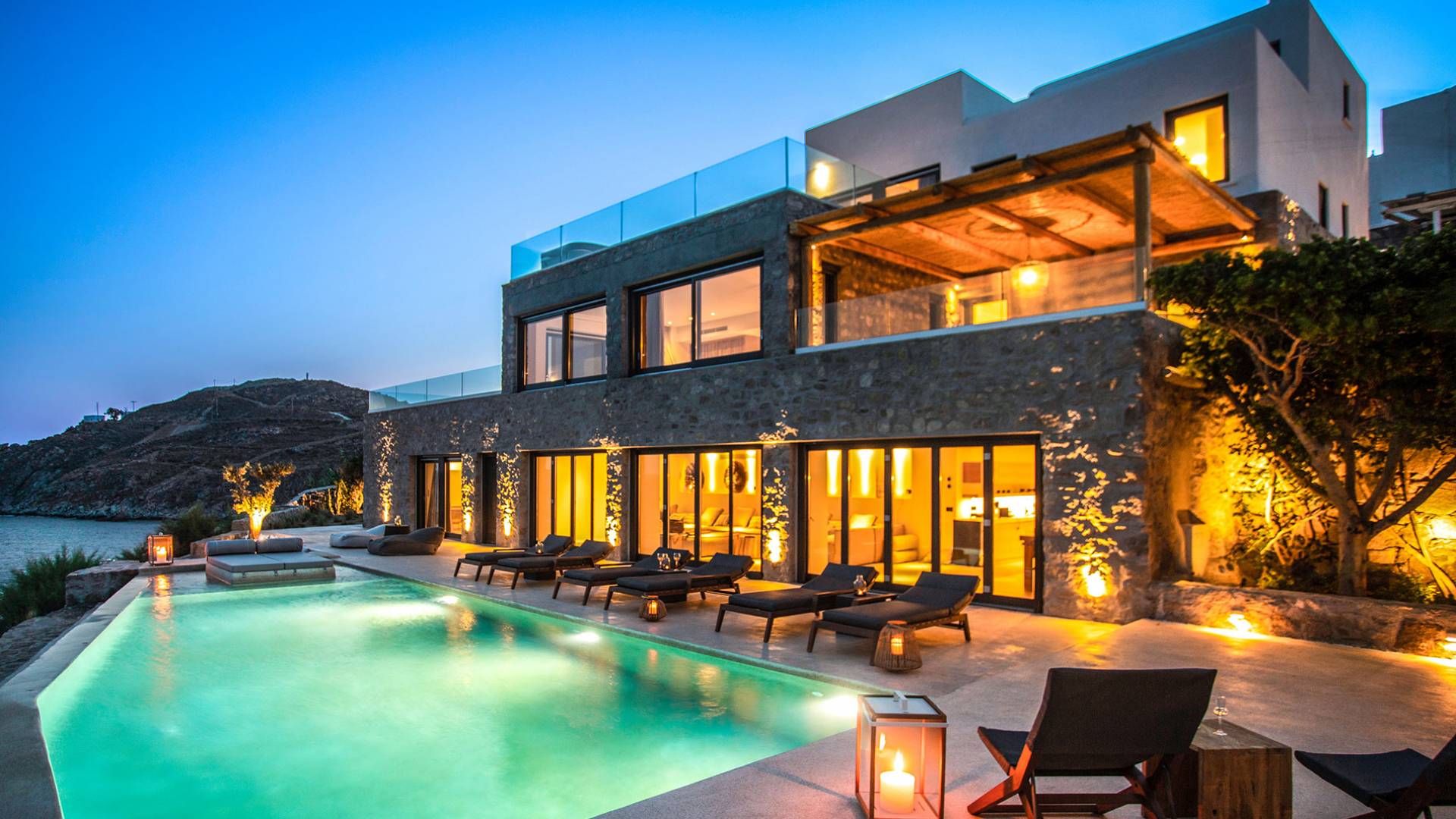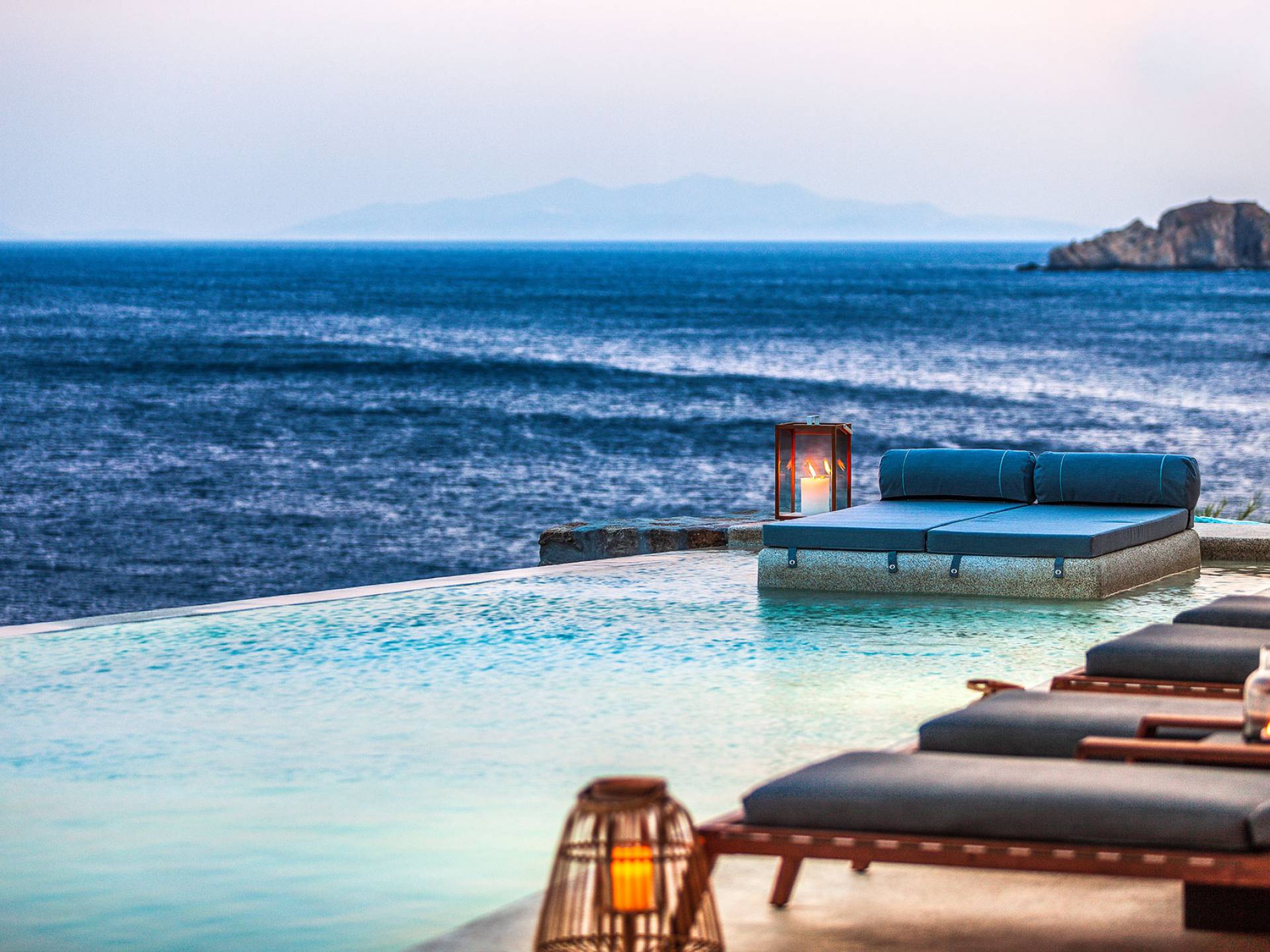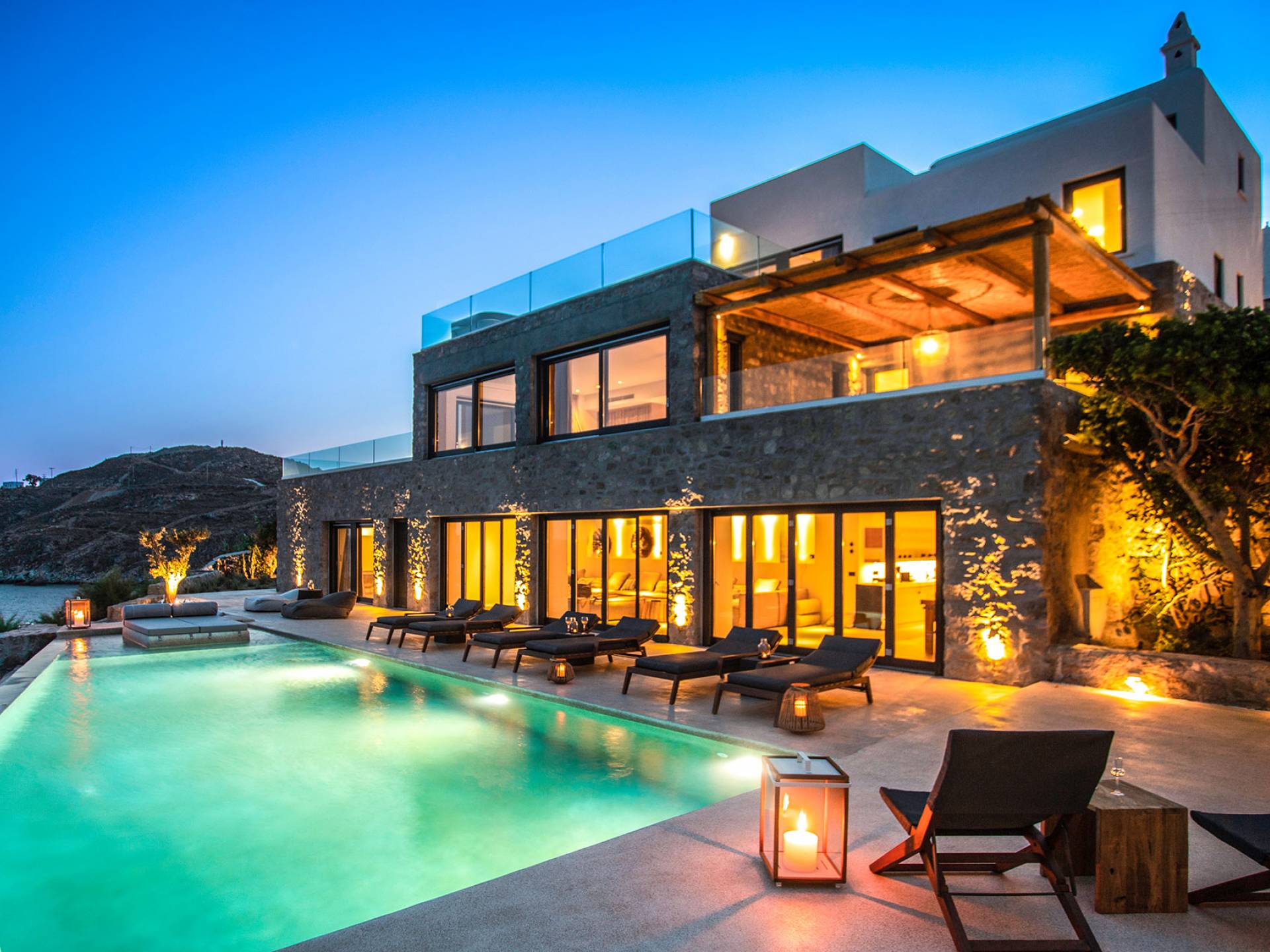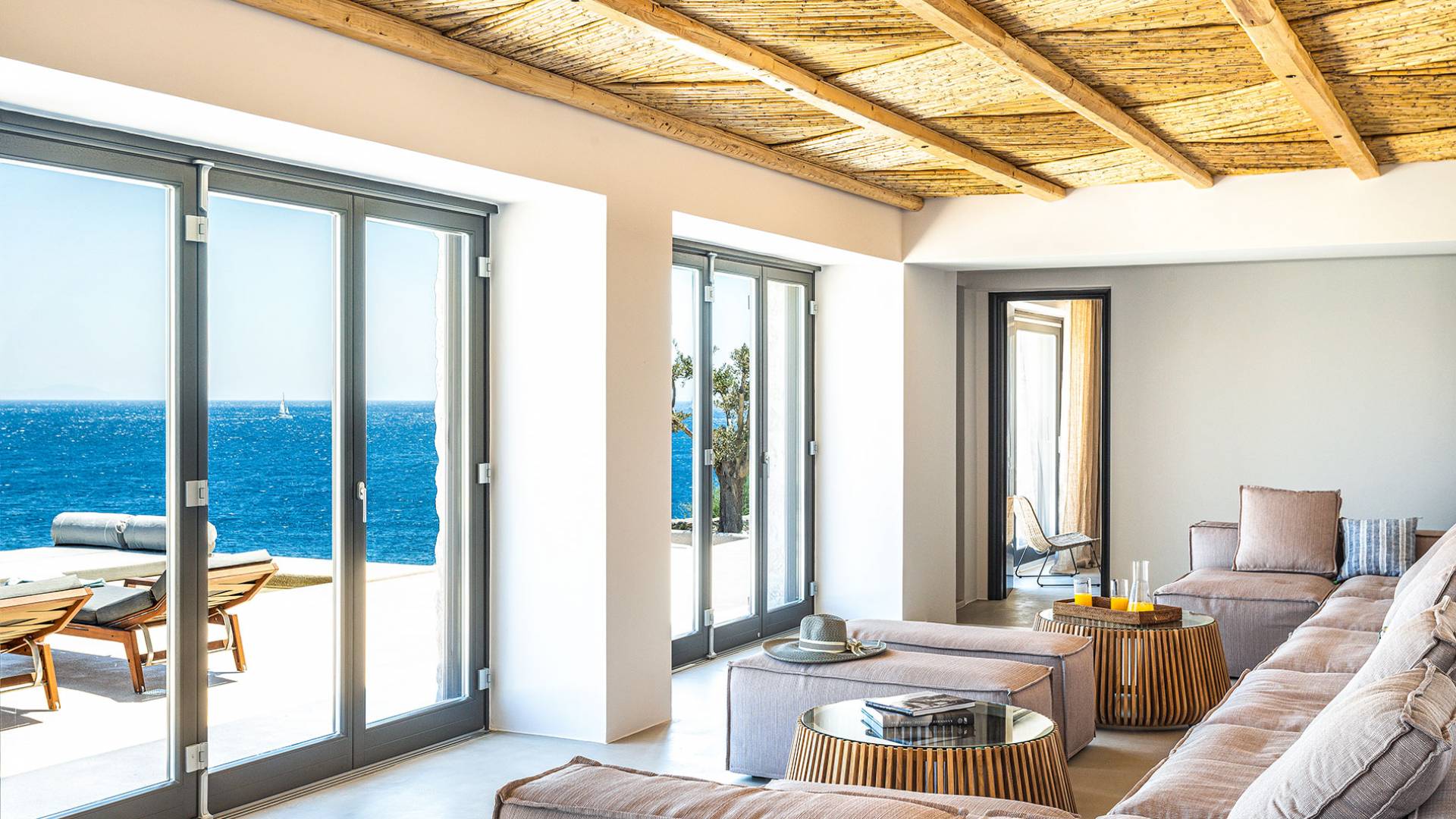 Villa Cascade Mykonos ist eine Luxusvilla mit 6 Schlafzimmern und einem privaten Pool. Die Villa Cascade ist ein brandneues Anwesen am Wasser in Aleomandra mit atemberaubendem, unverbaubarem Meerblick, das am Rand einer felsigen Küste an einem windgeschützten Ort direkt über den Gewässern der Ägäis erbaut wurde.