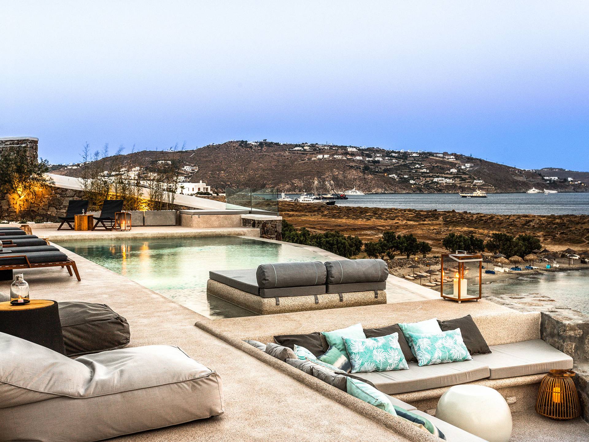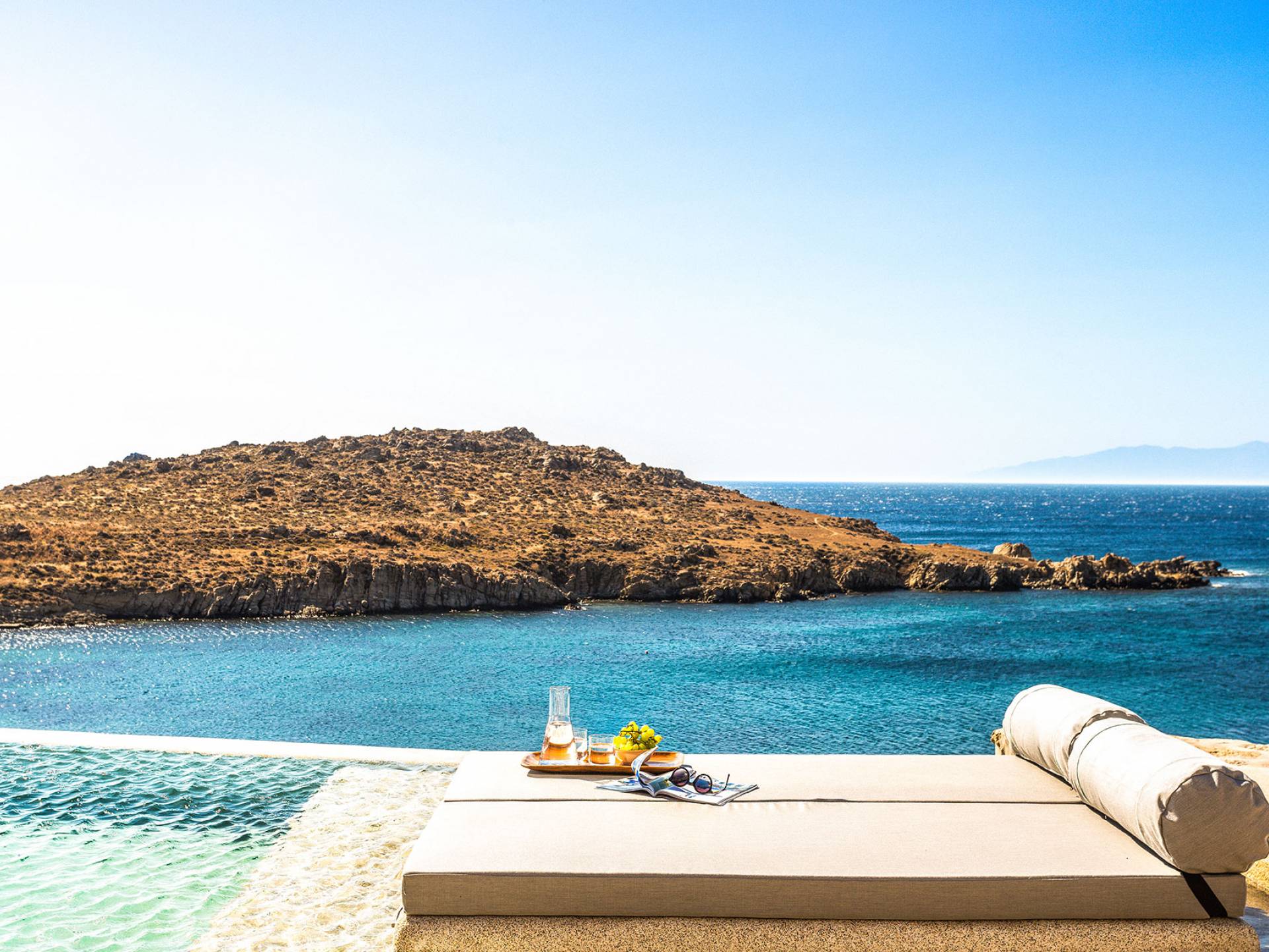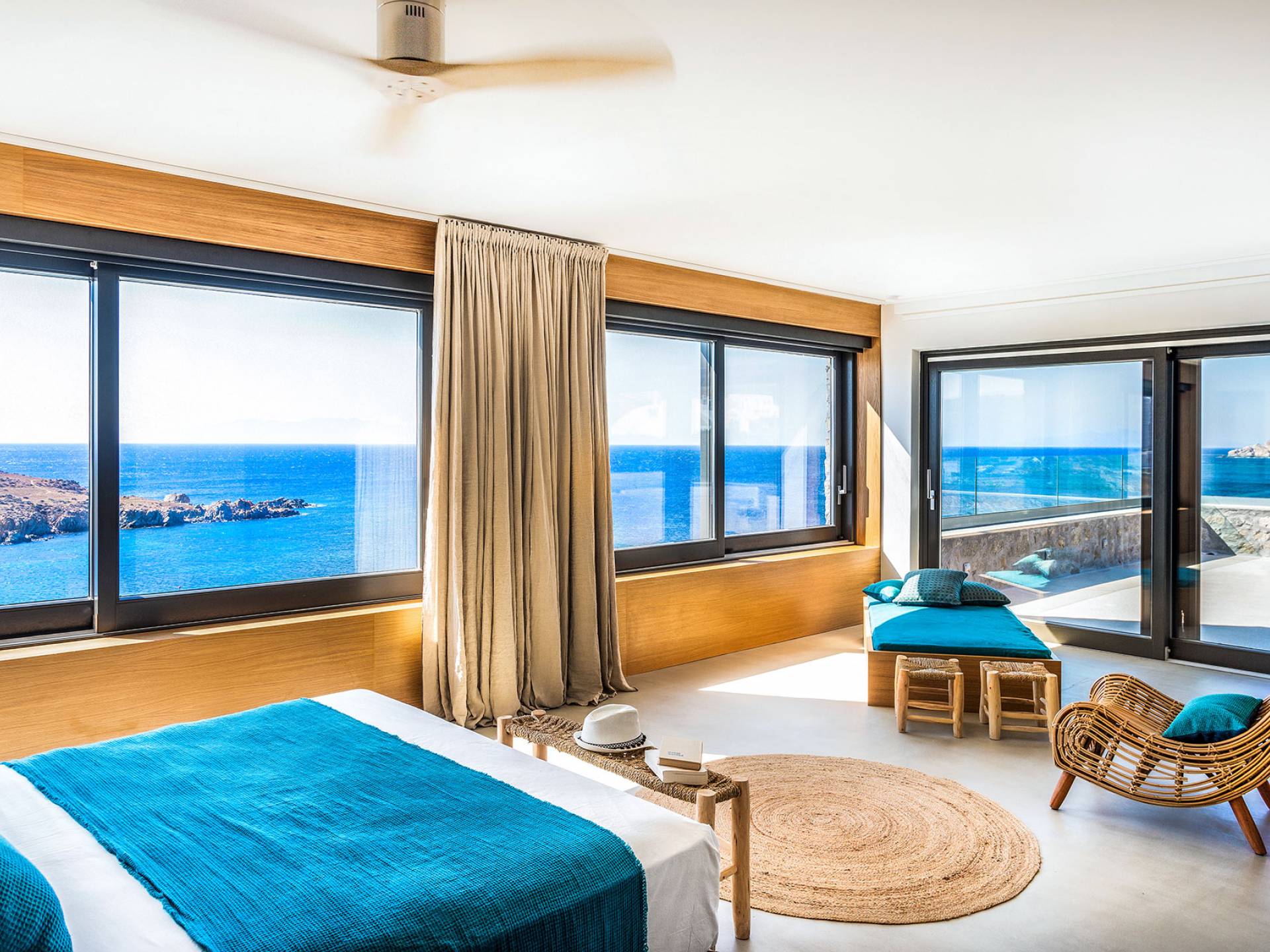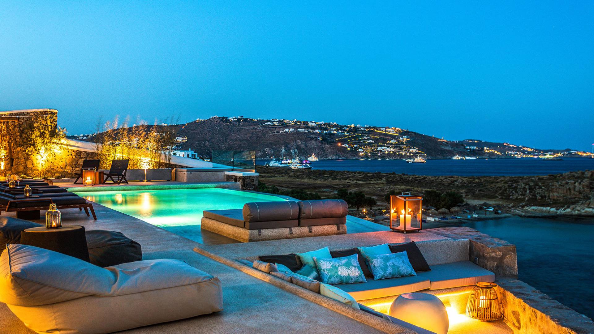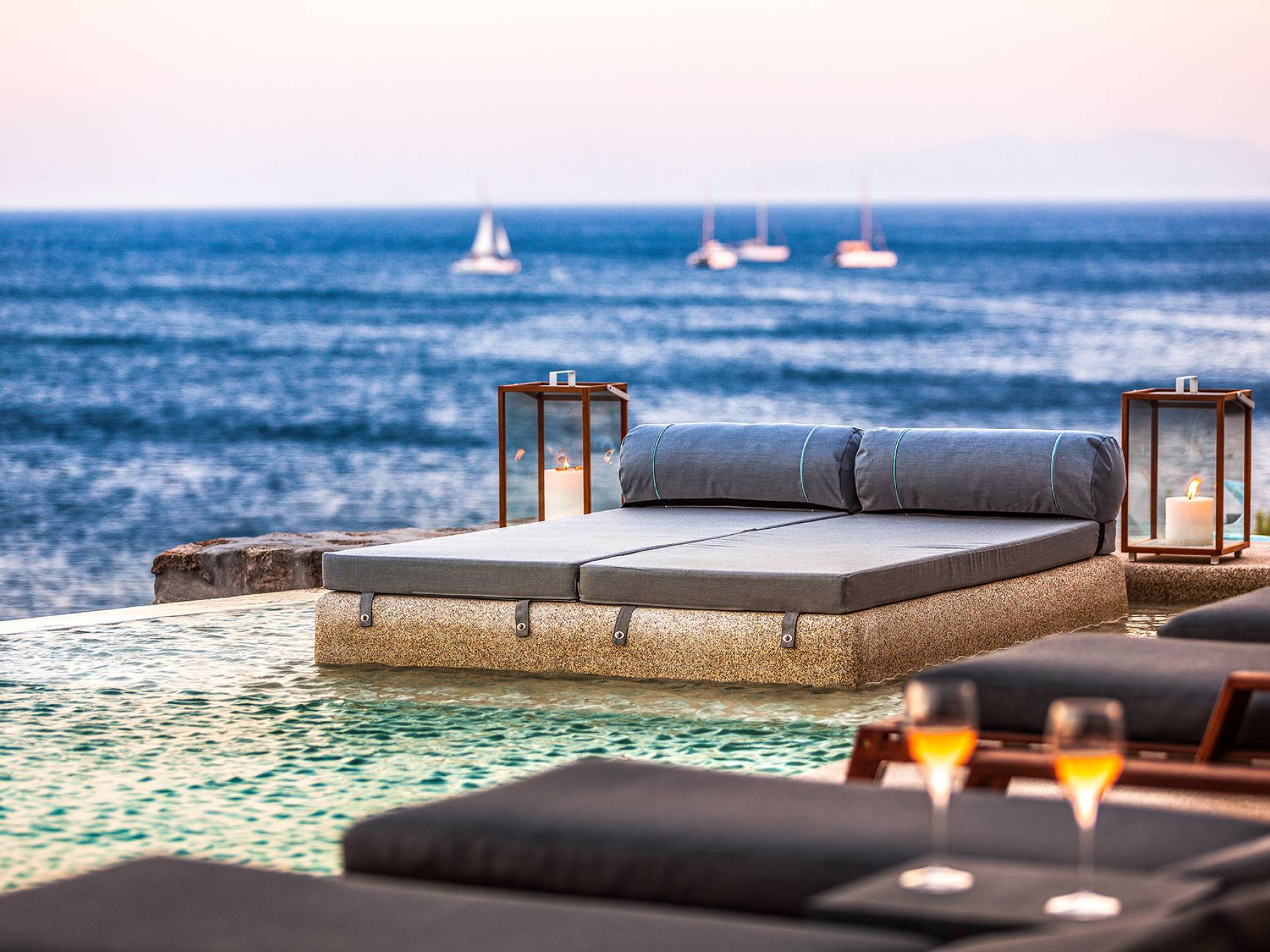 Villa Cascade Mykonos ist eine Luxusvilla mit 6 Schlafzimmern und einem privaten Pool. Die Villa Cascade ist ein brandneues Anwesen am Wasser in Aleomandra mit atemberaubendem, unverbaubarem Meerblick, das am Rand einer felsigen Küste an einem windgeschützten Ort direkt über den Gewässern der Ägäis erbaut wurde.