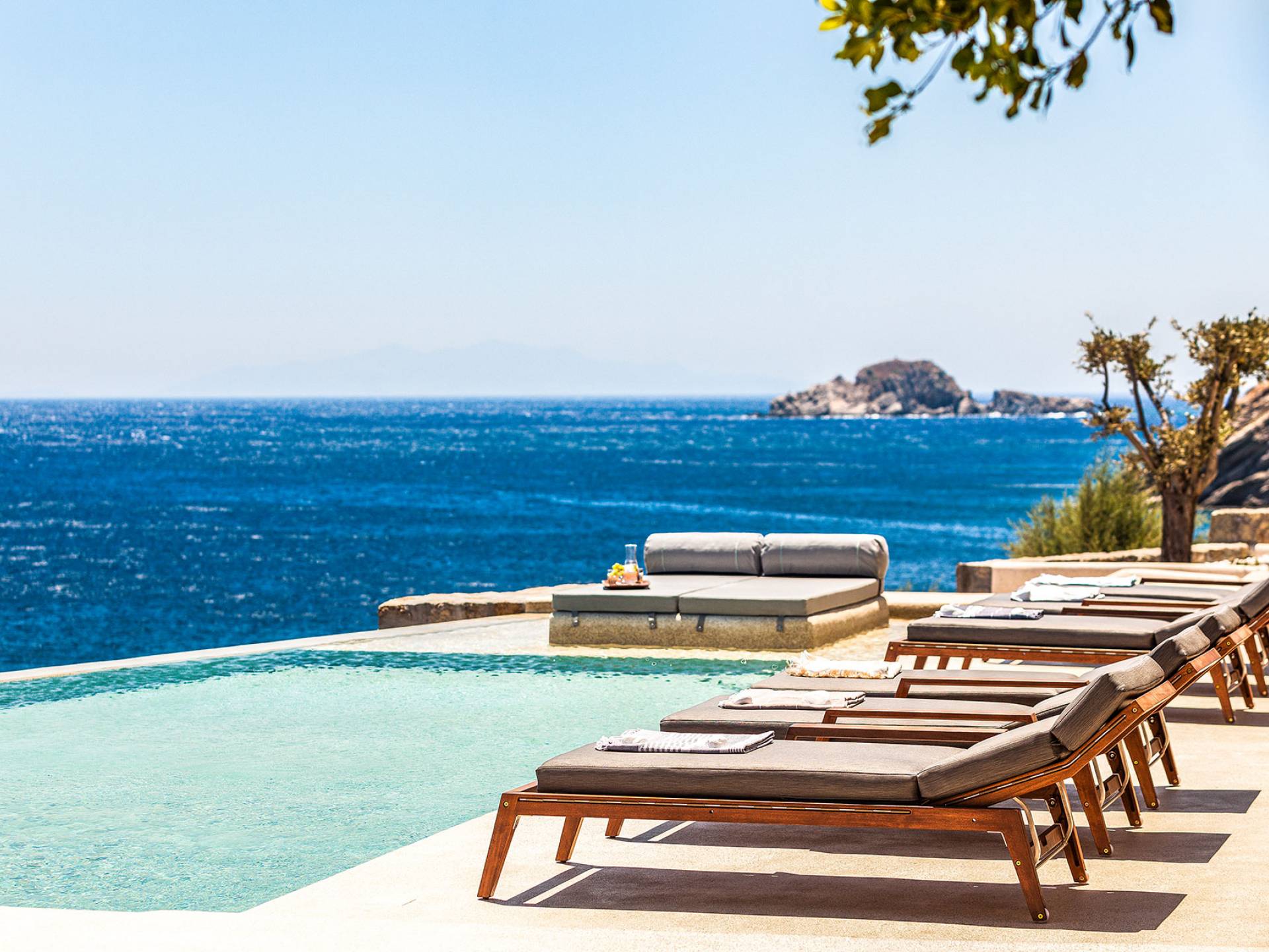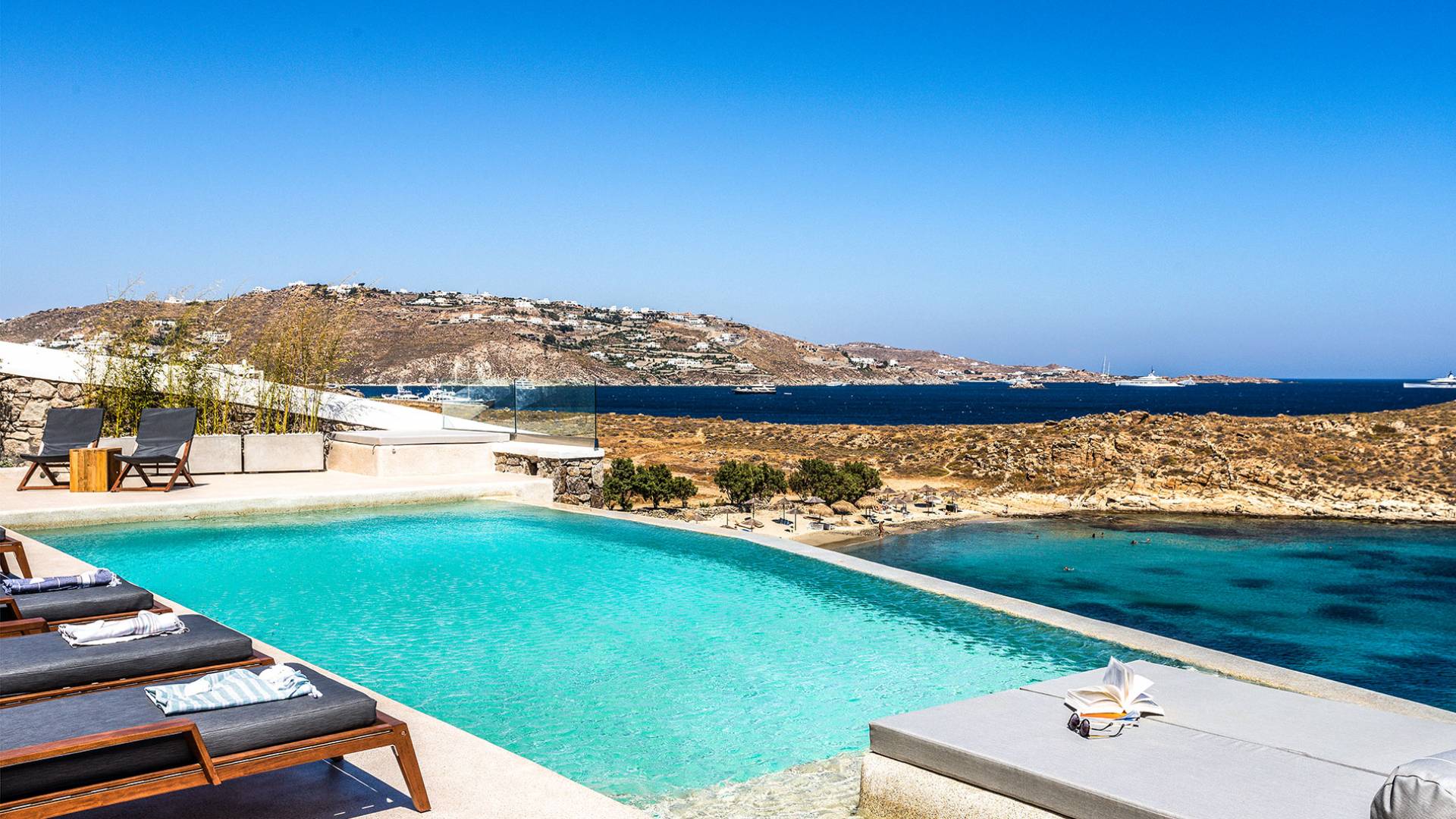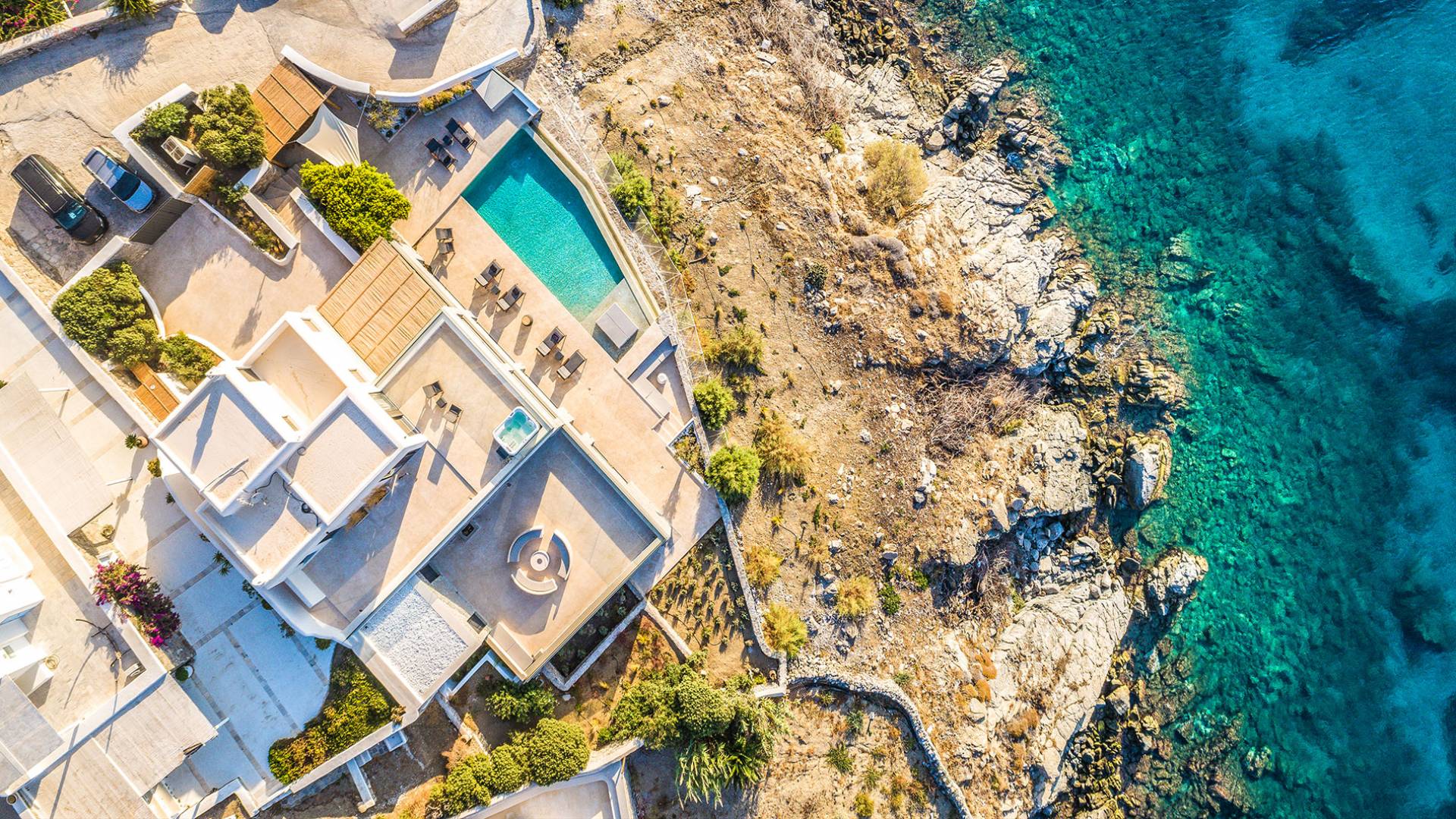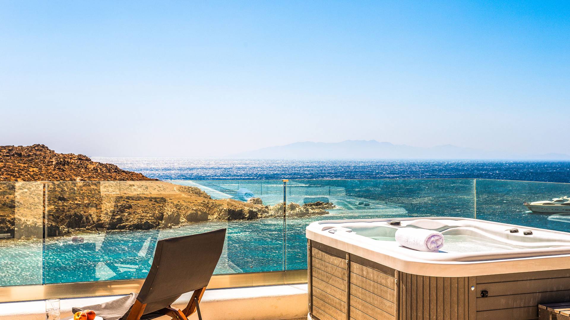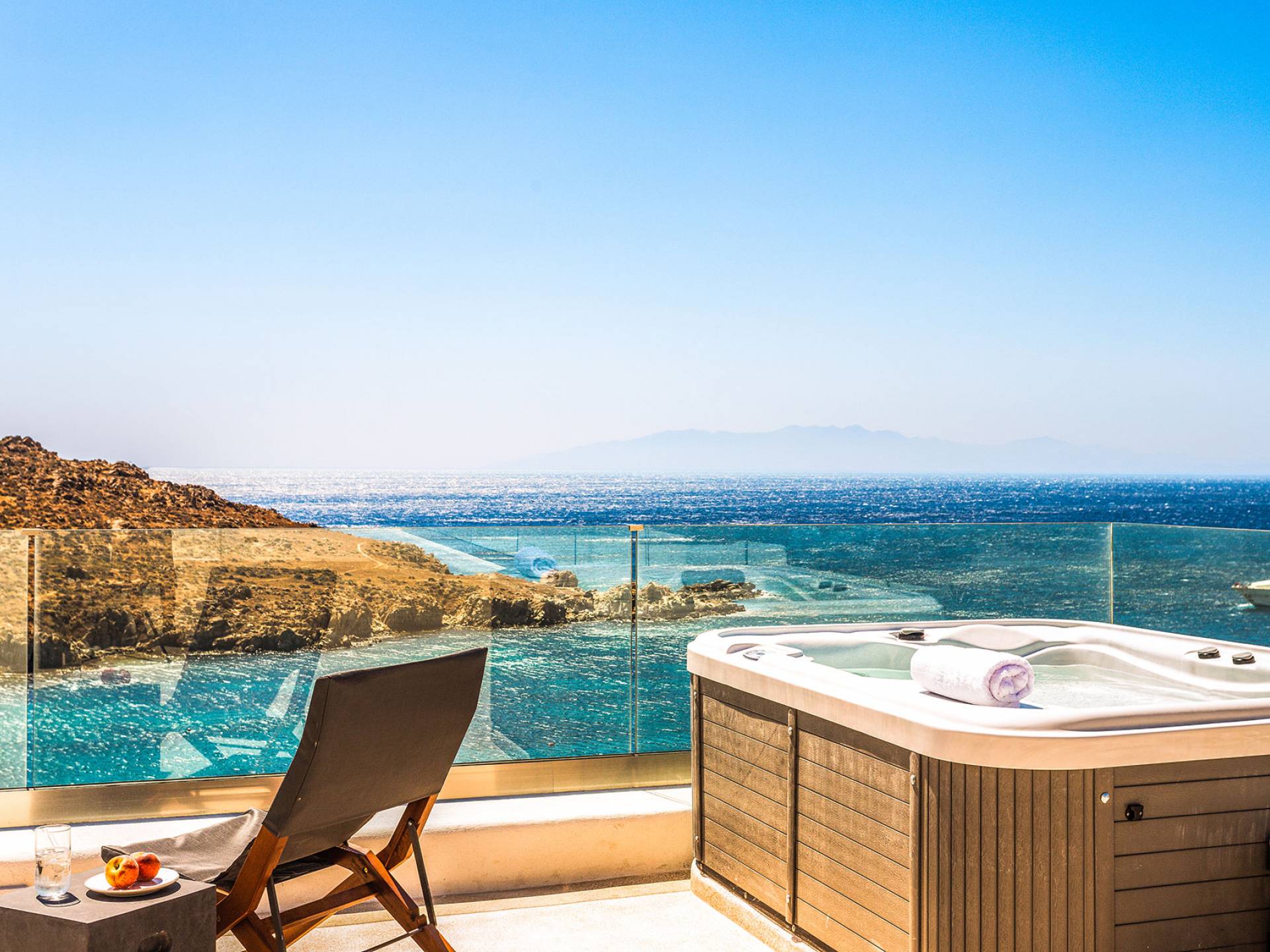 Villa Cascade Mykonos ist eine Luxusvilla mit 6 Schlafzimmern und einem privaten Pool. Die Villa Cascade ist ein brandneues Anwesen am Wasser in Aleomandra mit atemberaubendem, unverbaubarem Meerblick, das am Rand einer felsigen Küste an einem windgeschützten Ort direkt über den Gewässern der Ägäis erbaut wurde.