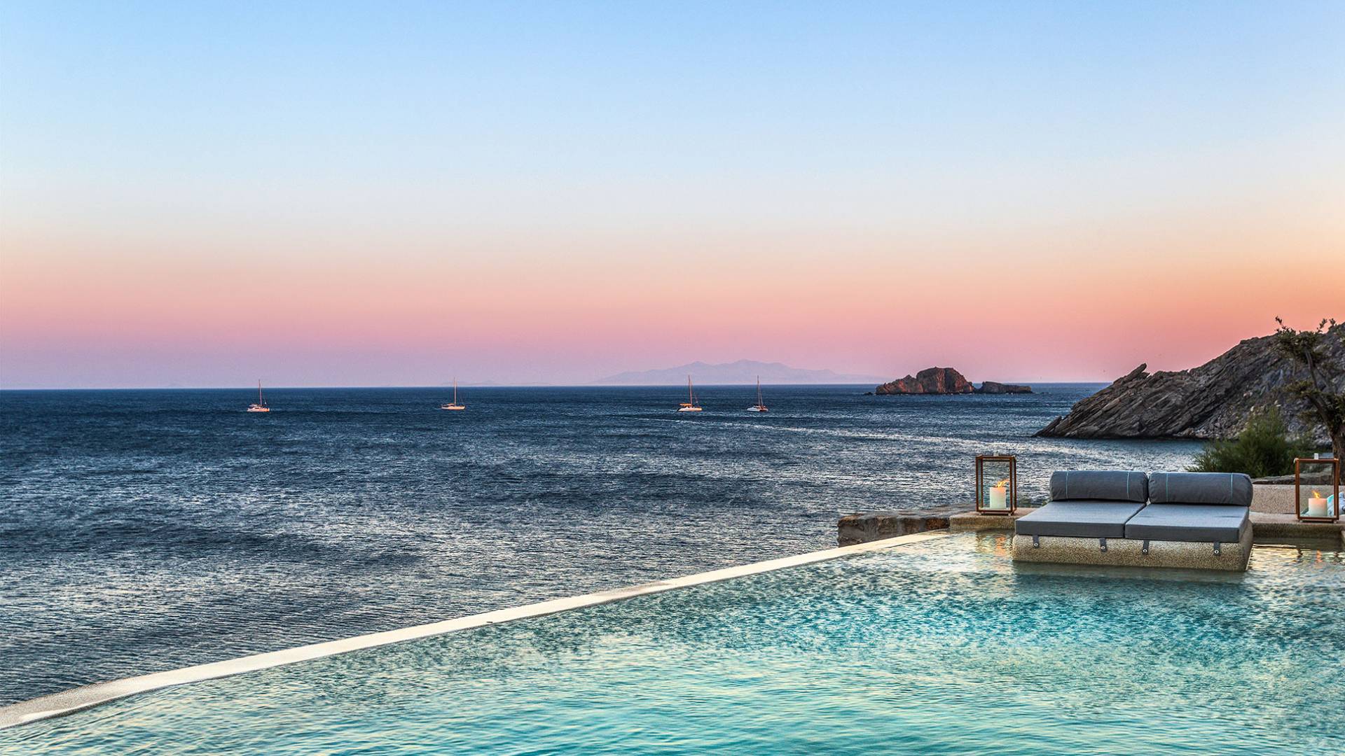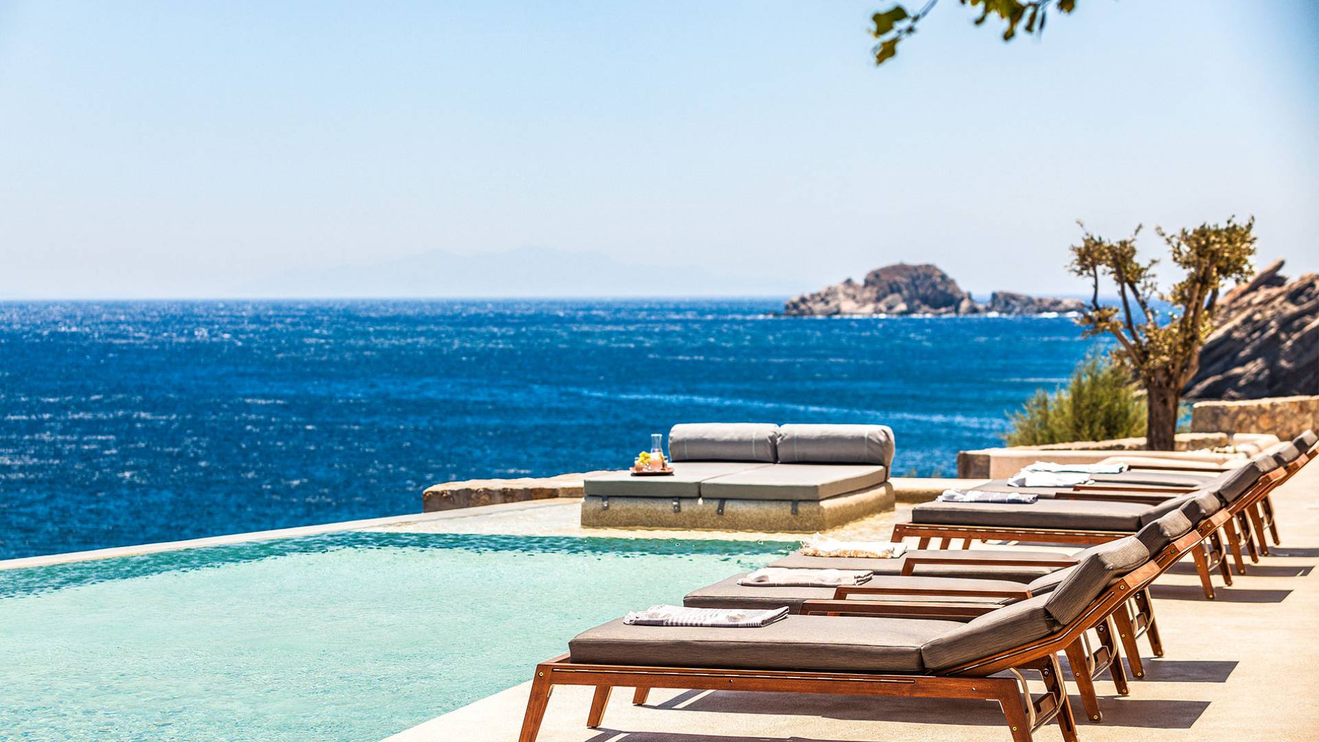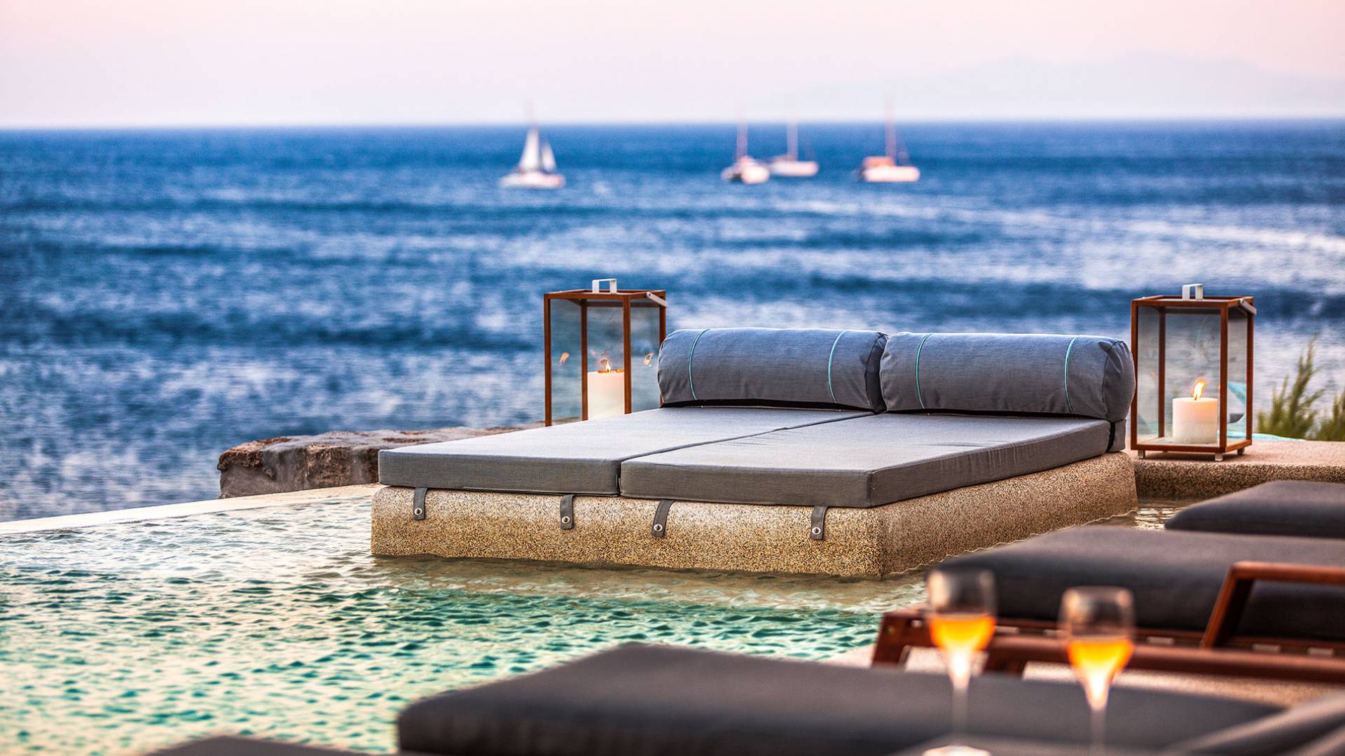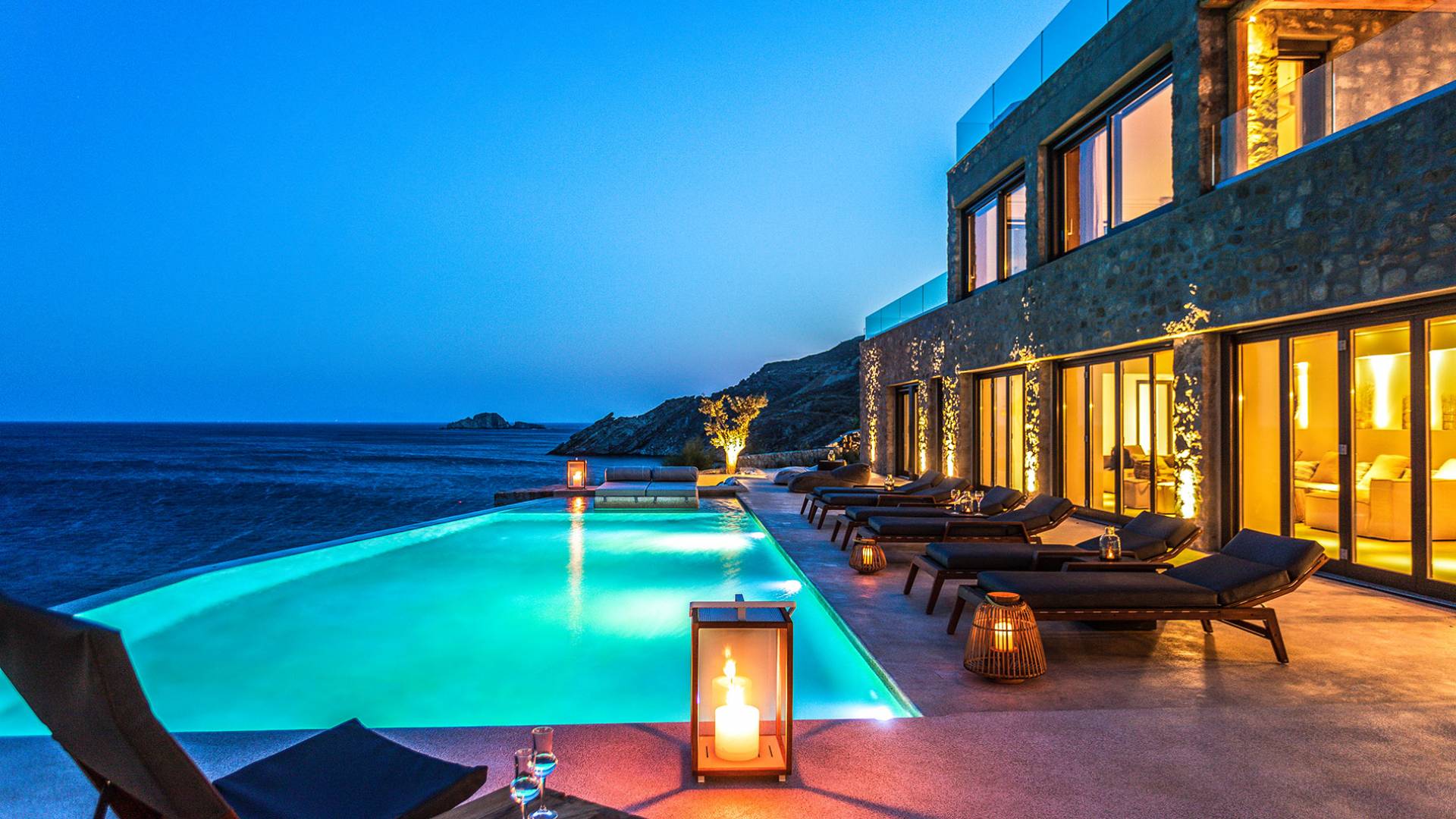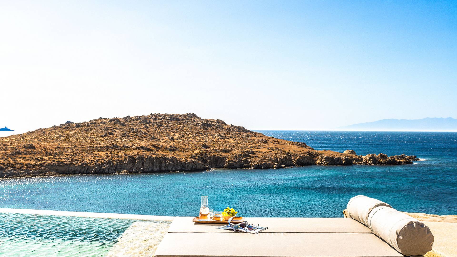 Villa Cascade Mykonos ist eine Luxusvilla mit 6 Schlafzimmern und einem privaten Pool. Die Villa Cascade ist ein brandneues Anwesen am Wasser in Aleomandra mit atemberaubendem, unverbaubarem Meerblick, das am Rand einer felsigen Küste an einem windgeschützten Ort direkt über den Gewässern der Ägäis erbaut wurde.