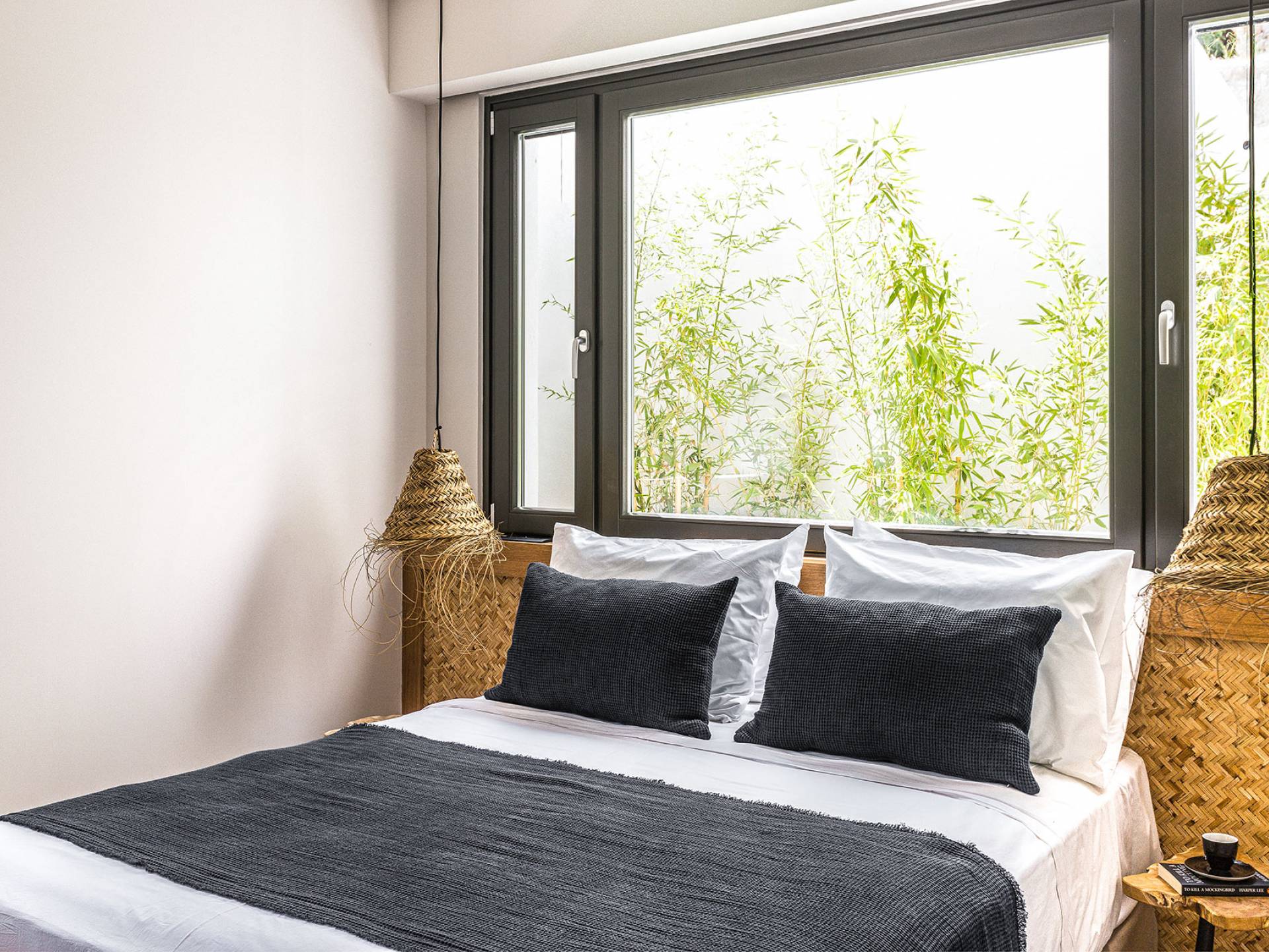 Das Personalzimmer befindet sich ebenfalls auf dieser Ebene, direkt neben der Küche, und verfügt über ein eigenes Bad. In der zweiten Etage befindet sich das Hauptschlafzimmer mit Panoramablick auf das Meer und einem begehbaren Kleiderschrank, der sich zur Terrasse mit Außenwhirlpool öffnet. Alle 3 Ebenen können über die Treppe oder den Aufzug der Villa erreicht werden. Zu guter Letzt gibt es unterhalb der Hauptterrasse der Villa, nur zwei Gehminuten entfernt, einen kleinen, abgelegenen Sandstrand, den die Gäste frei besuchen können.