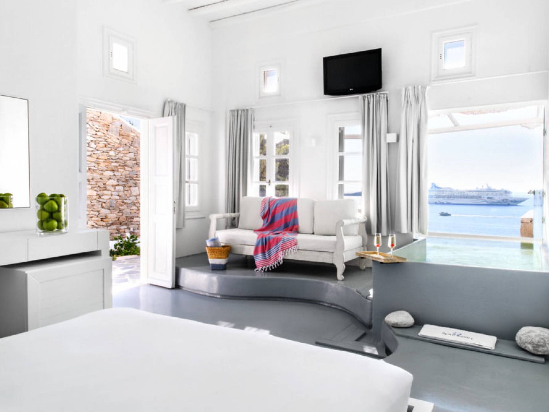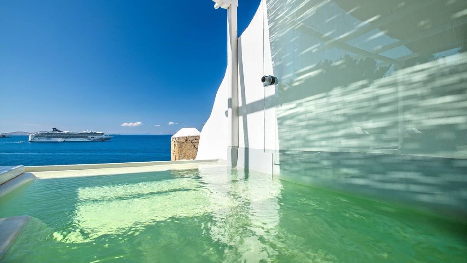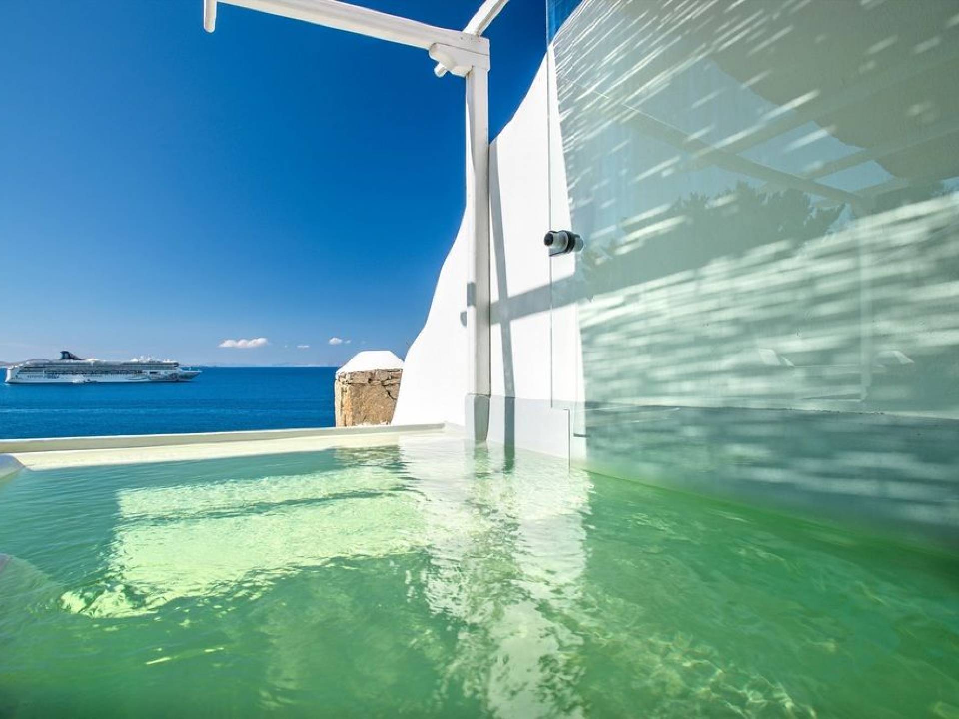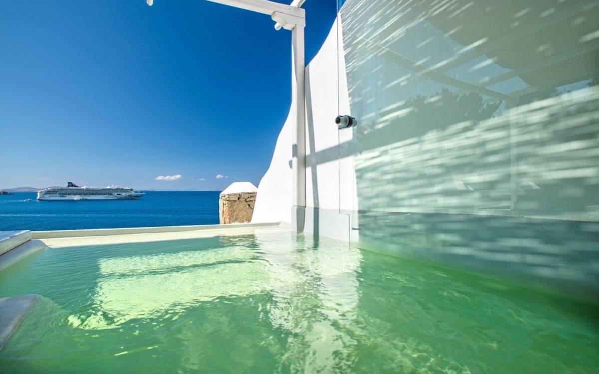 Unser Superior Doppelzimmer mit Whirlpool bietet Platz für zwei Personen und ist eine ausgezeichnete Unterkunftsoption für diejenigen, die unvergleichlichen Luxus und Komfort suchen. In einem großzügigen Raum werden die Gäste in das wahre Luxusleben eingeführt und genießen die therapeutische, belebende Kraft des Wassers, während sie im privaten Whirlpool im Freien eintauchen. Das Zimmer ist mit einem komfortablen Kingsize-Bett ausgestattet und bietet Meerblick und eine einzigartige Ästhetik. Klare, moderne Linien und viel Sonnenlicht, erstklassige Gastfreundschaft und eine Vielzahl von Annehmlichkeiten machen Ihr Urlaubserlebnis auf Mykonos zu einem wahren Schatz!