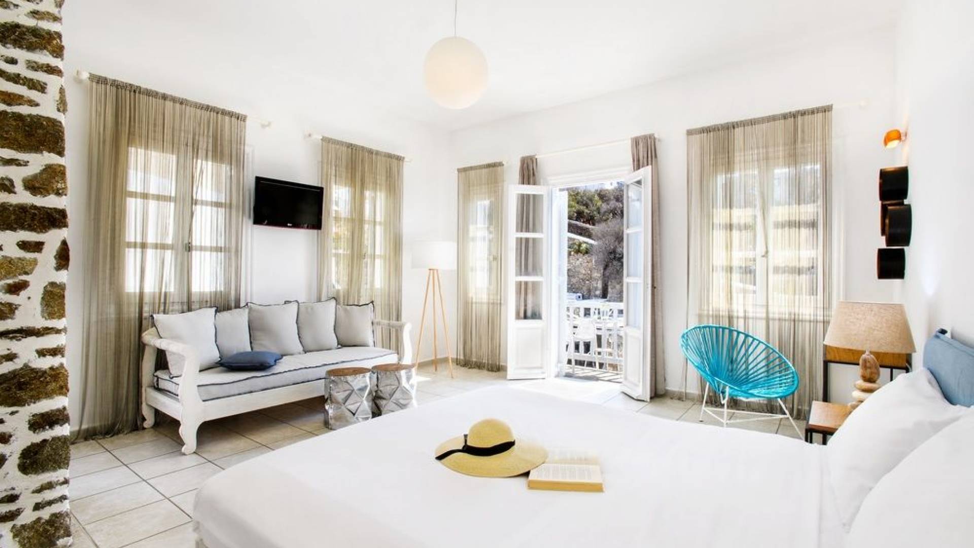 Ein stilvolles Resort auf Mykonos zu finden ist einfach, davon gibt es viele. Schwieriger ist es jedoch, etwas Kleines und Stilvolles zu finden, bei dem Sie auch einen herzlichen und persönlichen Empfang erwarten können. Apanema Boutique Resort ist vielleicht das einzige. Für diejenigen, die einen privaten und raffinierten Ort suchen, ist das Apanema Boutique Resort abseits des pulsierenden Lebensstils der Insel. Das Apanema Boutique Resort ist der ideale Rückzugsort für diejenigen, die eine romantische Atmosphäre mit einem einzigartigen Panorama auf die Ägäis suchen. Das Apanema Boutique Resort ist ein kleines Resort mit nur 17 Zimmern (und Suiten) und bietet eine intime, elegante aber entspannte Umgebung. Es befindet sich in der Tagoo-Gegend von Mykonos, direkt am Wasser mit seinen unvergesslichen Sonnenuntergängen und Blicken auf die nahe gelegene Insel Delos, aber auch ganz in der Nähe der belebten Stadt Mykonos, die in weniger als 15 Minuten zu Fuß erreichbar ist. Der exzellente Service rundet das Bild eines perfekten Urlaubs ab. Das professionelle Personal steht Ihnen bis in die frühen Morgenstunden mit einem hohen Servicestandard zur Verfügung und die Mitarbeiter an der Rezeption helfen Ihnen gerne dabei, Ihre Wünsche zu erfüllen und helfen Ihnen gerne bei Ihrer Reise Arrangements oder Sightseeing auf Mykonos.