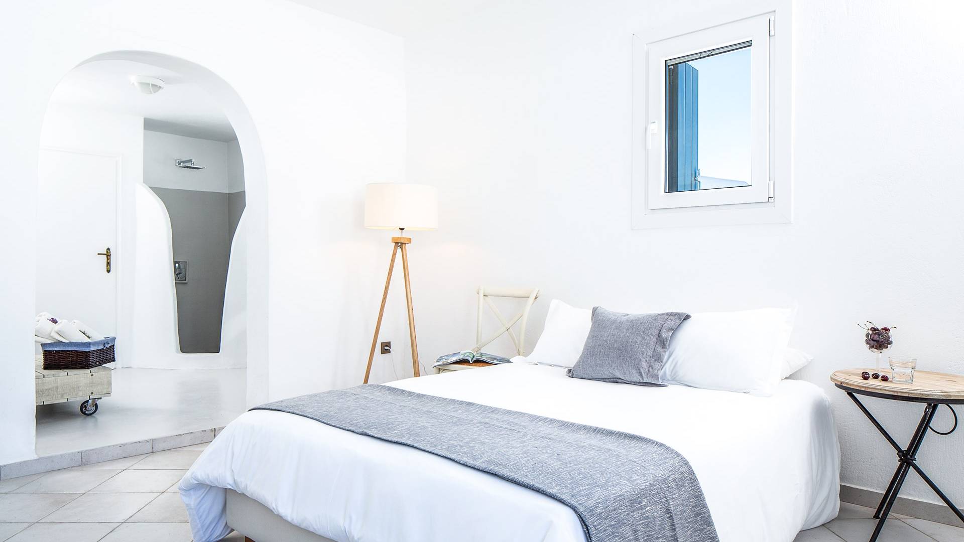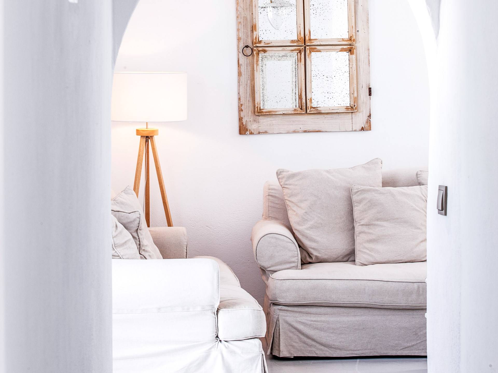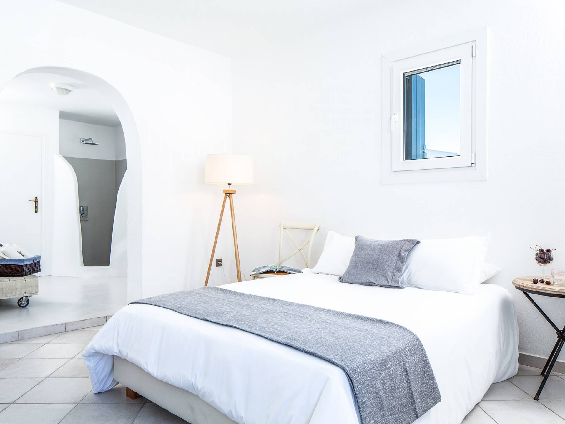 Auf einer Ebene (Erdgeschoss) erbaut, bietet das einzigartige und organische Design der Villa Accalia eine Vielzahl von Orten, die Sie von Sonnenaufgang bis Sonnenuntergang genießen können. Die verschiedenen Ebenen und Bereiche fließen natürlich ineinander und machen diese Ebene zu einer Oase der Entspannung. Die minimalistischen Innenräume jeder Suite und Villa sind im Stil echter mykonischer Architektur erbaut und verkörpern zeitgemäßes Design, das mit authentischen Details ausgestattet ist. Weiß getünchte Wände, glatte Bögen und offene Flächen sind im gesamten Komplex zu sehen, um ein entspannendes und beruhigendes Ambiente zu schaffen.