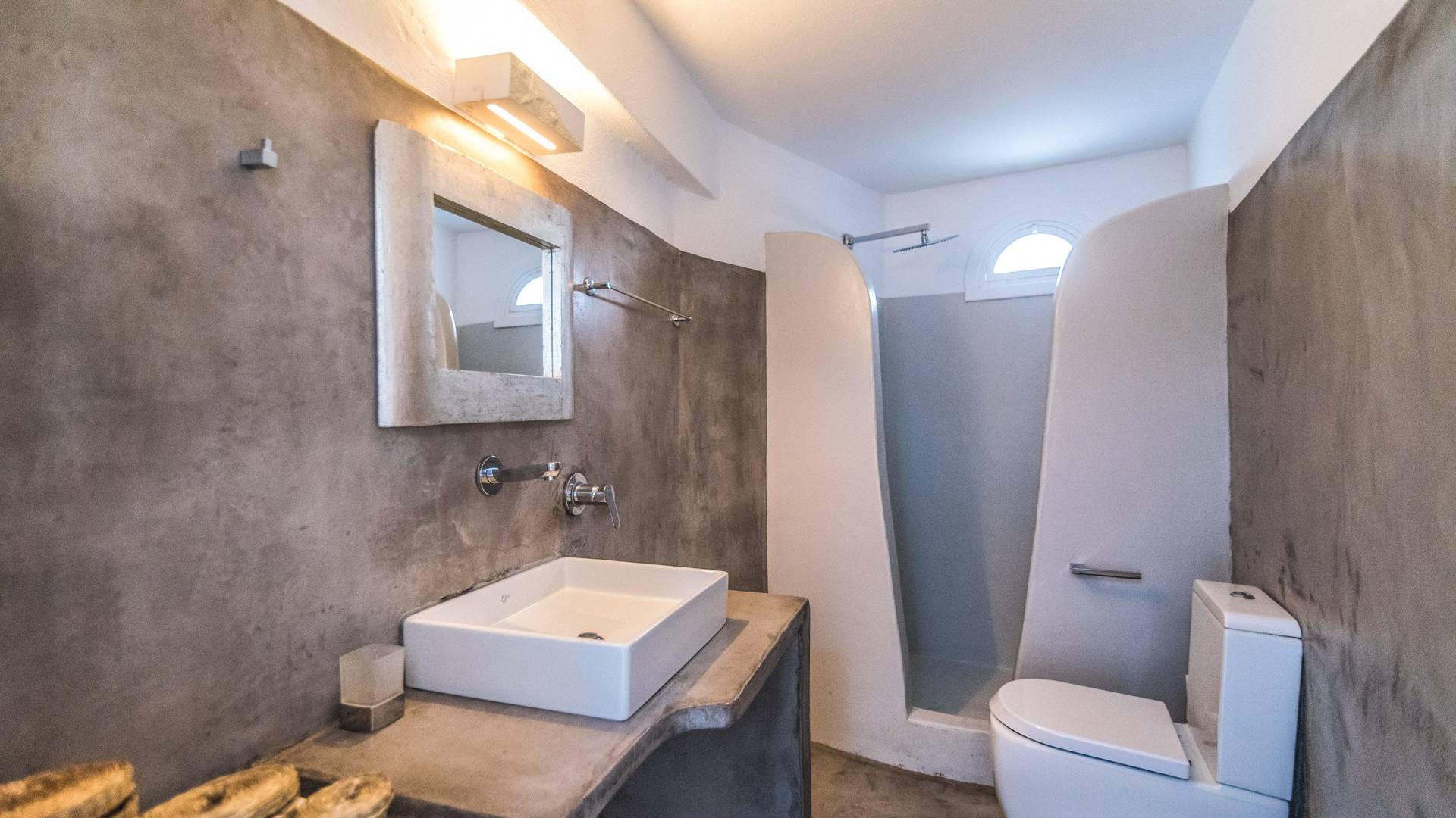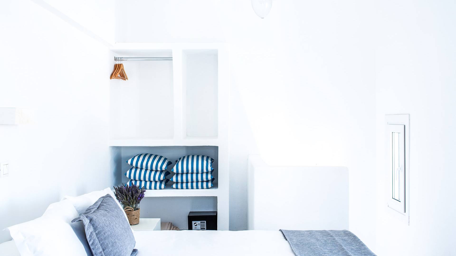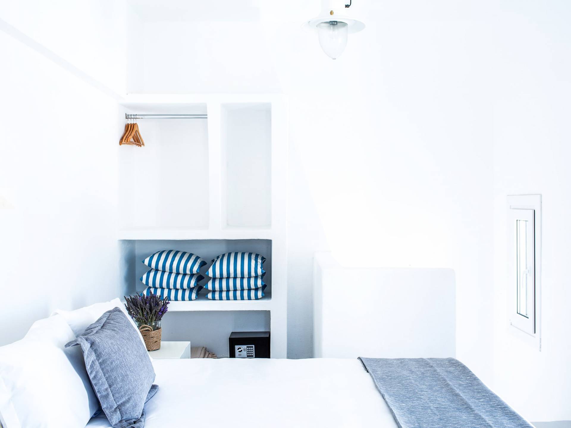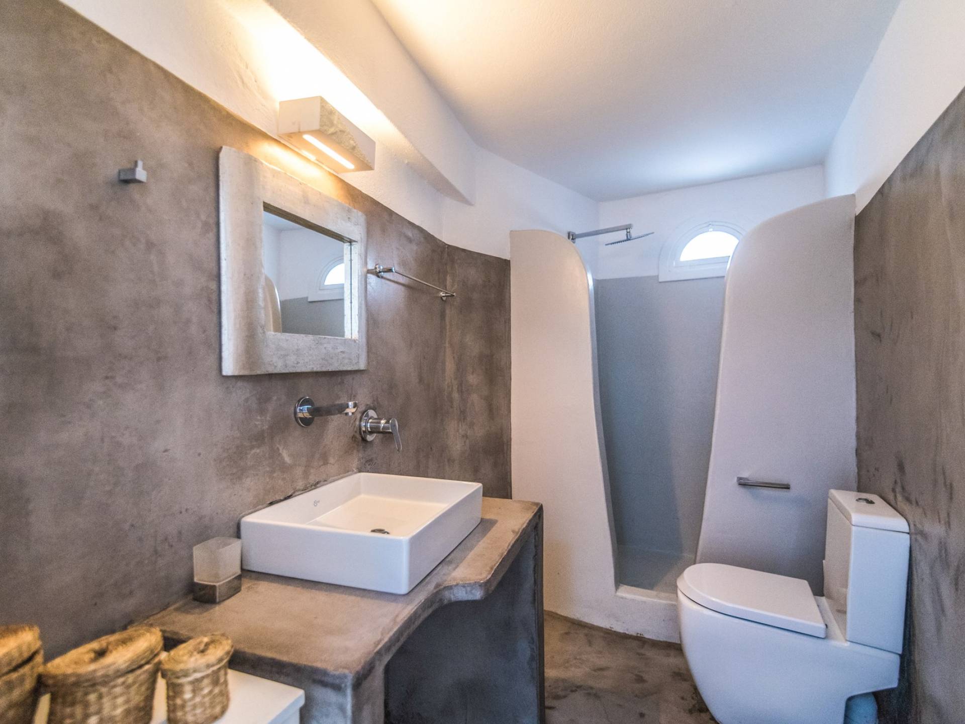 Auf einer Ebene (Erdgeschoss) erbaut, bietet das einzigartige und organische Design der Villa Accalia eine Vielzahl von Orten, die Sie von Sonnenaufgang bis Sonnenuntergang genießen können. Die verschiedenen Ebenen und Bereiche fließen natürlich ineinander und machen diese Ebene zu einer Oase der Entspannung. Die minimalistischen Innenräume jeder Suite und Villa sind im Stil echter mykonischer Architektur erbaut und verkörpern zeitgemäßes Design, das mit authentischen Details ausgestattet ist. Weiß getünchte Wände, glatte Bögen und offene Flächen sind im gesamten Komplex zu sehen, um ein entspannendes und beruhigendes Ambiente zu schaffen.