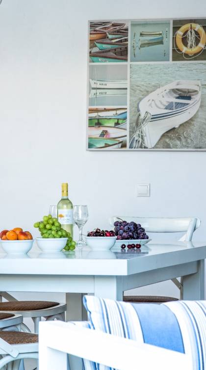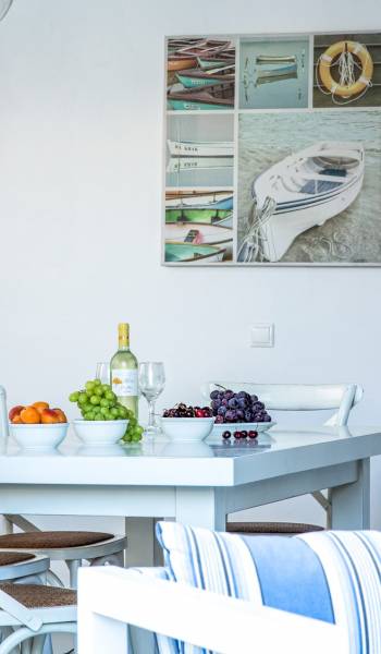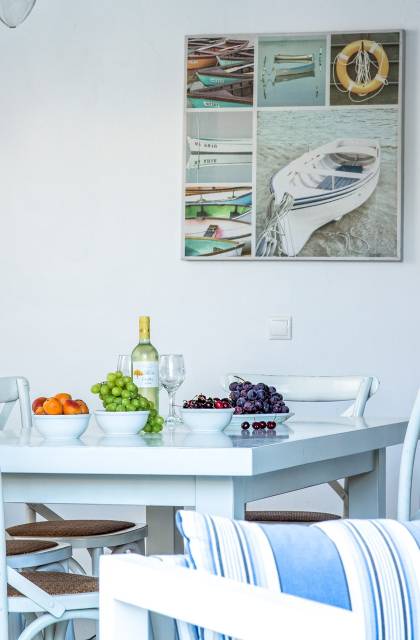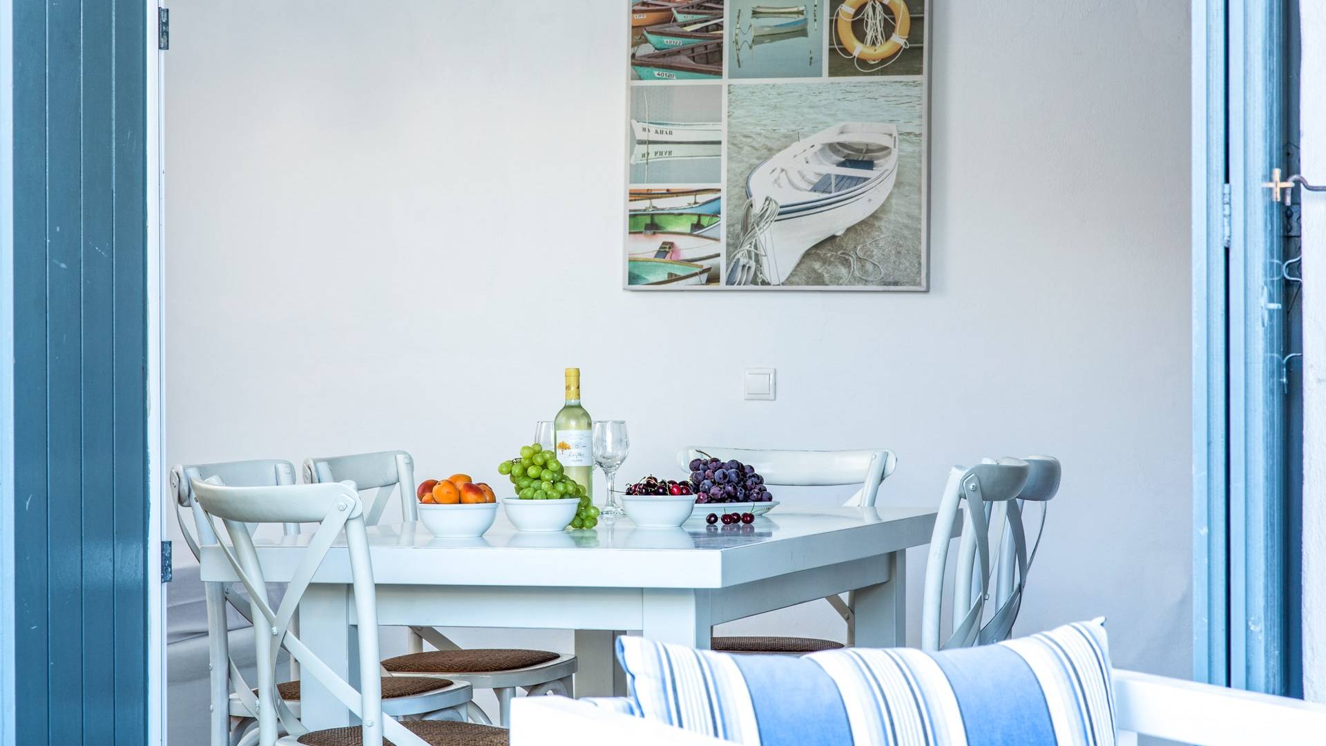 Diese klimatisierte und elegant eingerichtete Villa bietet einen privaten Innenhof und eine Terrasse mit Meerblick und Blick auf die Prinzessin der Ägäis sowie 3 separate Schlafzimmer und 2 Badezimmer. Es verfügt über einen Sitzbereich mit einem Flachbild-TV sowie eine Küche