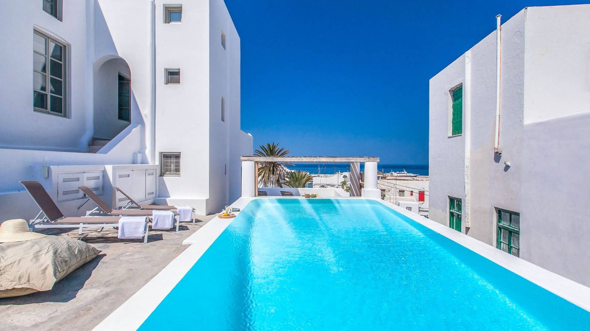 Villa Josephine Mykonos ist eine Luxusvilla mit 5 Schlafzimmern und privatem Pool. Die Villa Josephine wurde 1882 als prestigeträchtiges Herrenhaus erbaut und befindet sich im Herzen der Stadt Mykonos, nur wenige Schritte vom bezaubernden kleinen Venedig und den legendären Windmühlen entfernt. Hier können die Gäste das pulsierende Nachtleben und die exquisite Gastronomie der Insel erleben aus der Haustür treten.