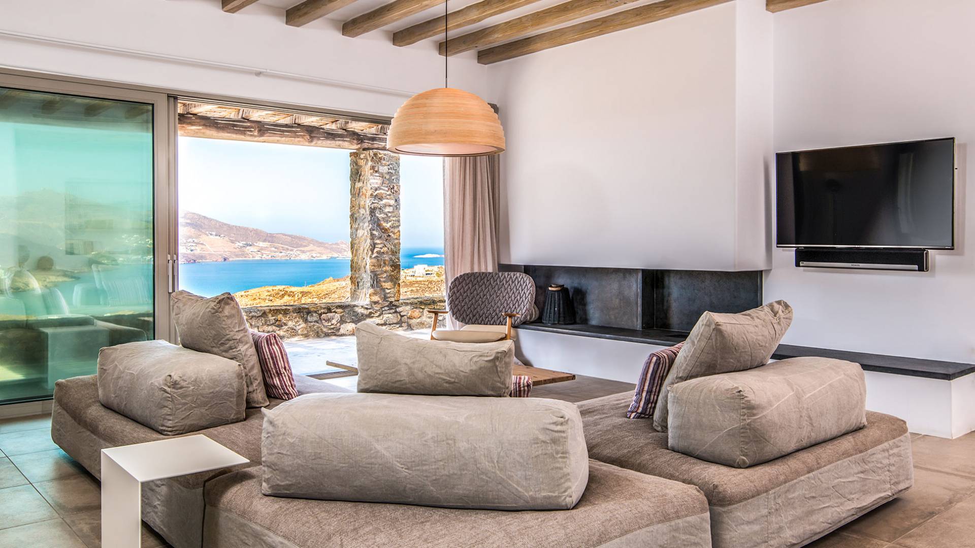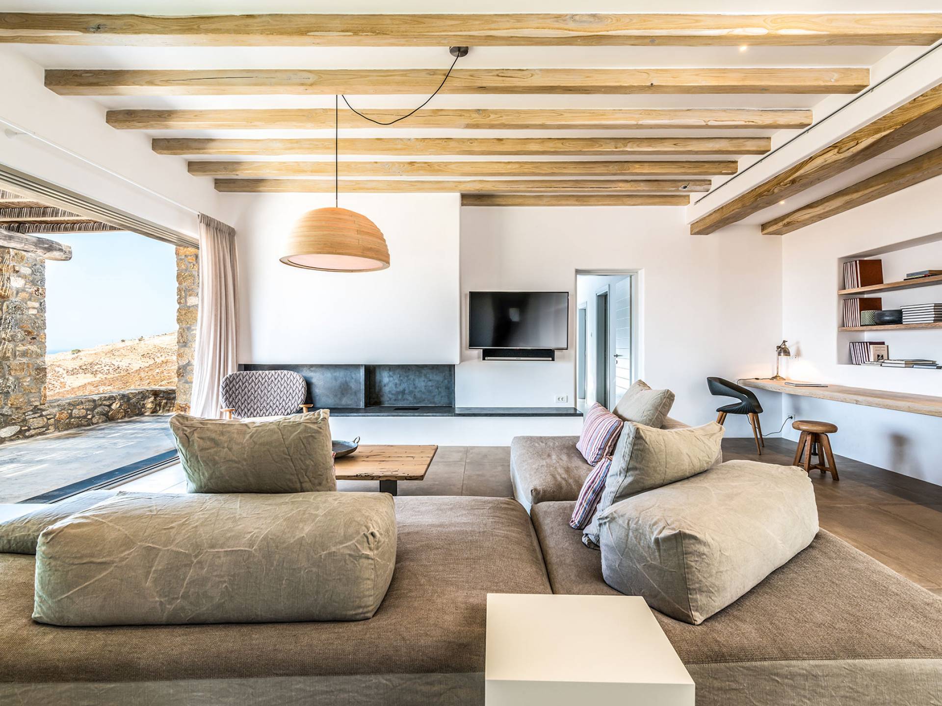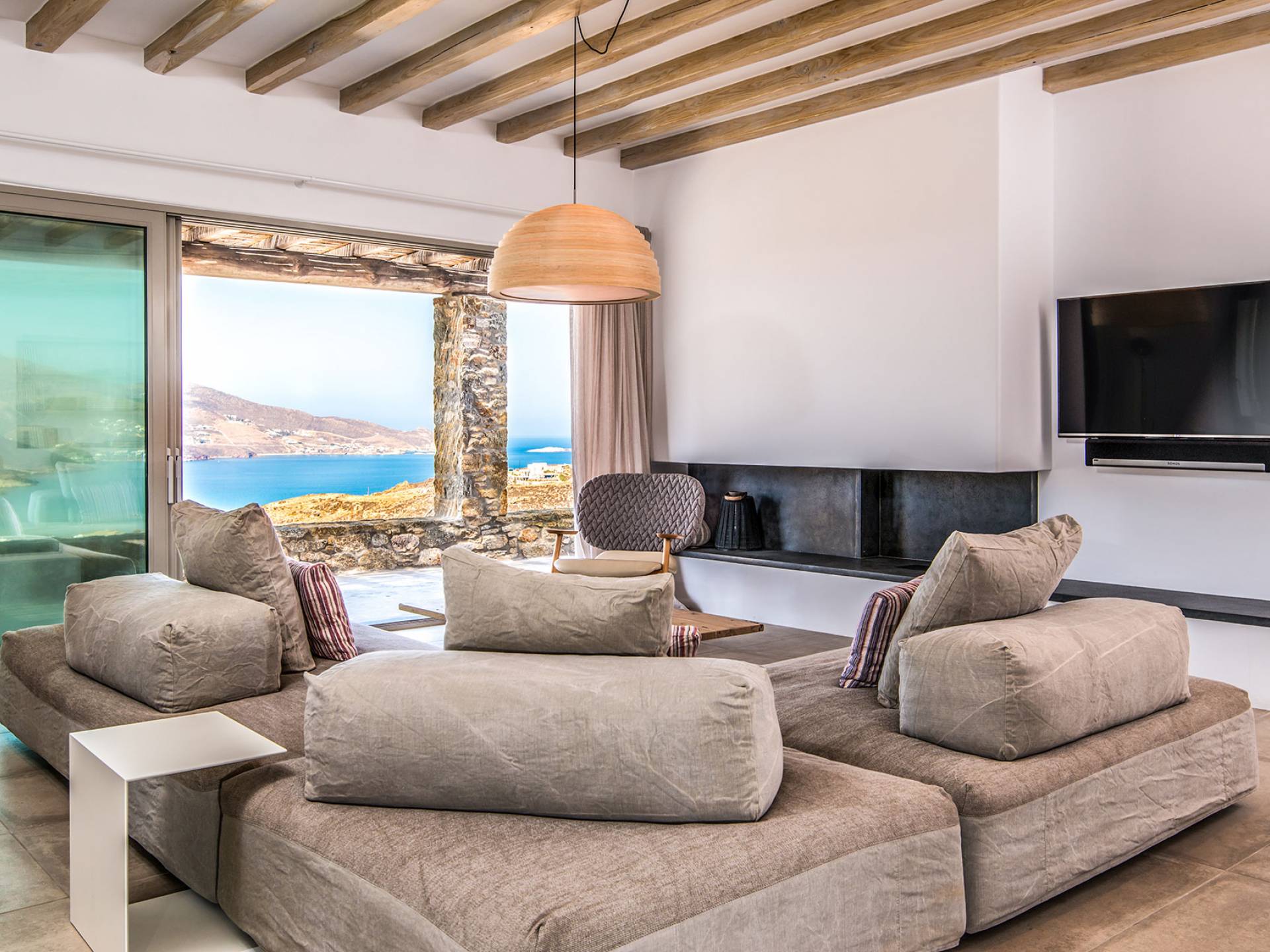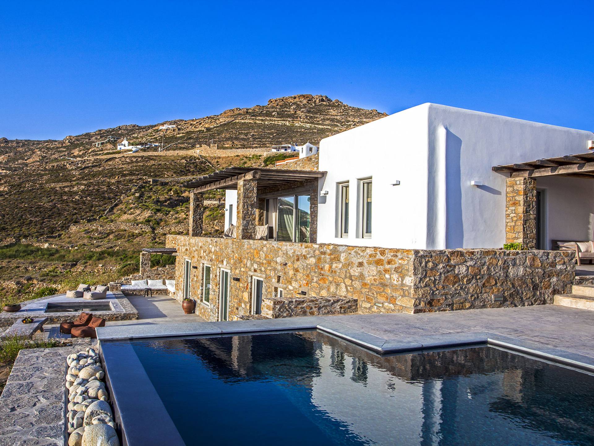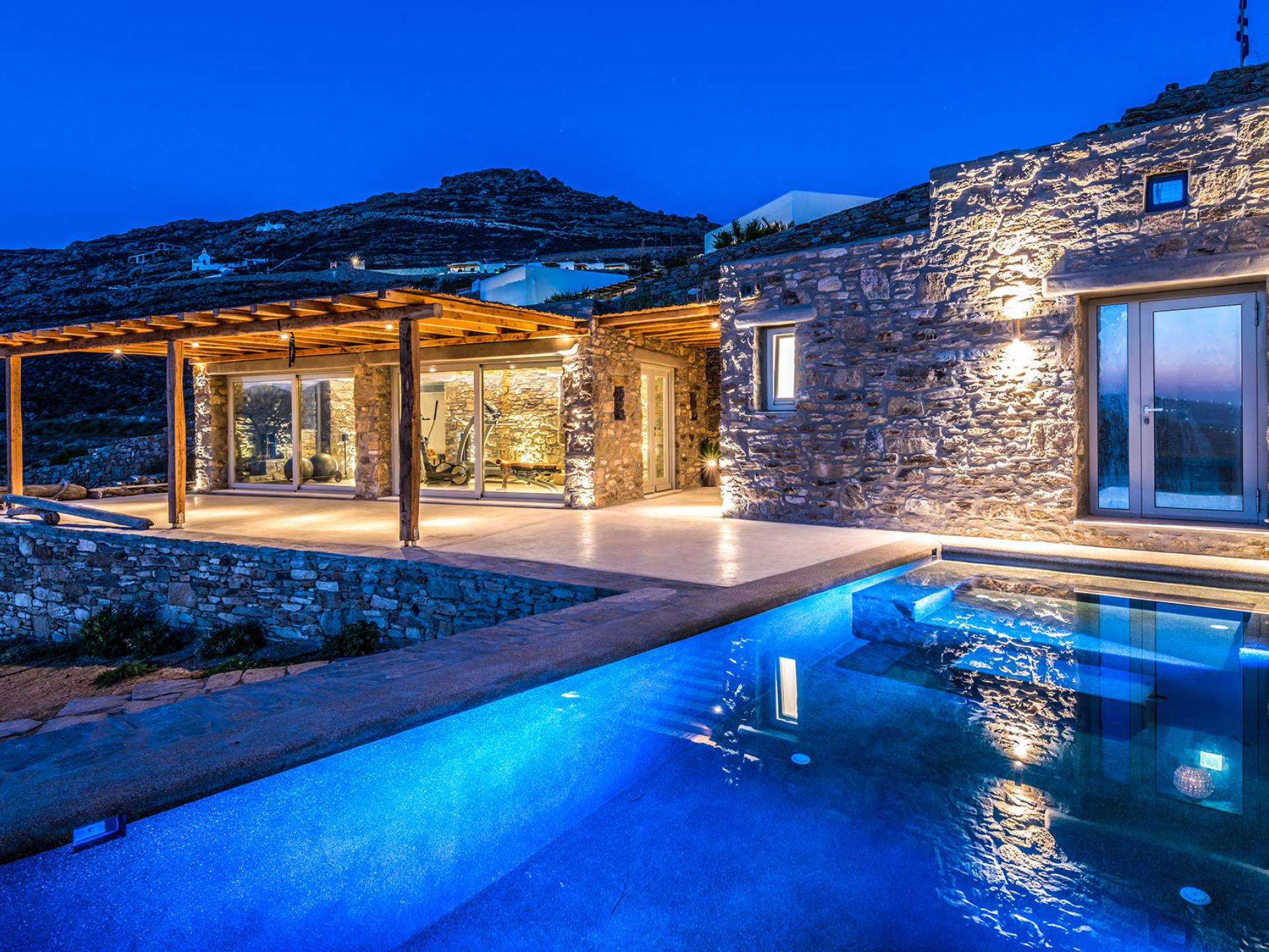 Villa Amra Mykonos ist eine Luxusvilla mit 7 Schlafzimmern und einem privaten Pool. Die Villa Amra ist ein neu erbautes Anwesen in sehr privater Lage in Ftelia mit einzigartigem Blick auf die Ägäis, 5 km von Mykonos-Stadt und 800 m vom Strand entfernt. Die Villa ist ein wahrer Botschafter des zeitgenössischen Stils und der Eleganz und ist mit schicken und stilvollen Möbeln und Hausautomationstechnologie ausgestattet.
