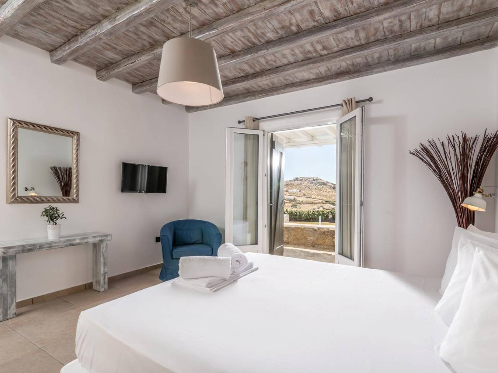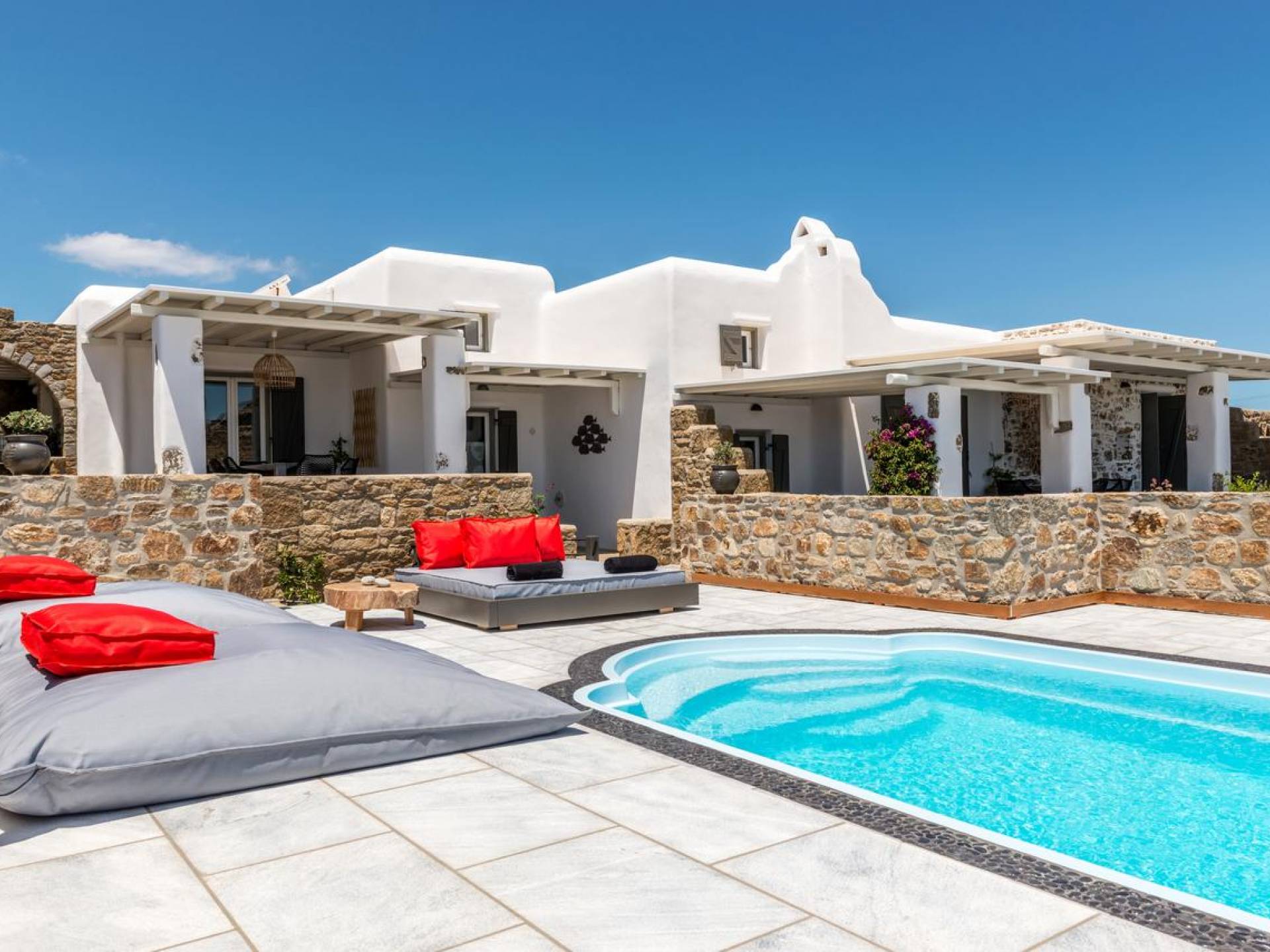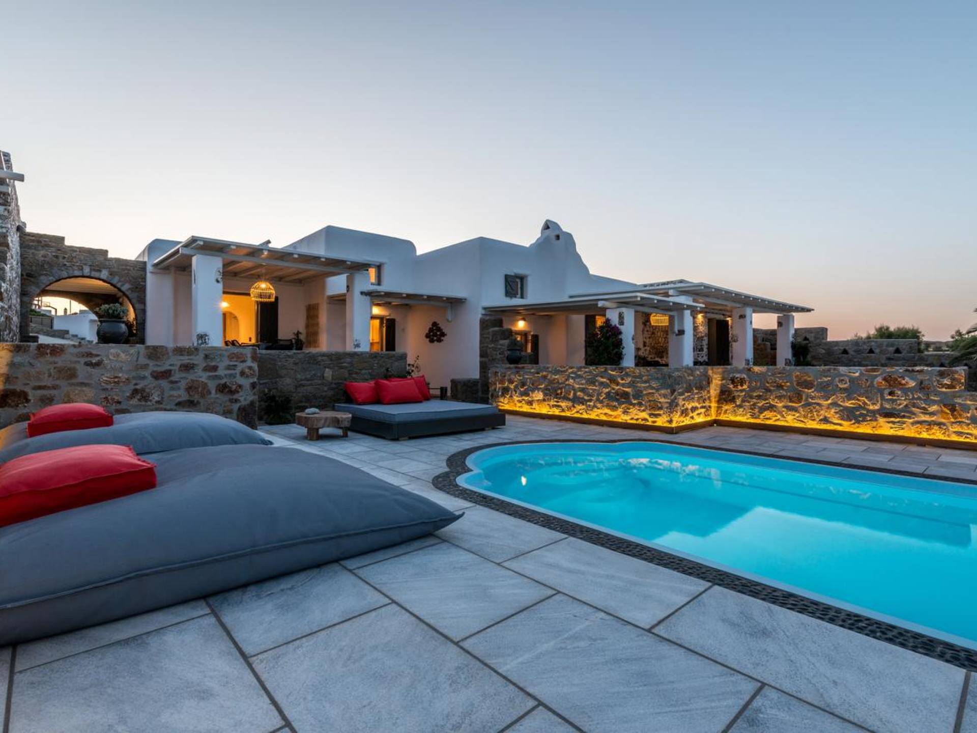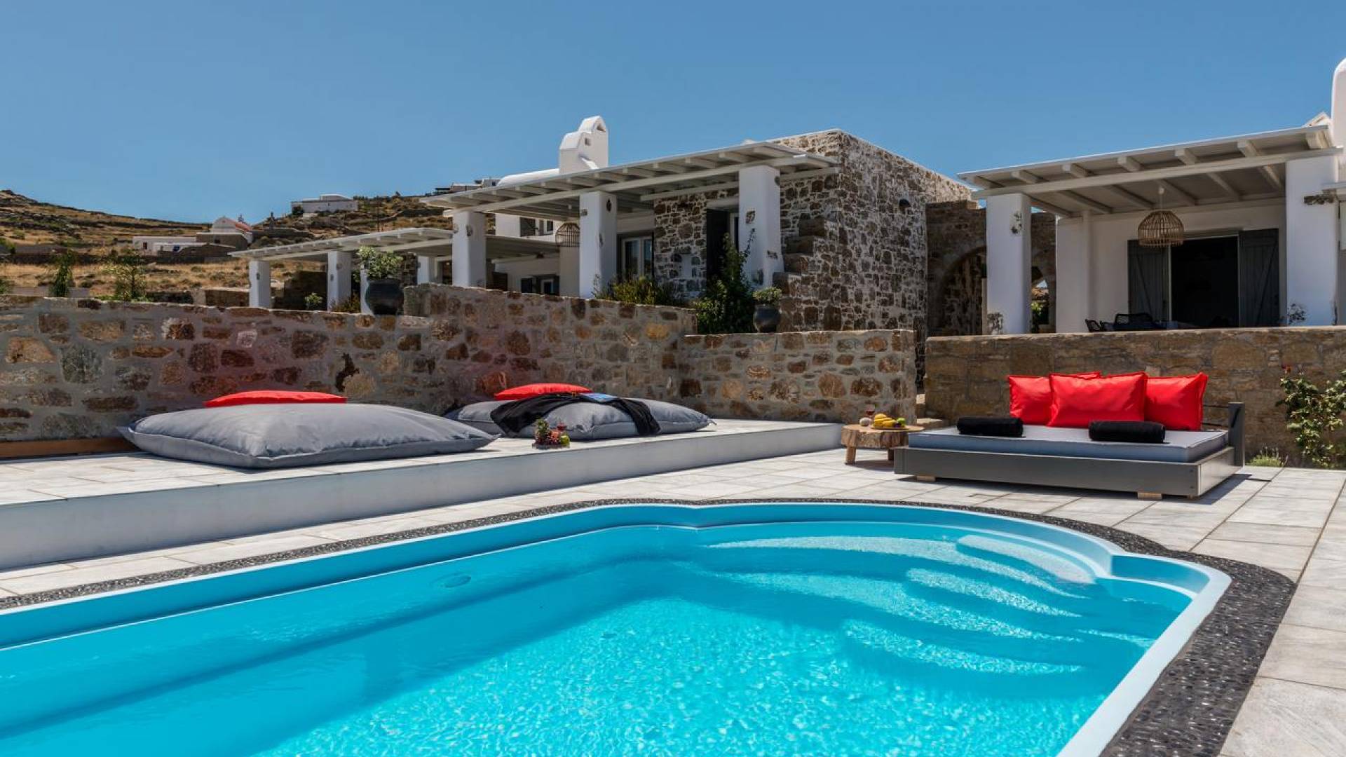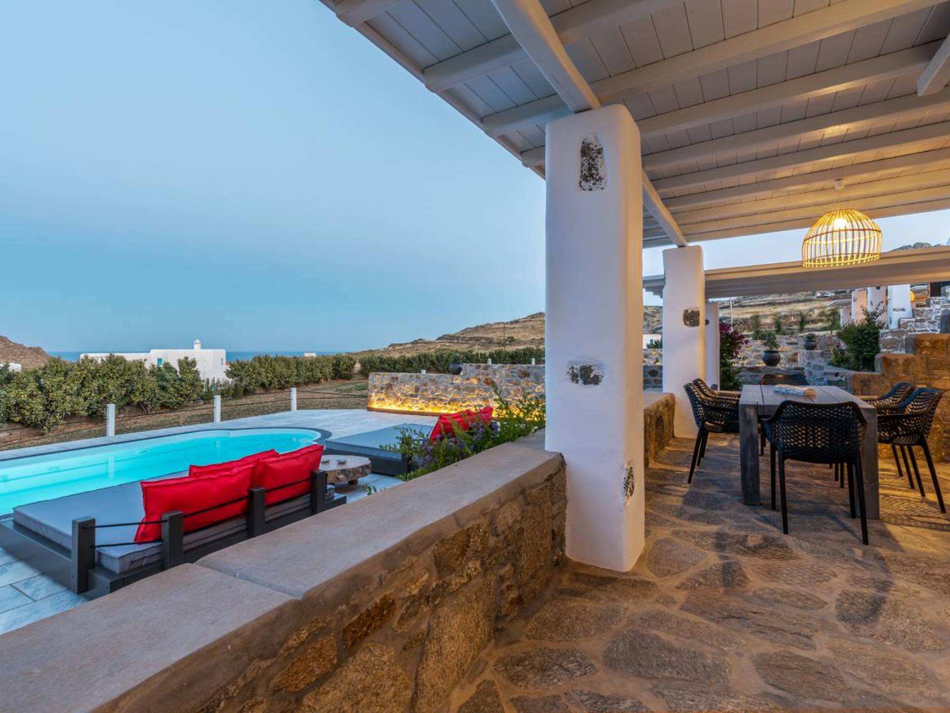 Aurora Mykonos-Villen. Ein privates Paradies auf Mykonos. Die vier luxuriösen Neubauvillen liegen nur einen Steinwurf von den schönsten Stränden von Mykonos, wie Κalafatis, Lia, Kalo Livadi, Fokos und Merkia entfernt. Erbaut mit Blick auf das Meer im Osten, in völliger Harmonie mit der natürlichen Umgebung, nach den klaren minimalistischen Linien der Kykladen.