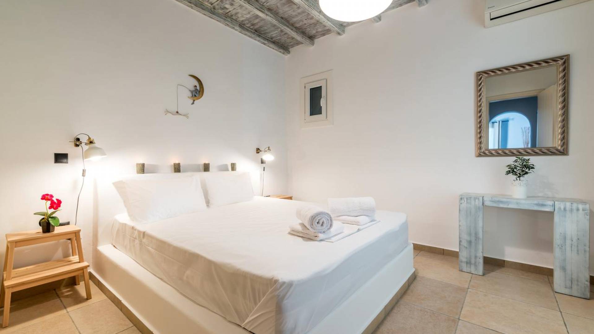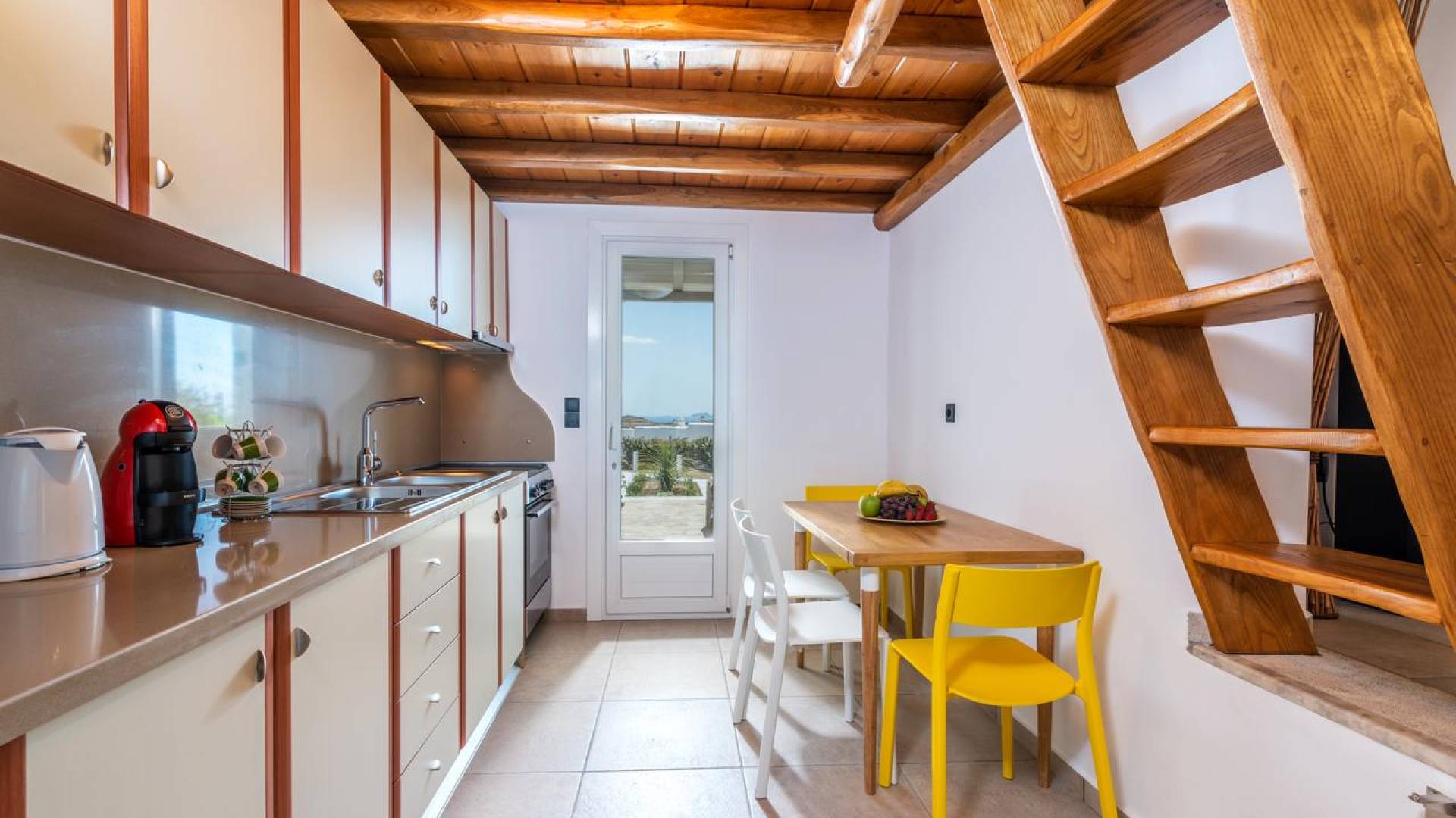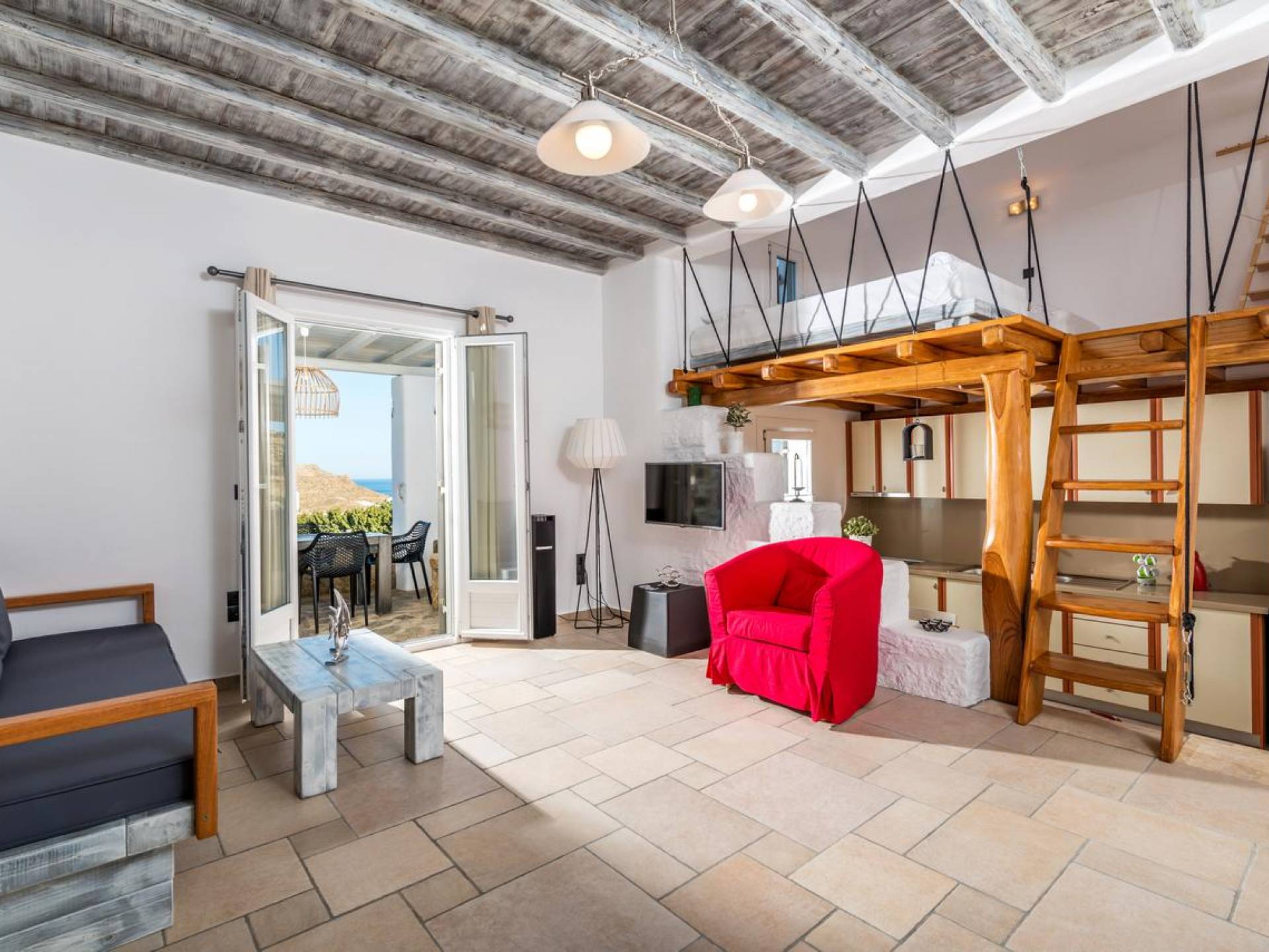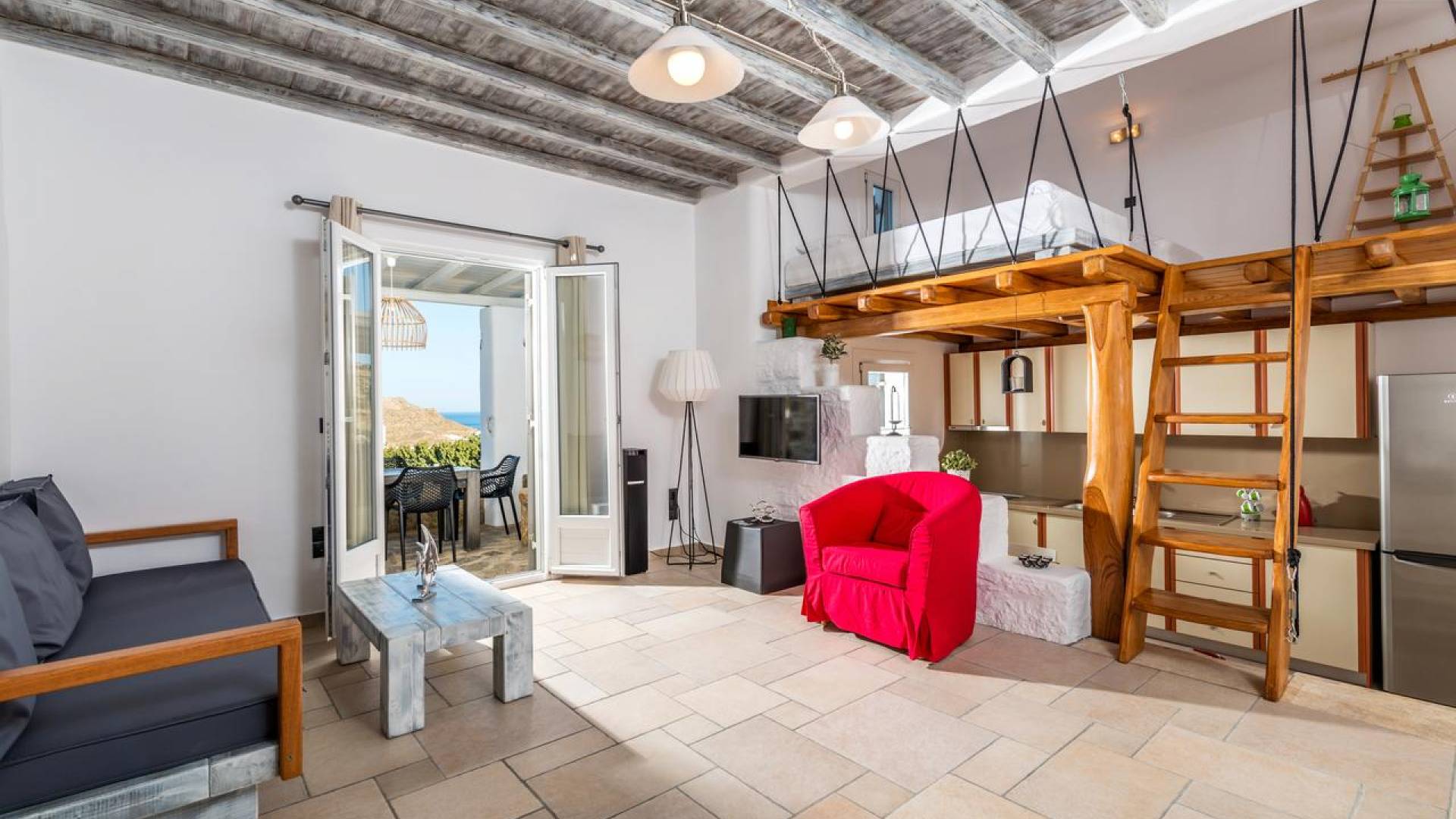 Alle Villen bieten Platz für sechs Personen (eine weitere Person am Sofa) mit einer Fläche von 85-95 m² und eigenem Parkplatz. Jede Villa verfügt über zwei Schlafzimmer, zwei Badezimmer, eine Küche, ein gemütliches Loft, eine private geräumige Veranda und einen privaten Pool. Voll ausgestattet mit Flachbildfernseher WI-FI, eV-Klimaanlage, Haushaltsartikeln, modernen Bädern und Schlafprodukten. Das kykladische Licht herrscht in jeder dieser exquisiten Villen vor, die mit Tradition, minimalem Design und modernen Annehmlichkeiten verbunden sind. Wunderschön gebaut mit Holzbalken, handgefertigten Möbeln, bequemen Sesseln und herrlichen Tischen, die eine schicke, entspannende Umgebung schaffen.