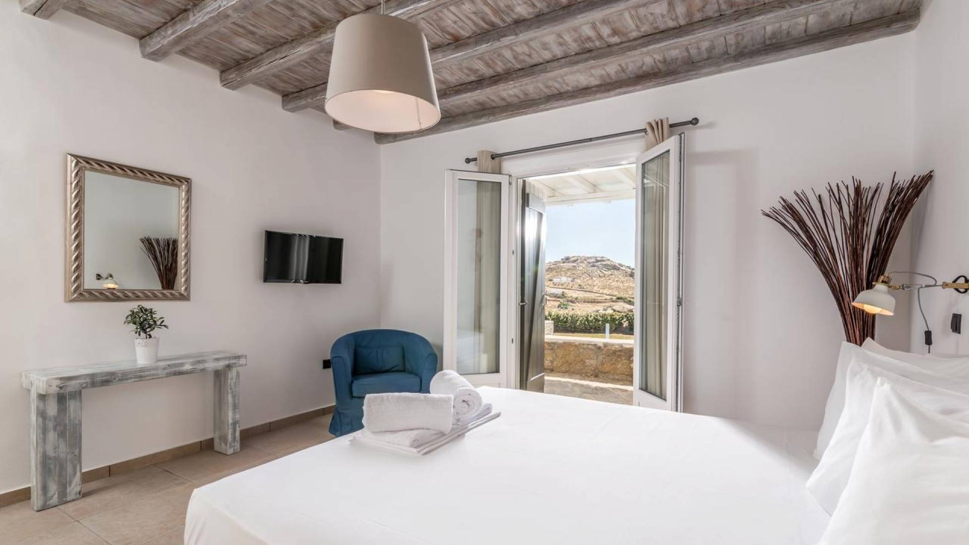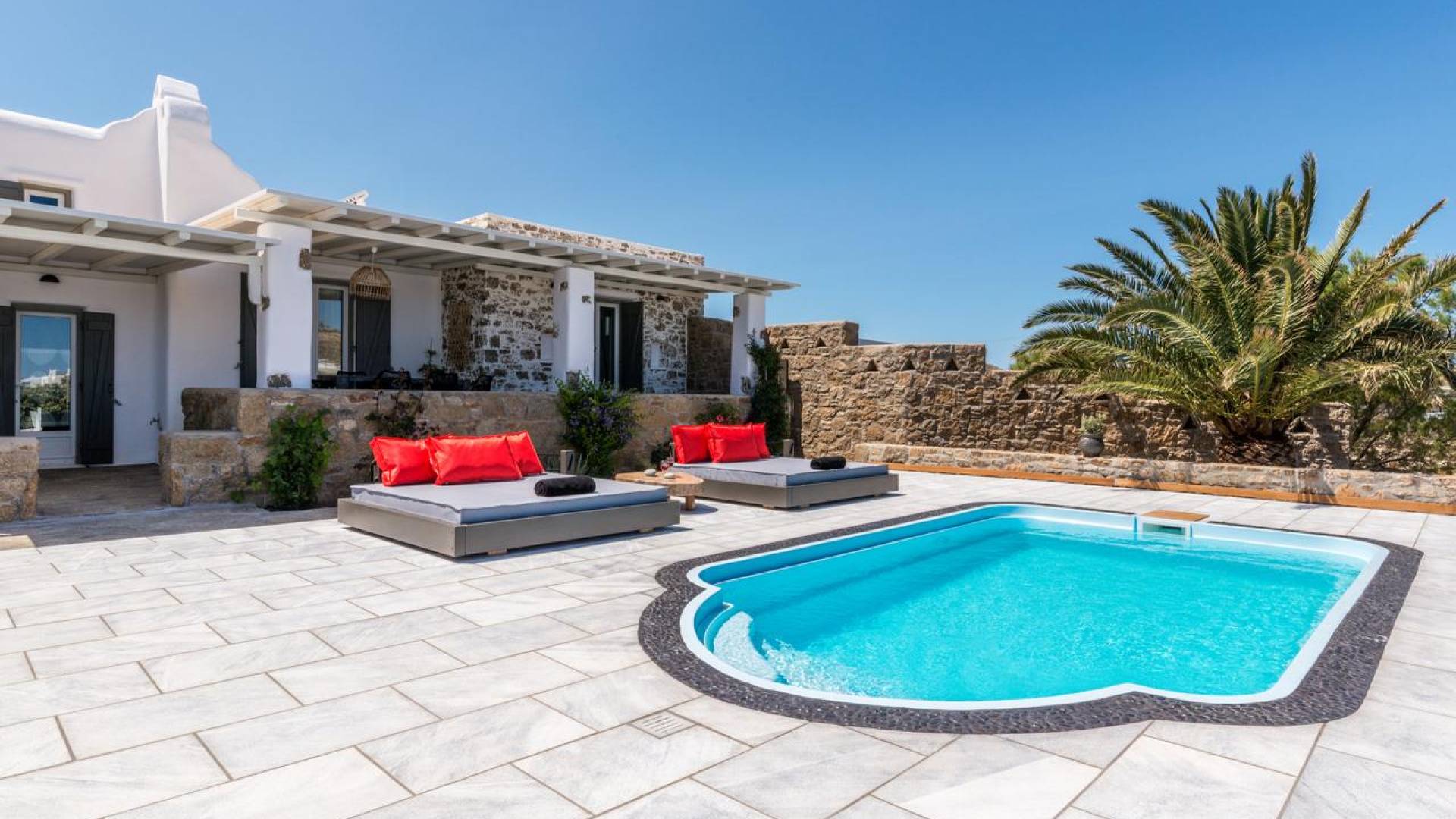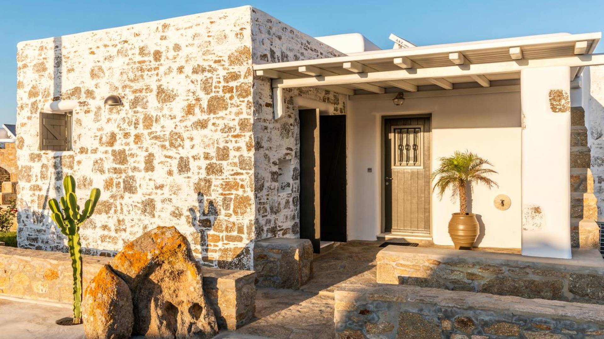Alle Villen bieten Platz für sechs Personen (eine weitere Person am Sofa) mit einer Fläche von 85-95 m² und eigenem Parkplatz. Jede Villa verfügt über zwei Schlafzimmer, zwei Badezimmer, eine Küche, ein gemütliches Loft, eine private geräumige Veranda und einen privaten Pool. Voll ausgestattet mit Flachbildfernseher WI-FI, eV-Klimaanlage, Haushaltsartikeln, modernen Bädern und Schlafprodukten. Das kykladische Licht herrscht in jeder dieser exquisiten Villen vor, die mit Tradition, minimalem Design und modernen Annehmlichkeiten verbunden sind. Wunderschön gebaut mit Holzbalken, handgefertigten Möbeln, bequemen Sesseln und herrlichen Tischen, die eine schicke, entspannende Umgebung schaffen.