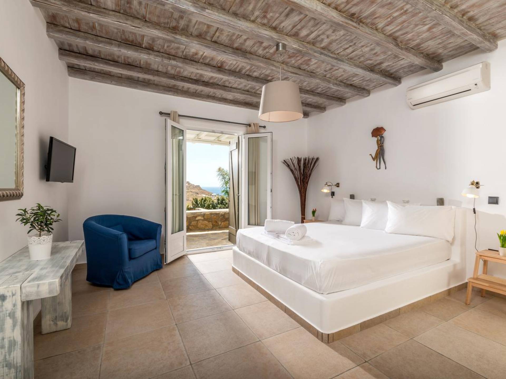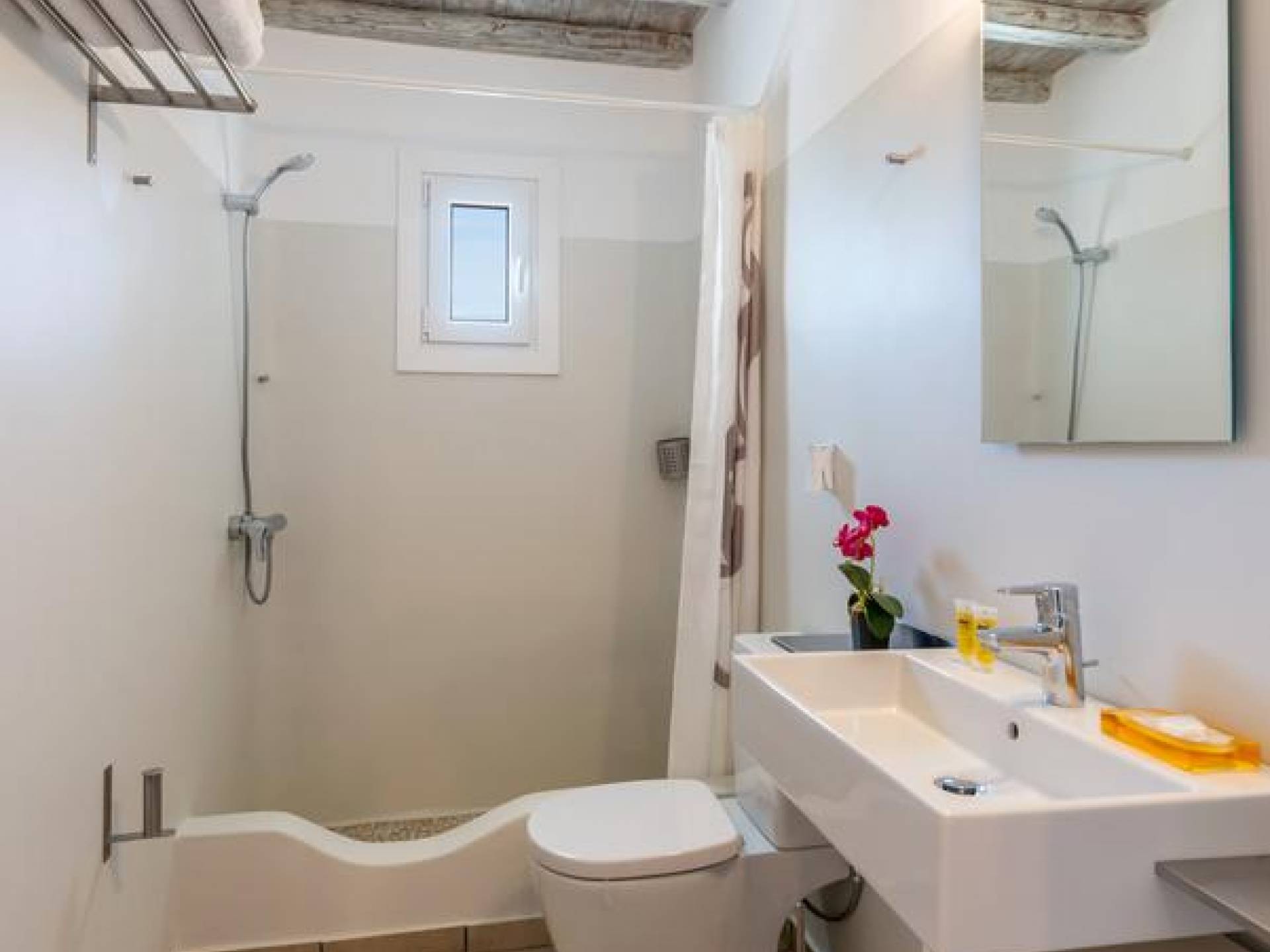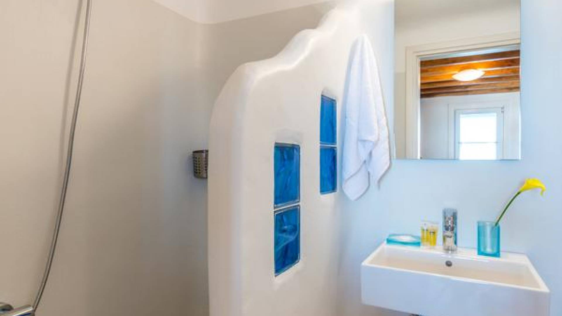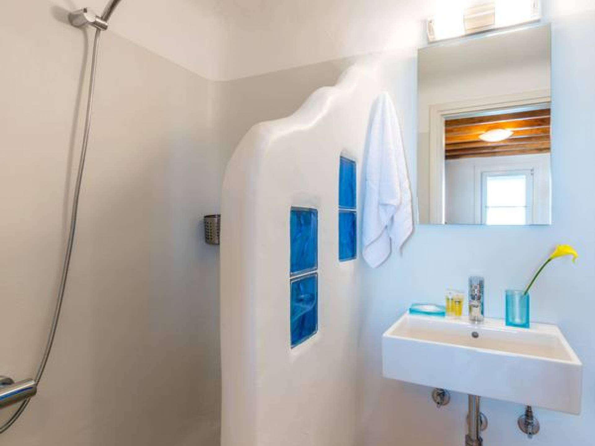 Alle Villen bieten Platz für sechs Personen (eine weitere Person am Sofa) mit einer Fläche von 85-95 m² und eigenem Parkplatz. Jede Villa verfügt über zwei Schlafzimmer, zwei Badezimmer, eine Küche, ein gemütliches Loft, eine private geräumige Veranda und einen privaten Pool. Voll ausgestattet mit Flachbildfernseher WI-FI, eV-Klimaanlage, Haushaltsartikeln, modernen Bädern und Schlafprodukten. Das kykladische Licht herrscht in jeder dieser exquisiten Villen vor, die mit Tradition, minimalem Design und modernen Annehmlichkeiten verbunden sind. Wunderschön gebaut mit Holzbalken, handgefertigten Möbeln, bequemen Sesseln und herrlichen Tischen, die eine schicke, entspannende Umgebung schaffen.