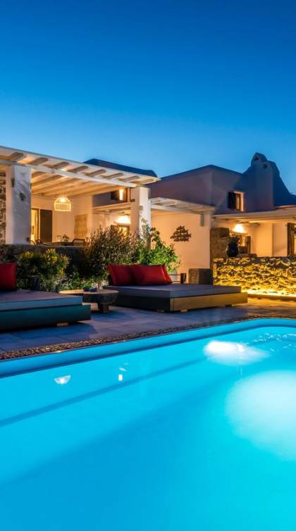 Alle Aurora Mykonos Villen verfügen über einen privaten Swimmingpool mit bequemen Sonnenliegen zum Sonnenbaden unter dem azurblauen Himmel der Ägäis. Nachts verwandelt das stimmungsvolle Licht die Szene in die perfekte Atmosphäre für ruhige Nächte, in denen Sie die belebende Brise der Kykladen genießen, genau wie Sie es sich erträumt haben. Mit individuellem Service wird auf Ihre Wünsche eingegangen, damit Sie Ihren Urlaub in vollen Zügen genießen können. Darüber hinaus sorgen wir in Zusammenarbeit mit The Royal Luxury Transport Mykonos dafür, dass Sie zu jedem Punkt der Insel gebracht werden, damit Sie die Insel Zentimeter für Zentimeter kennenlernen.
