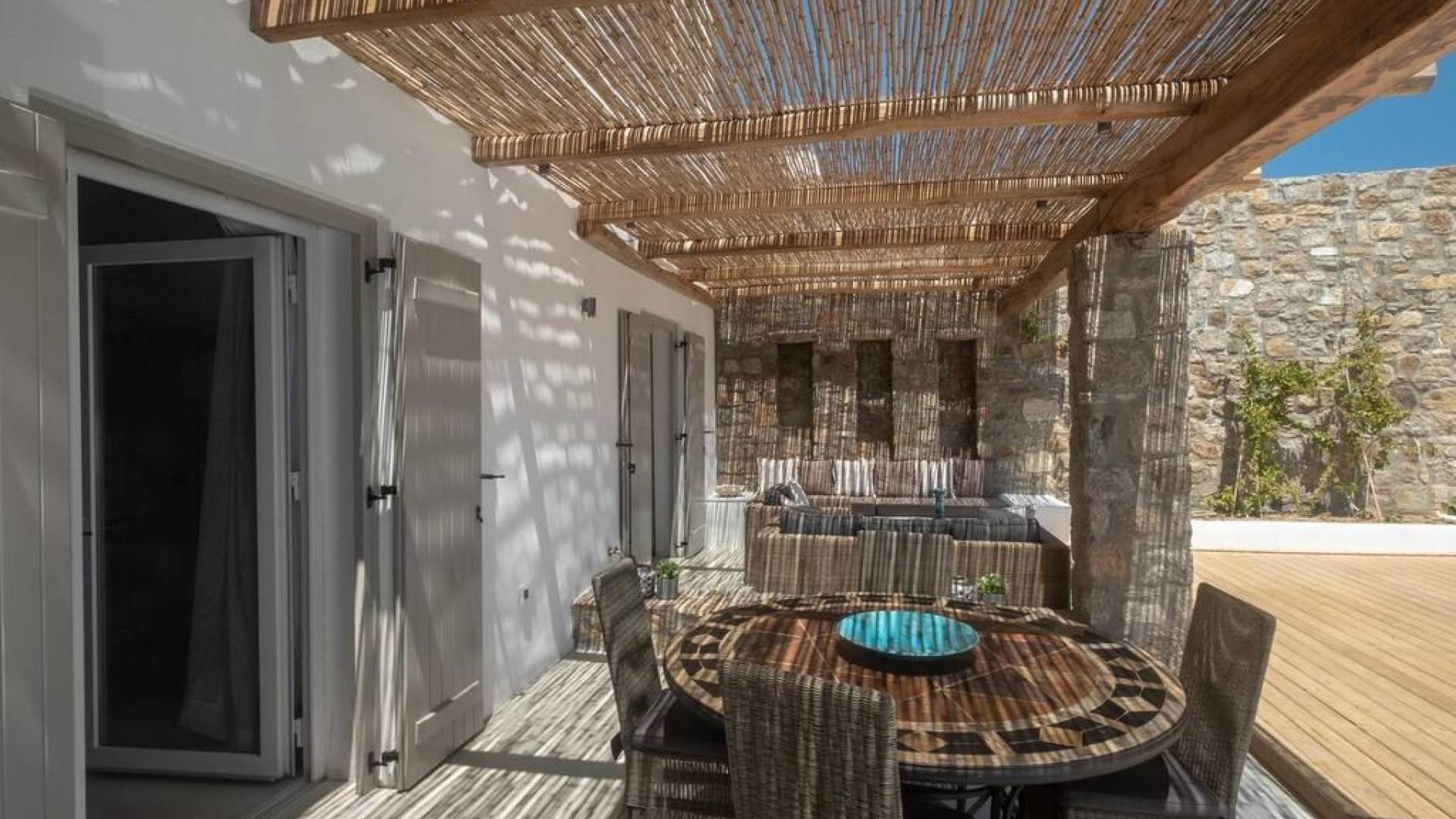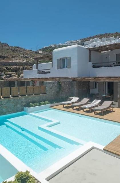 Diese entzückende neue Villa verfügt über einen privaten beheizten Infinity-Pool mit Blick auf die darunter liegende Bucht und bietet eine komfortable Unterkunft in 2 Hauptschlafzimmern mit eigenem Bad, einer voll ausgestatteten Küche und einem gemütlichen Wohnzimmer. Alle Zimmer sind vollständig schallisoliert, um einen ruhigen Aufenthalt an einem der schönsten Orte auf Mykonos zu gewährleisten.
